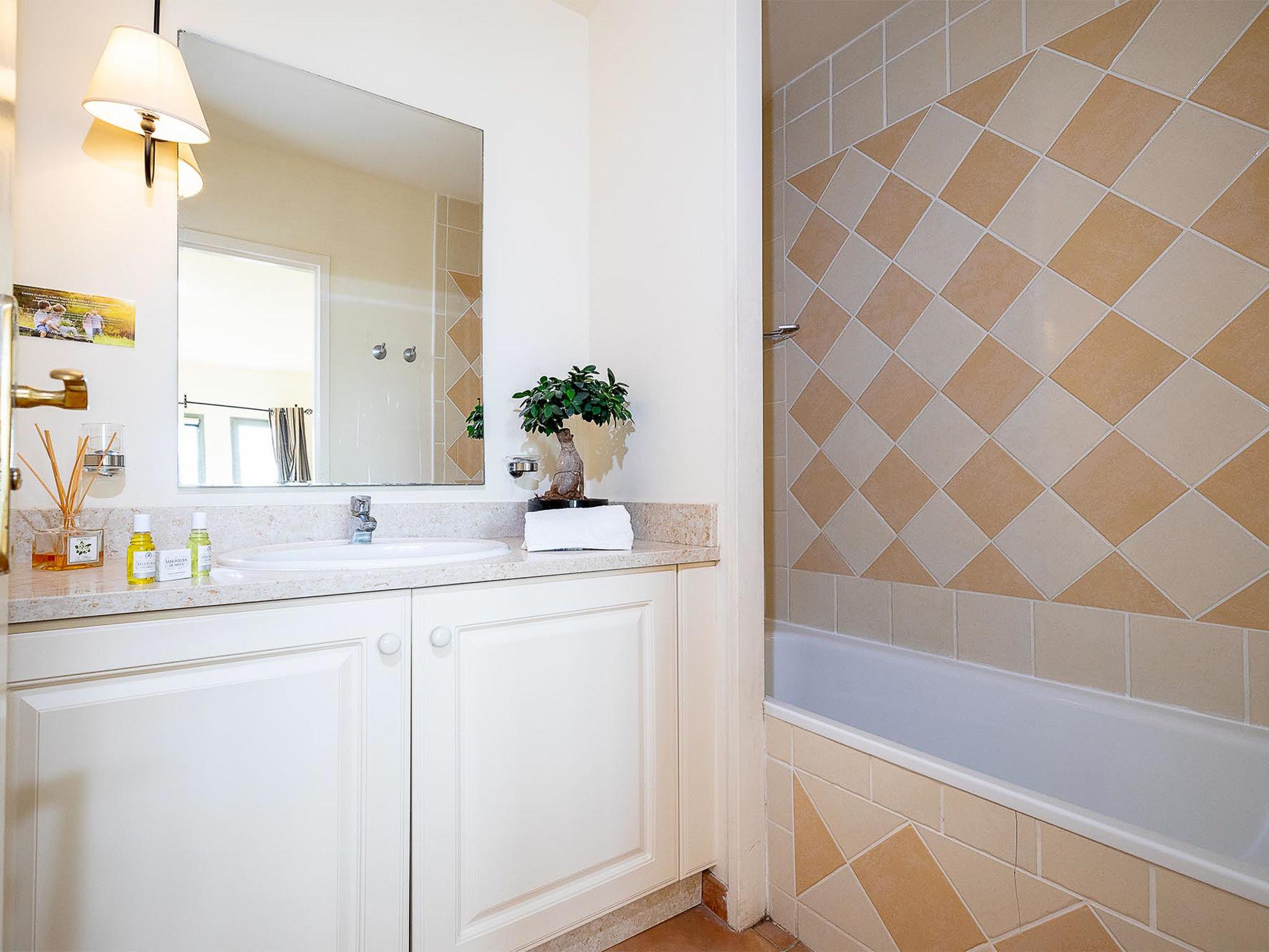 "Provence Country Club", 4-room apartment 75 m2. Living/sleeping room with 1 sofabed, 1 pull-out bed, dining table and TV can be hired. Living/sleeping room with 1 sofabed, 1 pull-out bed and dining table. 2 rooms, each room with 2 beds. Kitchenette (dishwasher, 4 ceramic glass hob hotplates, toaster, kettle, microwave, electric coffee machine). 2 bathrooms, 2 sep. WC's. Electric heating. Balcony or terrace. Balcony furniture. Facilities: safe (extra), children's high chair, baby cot. Internet (WiFi, extra). Parking. Please note: non-smokers only. Maximum 2 pets/ dogs allowed.