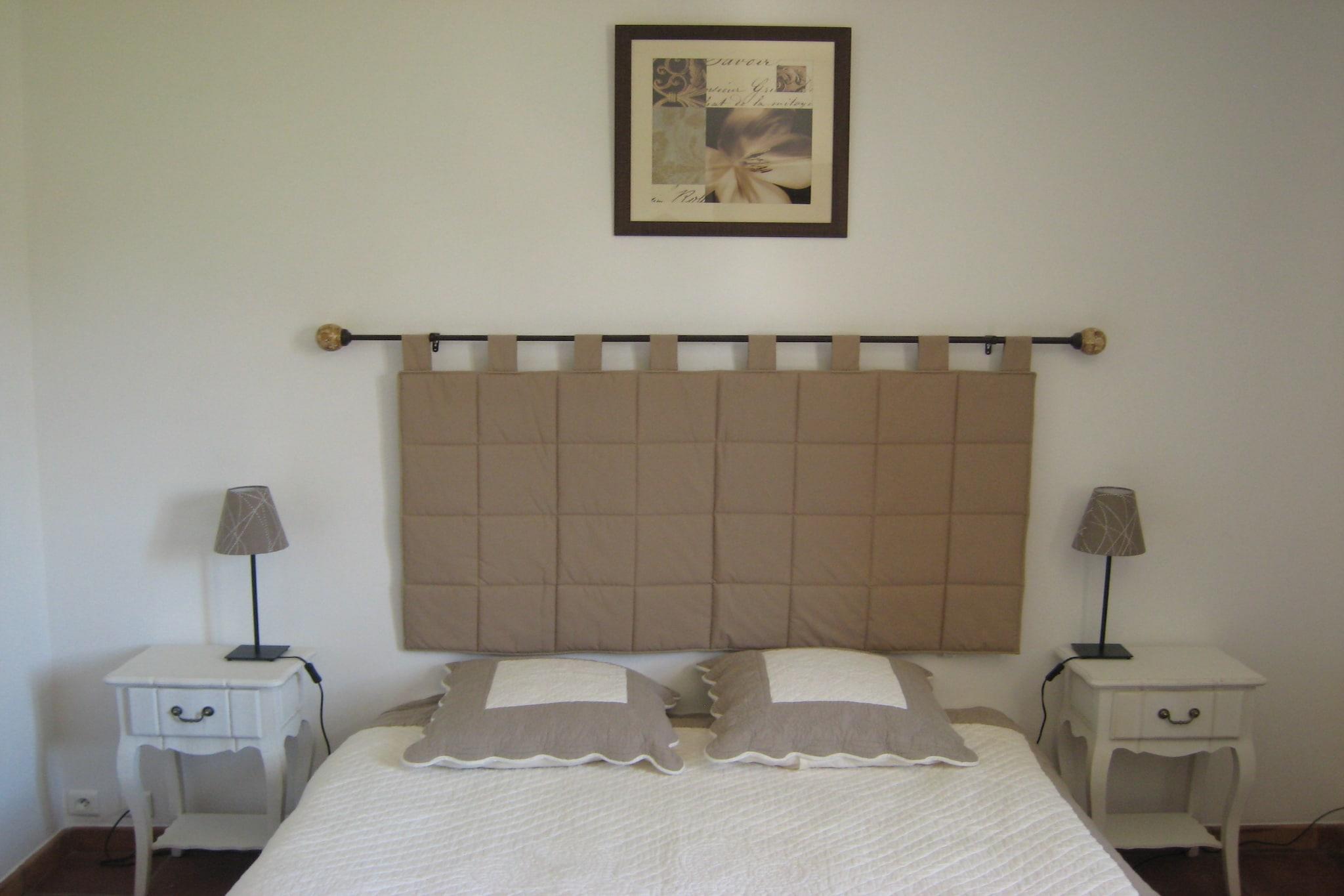 Stueetage: (sofastue(Fjernsyn, pejs, DVD-afspiller, stereoanlæg), spisestue, Køkken(ovn, mikrobølgeovn, opvaskemaskine , 3x køleskab(+ fryser)), soveværelse(3x enkeltseng, bruser, toilet, klimaanlæg), soveværelse(dobbeltseng, klimaanlæg), badeværelse(badekar, håndvask), toilet, åbent rum(dobbeltfeltseng), pulterkammer(vaskemaskine)) På 1. etage: (soveværelse(dobbeltseng, klimaanlæg), soveværelse(2x enkeltseng, klimaanlæg), badeværelse(bruser, toilet)) varme(central), terrasse, have(privat, indhegnet), havemøbler, grill, swimmingpool(privat, opvarmet, indhegnet, 10 x 5 m., opened from Apr upto and including Oct), petanquebane, legeredskaber, bordtennisbord, cykler til rådighed, barneseng, barneseng, barnestol