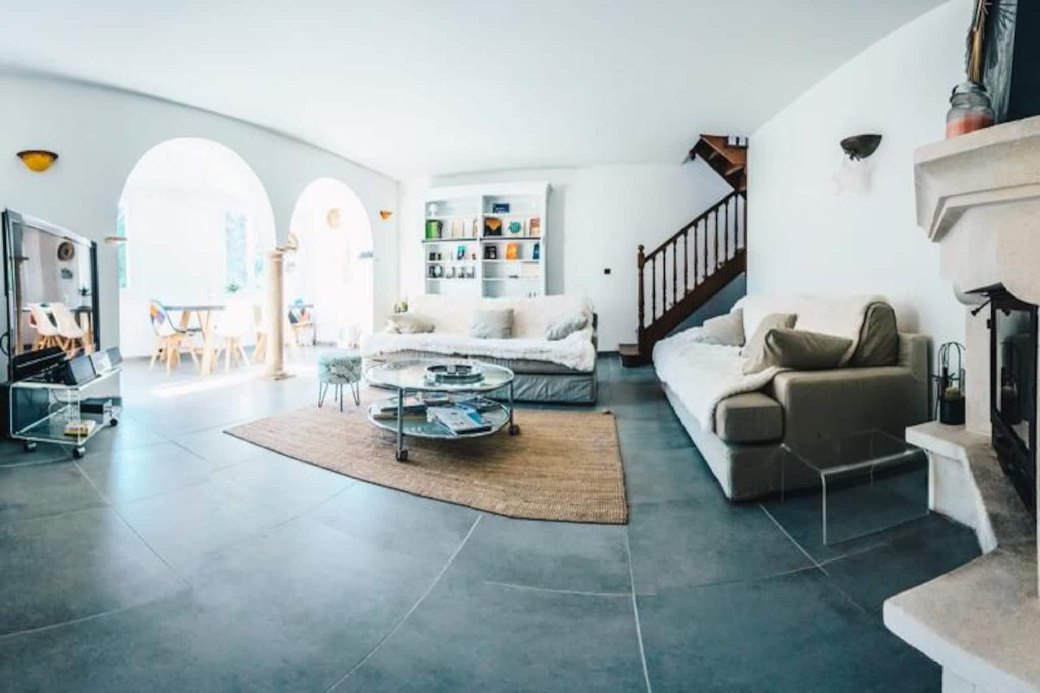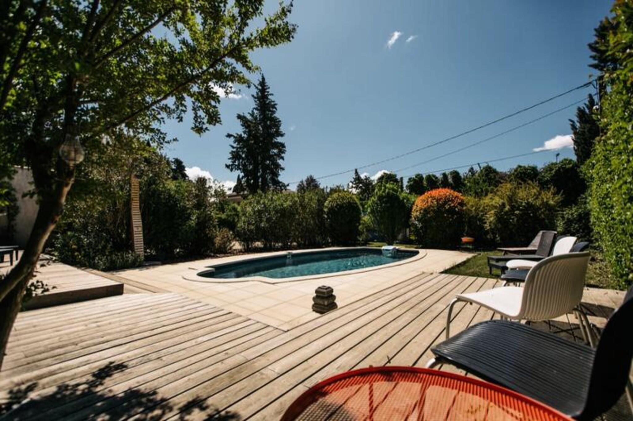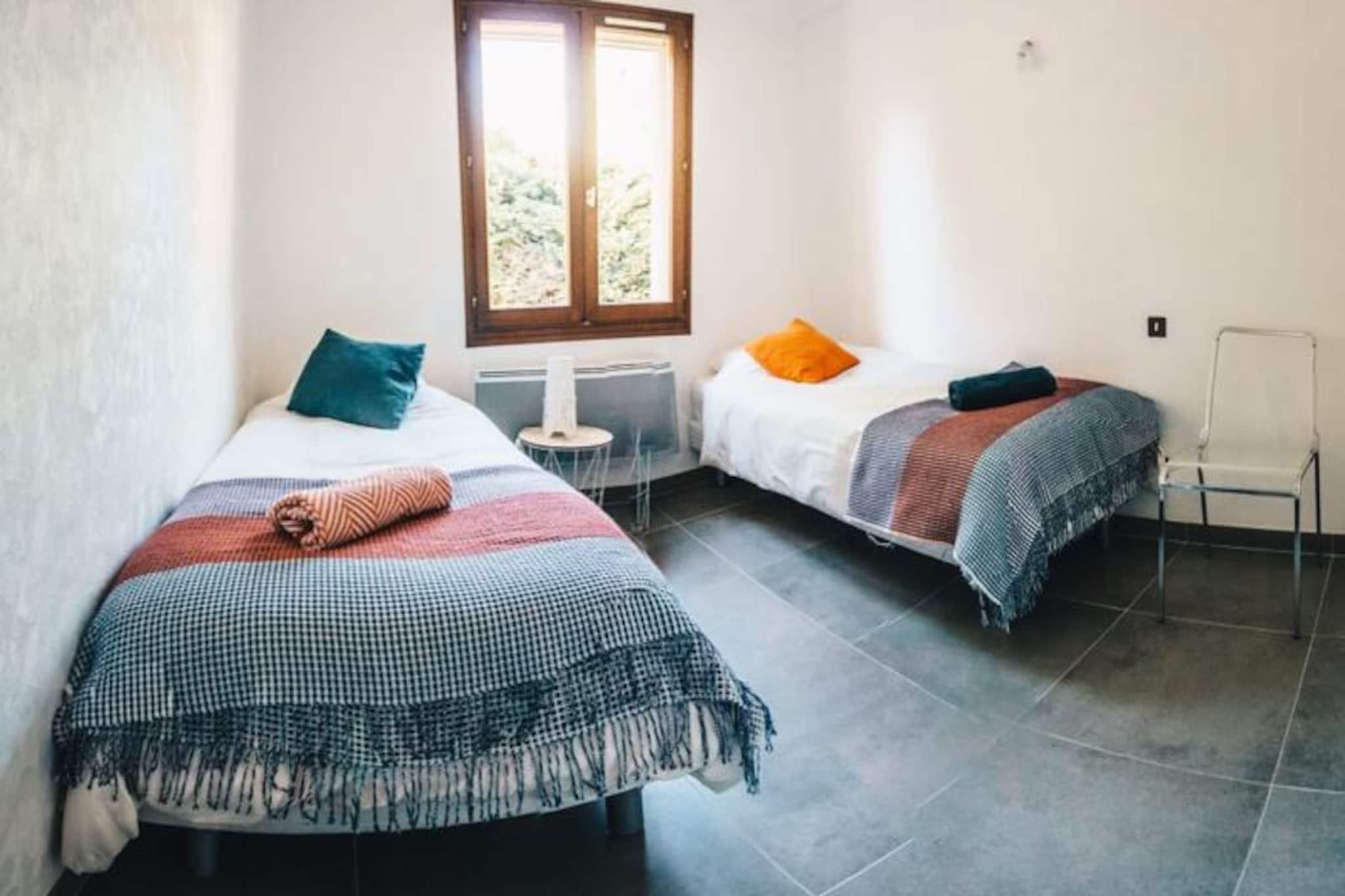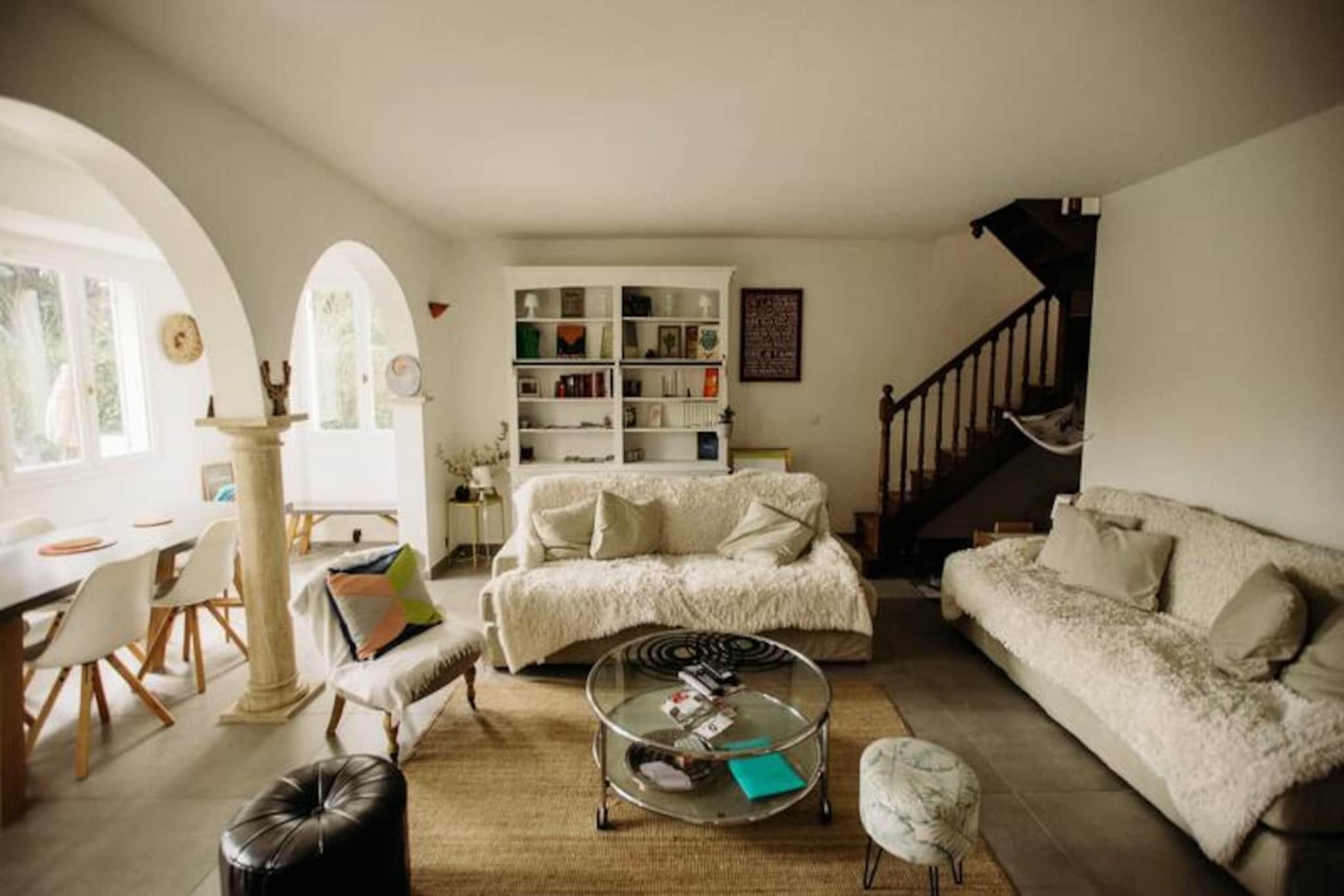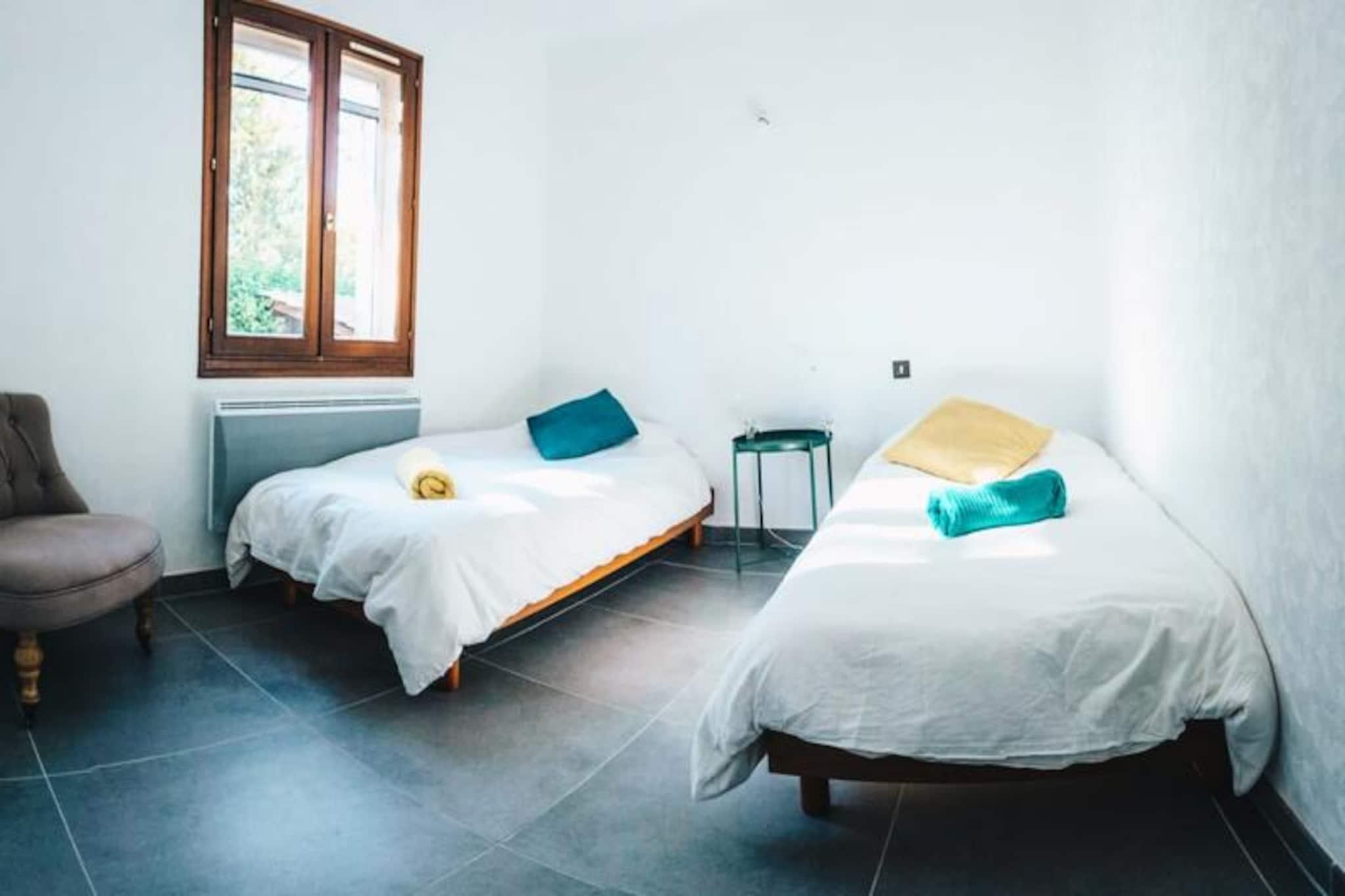 Denne storslåede villa på 130 m² rummer komfortabelt op til otte gæster med fire komfortable soveværelser. Ejendommen er kæledyrsvenlig, imødekommende hunde. Gæsterne kan nyde en privat swimmingpool (åben fra begyndelsen af ??maj til slutningen af ??september), en grill, to spisepladser og en bowlingbane. Grunden er indhegnet, hvilket giver et sikkert rum for børn og kæledyr. Villaen ligger i et roligt kvarter i Isle-sur-la-Sorgue, kun 100 m fra Sorgue-floden og tæt på alle faciliteter. Det er også bekvemt placeret i nærheden af ??populære attraktioner, idet det kun er 10 minutter fra Fontaine-de-Vaucluse og tæt på landsbyer på en bakketop i Luberon (Gordes, Ménerbes og Roussillon) og Alpilles (Saint-Rémy og Les Baux). Placeringen er ideel til gåture langs floden til byens centrum. Denne villa har to badeværelser, en stor stue, en solrig spisestue og et fuldt udstyret køkken, perfekt til at tilberede måltider. Pakker med sen ankomst er tilgængelige mod et tillægsgebyr, men der er ingen adgang efter kl. 01.00 Depositum skal betales 10 dage før ankomst via Swikly. Villaen er let tilgængelig via Isle-sur-la-Sorgue SNCF-stationen og busstationen, med Avignon TGV-station en 30-minutters kørsel væk.
