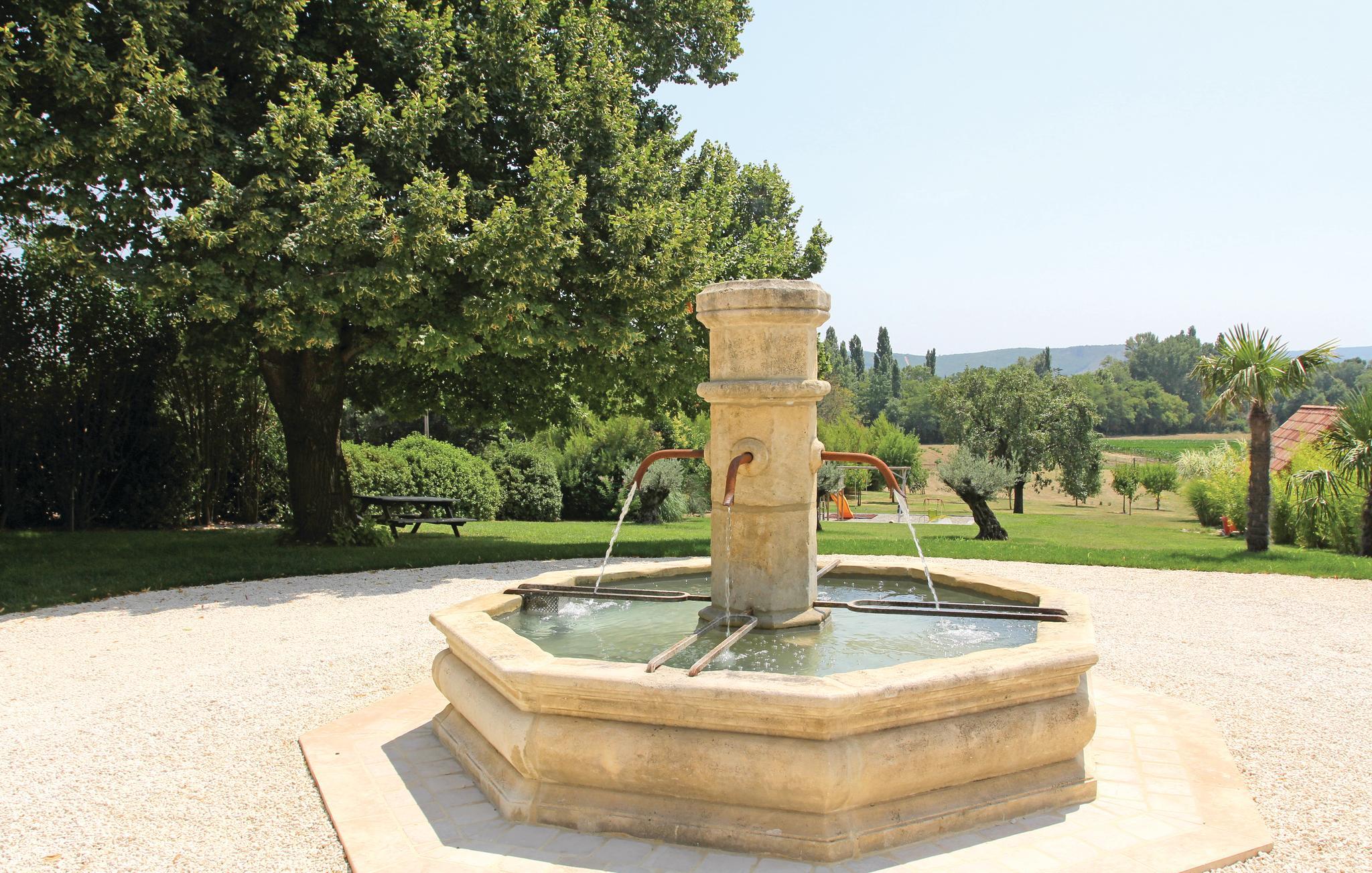 Den rummelige have inviterer til ren nydelse med sin solterrasse, den forfriskende swimmingpool og det afslappende udendørs spabad. Et charmerende springvand pryder gårdspladsen og skaber en idyllisk stemning.