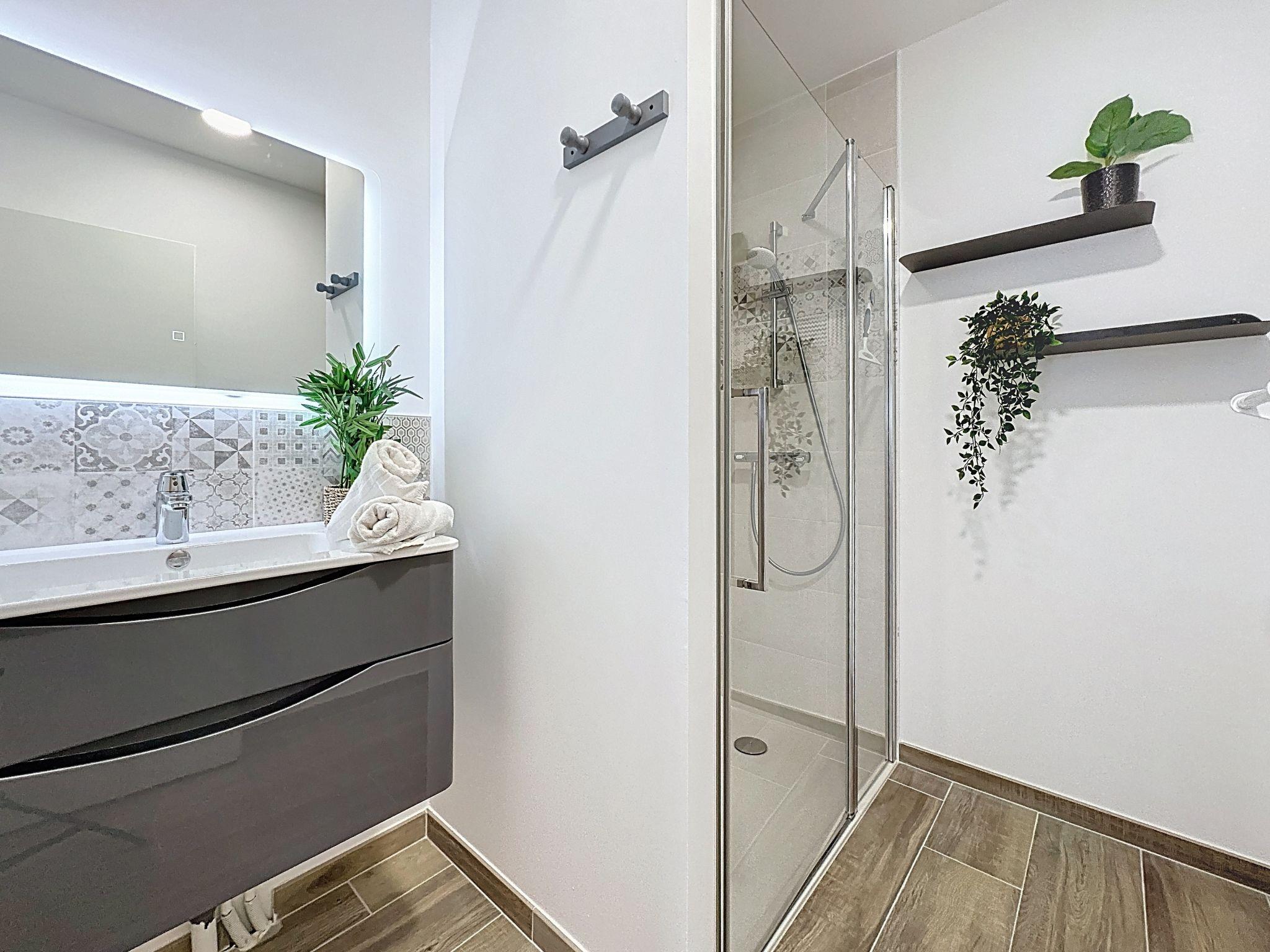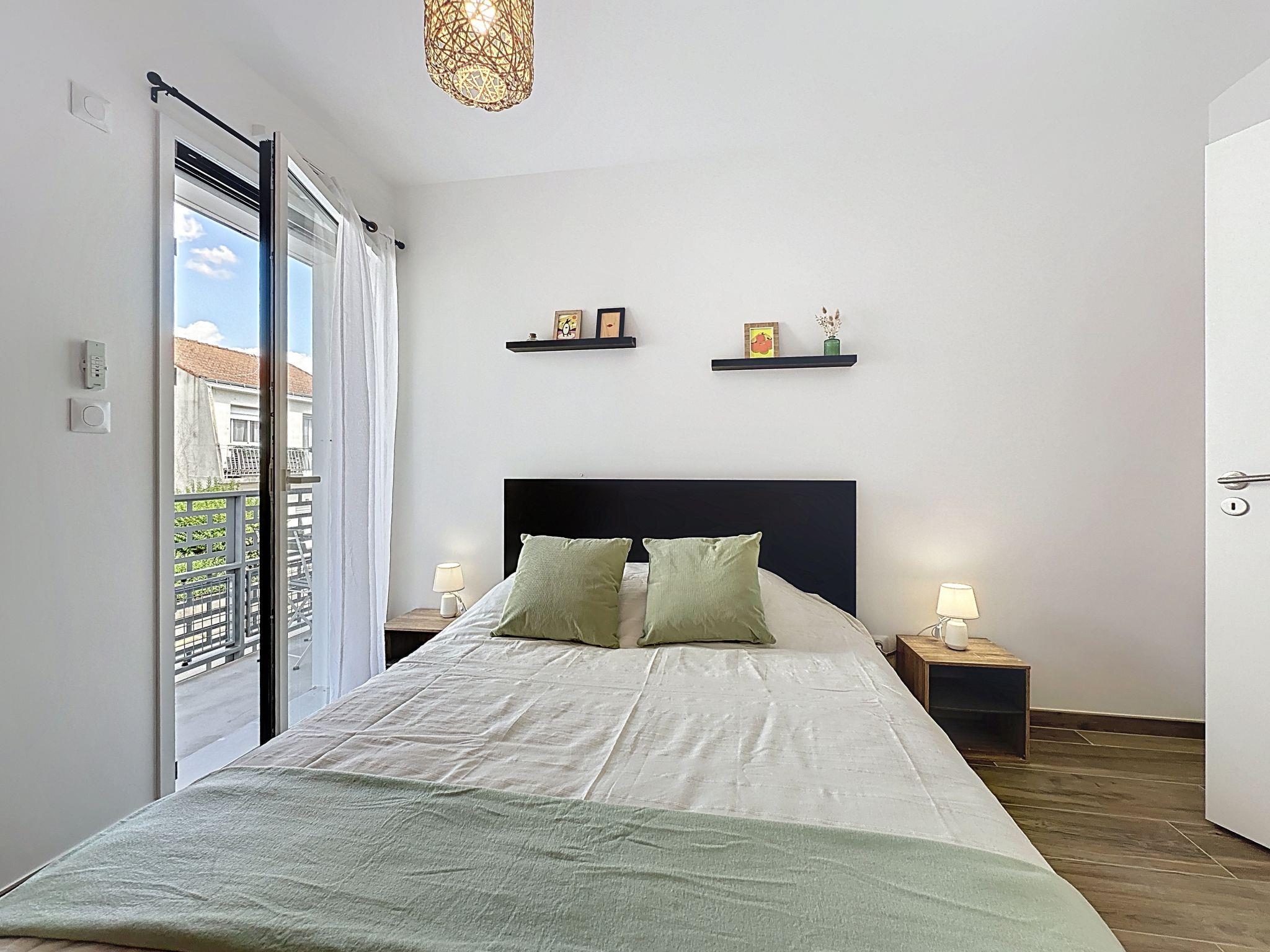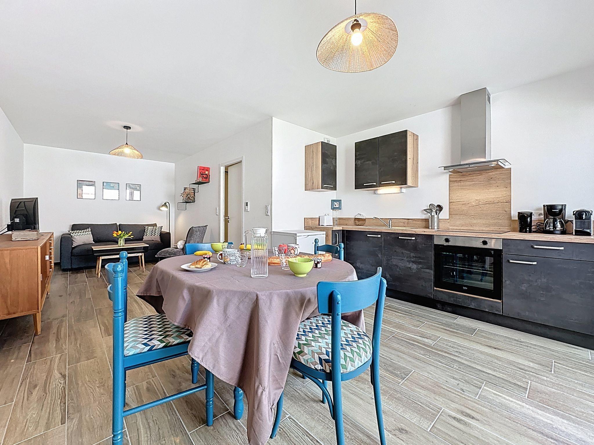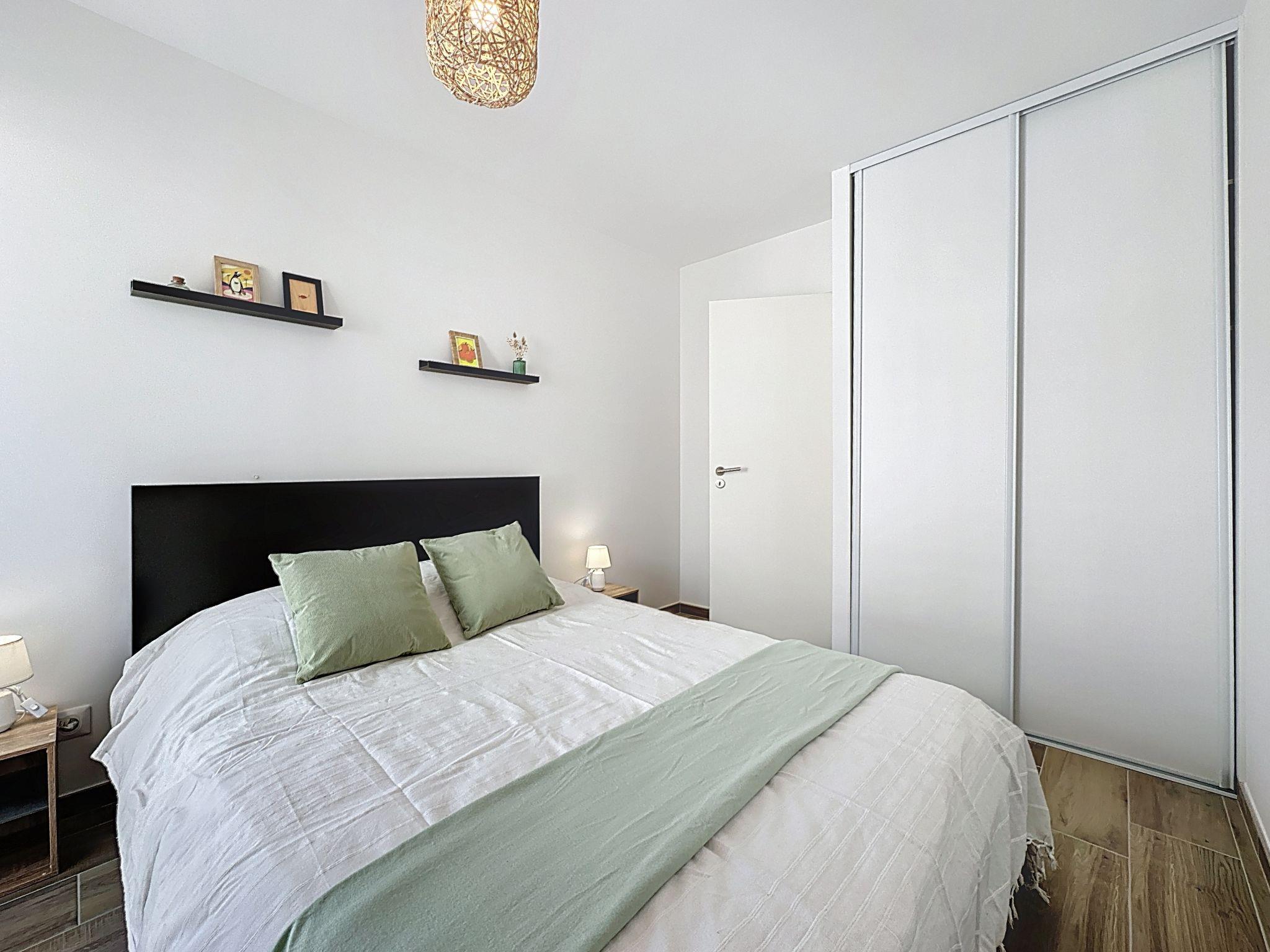 "Océanide", 2-room apartment 48 m2 on 1st floor. Living/dining room with 1 double sofabed (1 x 140 cm, length 200 cm), TV (flat screen). Exit to the balcony, north facing position. 1 room with 1 french bed (1 x 140 cm, length 200 cm). Exit to the balcony, north facing position. Open kitchen (oven, dishwasher, 3 induction hot plates, toaster, kettle, microwave, electric coffee machine, Capsules for coffee machine (Nespresso) extra). Shower, sep. WC. Gas heating. Balcony 4 m2, north facing position. Balcony furniture. Facilities: iron, children's high chair, baby cot for up to 2 year olds, hair dryer. Parking space n 4 (fenced 1 car). Please note: apartment street side. Fridge without freezer, non-smokers only. Smoke alarm, no lift. Offer by a private individual according to Art. 155, IV of CGI. 44012000363TM