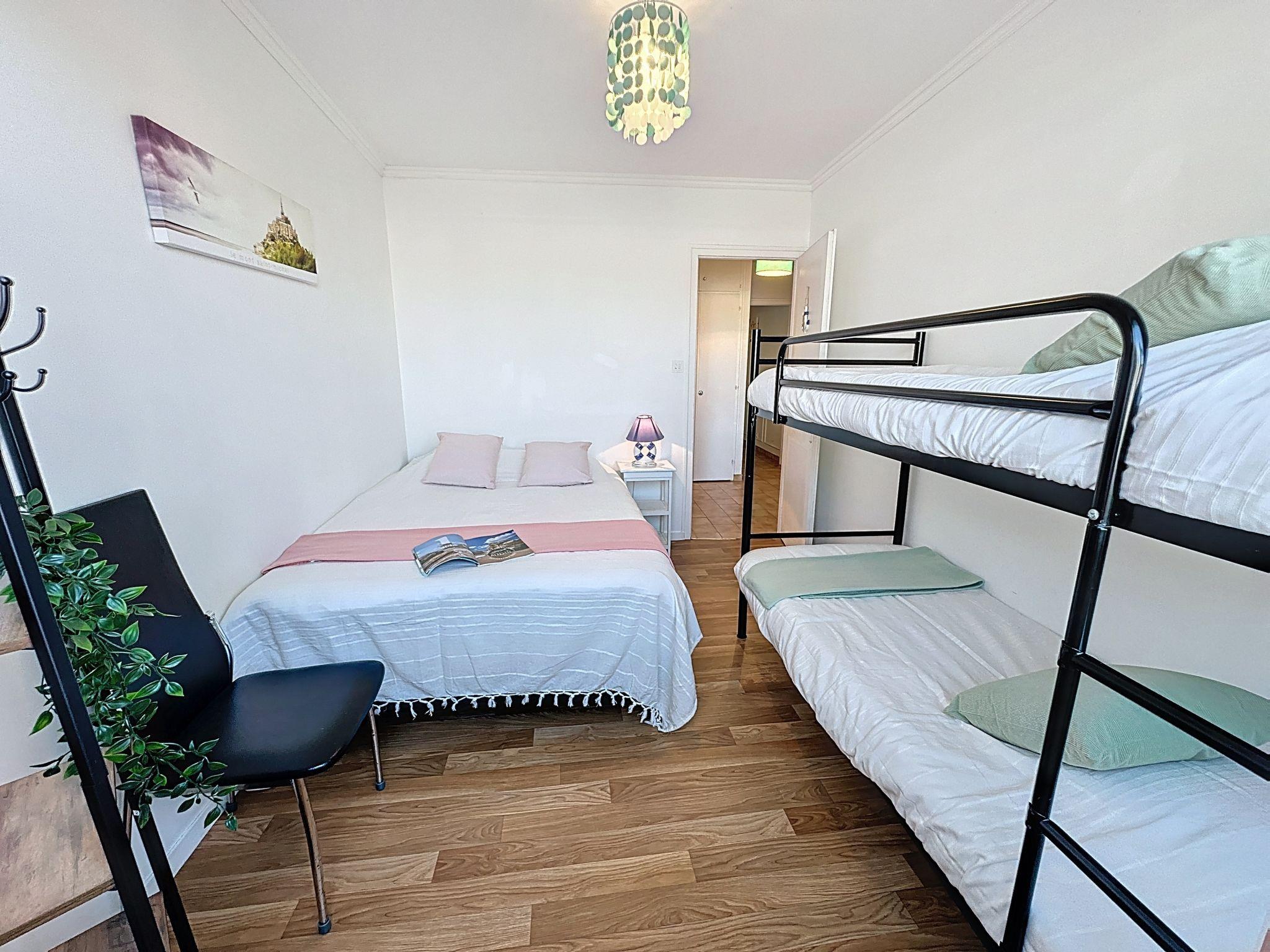 "Résidence de la Mer", 3-room apartment 65 m2 on 1st floor. Living/dining room with TV (flat screen). Exit to the balcony, east facing position. 1 room with 1 x 2 bunk beds (80 cm, length 190 cm), 1 french bed (1 x 140 cm, length 190 cm). 1 room with 1 french bed (1 x 140 cm, length 190 cm), TV (flat screen). Open kitchen (oven, dishwasher, 1 ceramic glass hob hotplate, 3 gas rings, toaster, kettle, microwave, freezer, electric coffee machine, Capsules for coffee machine (Tassimo) extra). Shower, sep. WC. Electric heating. Balcony 9 m2, east facing position. Balcony furniture. Facilities: washing machine, iron, children's high chair, baby cot for up to 2 year olds, hair dryer. Internet (WiFi, extra). Parking space n 3 (roofed, fenced 1 car). Please note: non-smokers only. Smoke alarm, no lift. Offer by a private individual according to Art. 155, IV of CGI. 44012000353W9