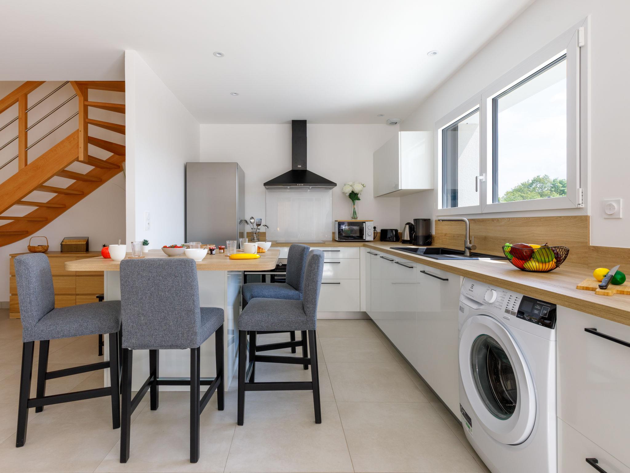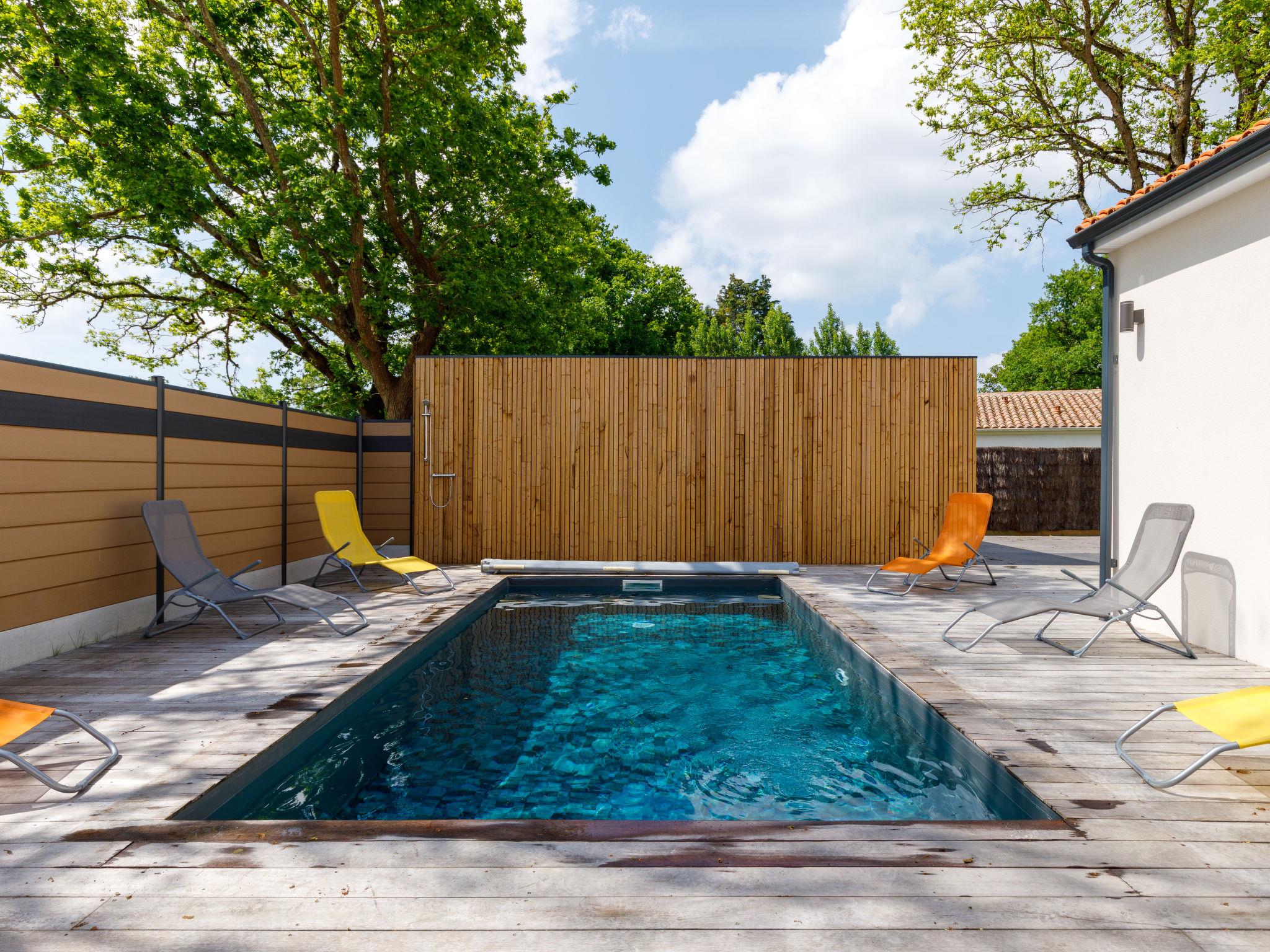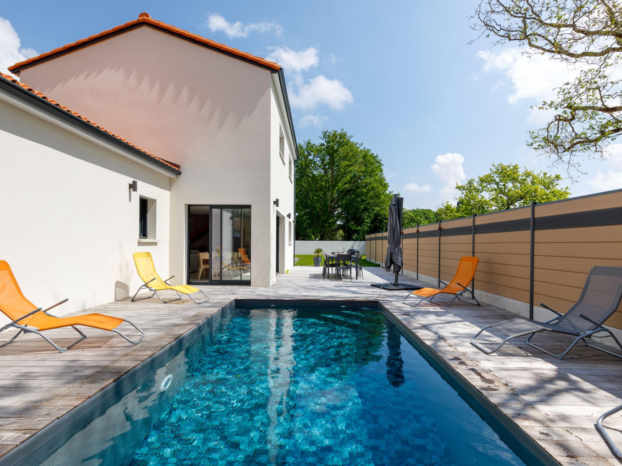Beautiful single-family house "Le Pré Tarin", 2 storeys, built in 2024. Above La Bernerie en Retz, in a secluded, quiet position in the residential district, 3 km from the sea, 3 km from the beach, south-east facing position. Private: property 500 m2 (fenced), swimming pool (3 x 6 m, depth 100 - 150 cm, seasonal availability: 15.May. - 15.Sep.). Terrace (35 m2), garden furniture, barbecue, parking (for 2 cars). Supermarket 2.5 km, restaurant 2.5 km, bakery 2.5 km, 30 minute walk to the centre, bus stop "Bourg (Navette Estivale)" 2.5 km, railway station "La Bernerie en Retz" 2 km, sandy beach "Grande Plage" 3 km, thermal baths "Alliance Pornic Thalasso & Spa" 8 km. Golf course (18 hole) 11 km, tennis 2.7 km, minigolf 11 km. Nearby attractions: Marché de la Bernerie en Retz 2.5 km, Pornic 9 km, Port du Collet 10 km, Les Machines de l'Ile de Nantes 43 km, La Baule 50 km, Noirmoutier 52 km. Well-known lakes can easily be reached: Lac de Saint Viaud 23 km. The keys‘ handover takes place by the agency Interhome in Pornic, 7 km.