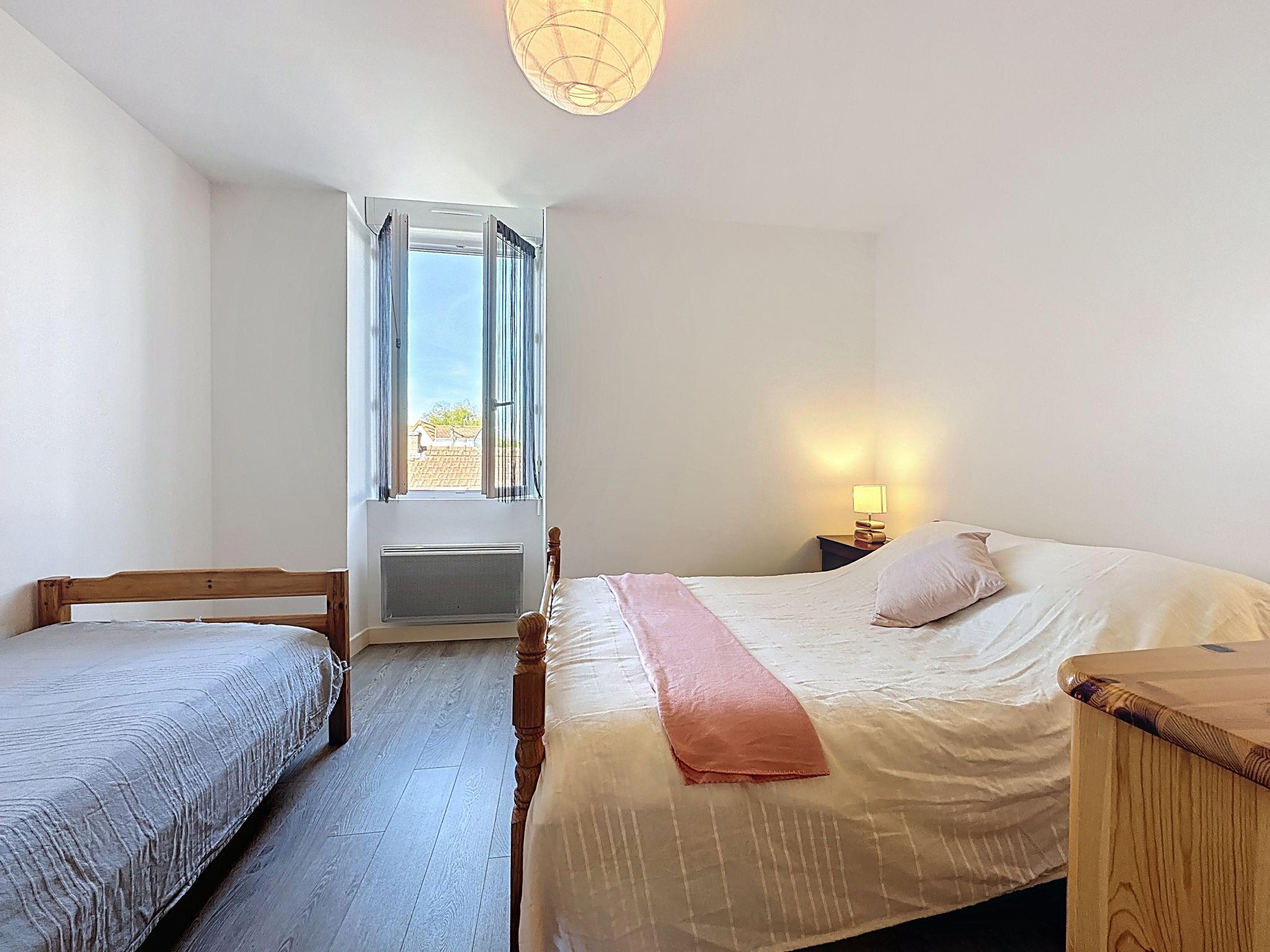 Terraced house "Les Dunes", 2 storeys. In the centre of La Bernerie en Retz, excellent location: right in the centre but still quiet, 150 m from the sea, 150 m from the beach, west facing position. For shared use: small, well-kept garden 65 m2 (fenced), public parking on the road. Supermarket, restaurant 500 m, bakery 350 m, 3 minute walk to the centre, bus stop "Bourg (Navette Estivale)" 300 m, railway station "La Bernerie en Retz" 650 m, sandy beach "Grande Plage" 150 m, thermal baths "Alliance Pornic Thalasso & Spa" 8 km. Golf course (18 hole) 10 km, tennis 250 m. Nearby attractions: Marché de la Bernerie en Retz 500 m, Pornic 7 km, Port du Collet 11 km, Les Machines de l'Ile de Nantes 45 km, La Baule 48 km, Ile de Noirmoutier 77 km. Well-known lakes can easily be reached: Lac de Saint Viaud 22 km. The keys‘ handover takes place by the agency Interhome in Pornic, 7 km.