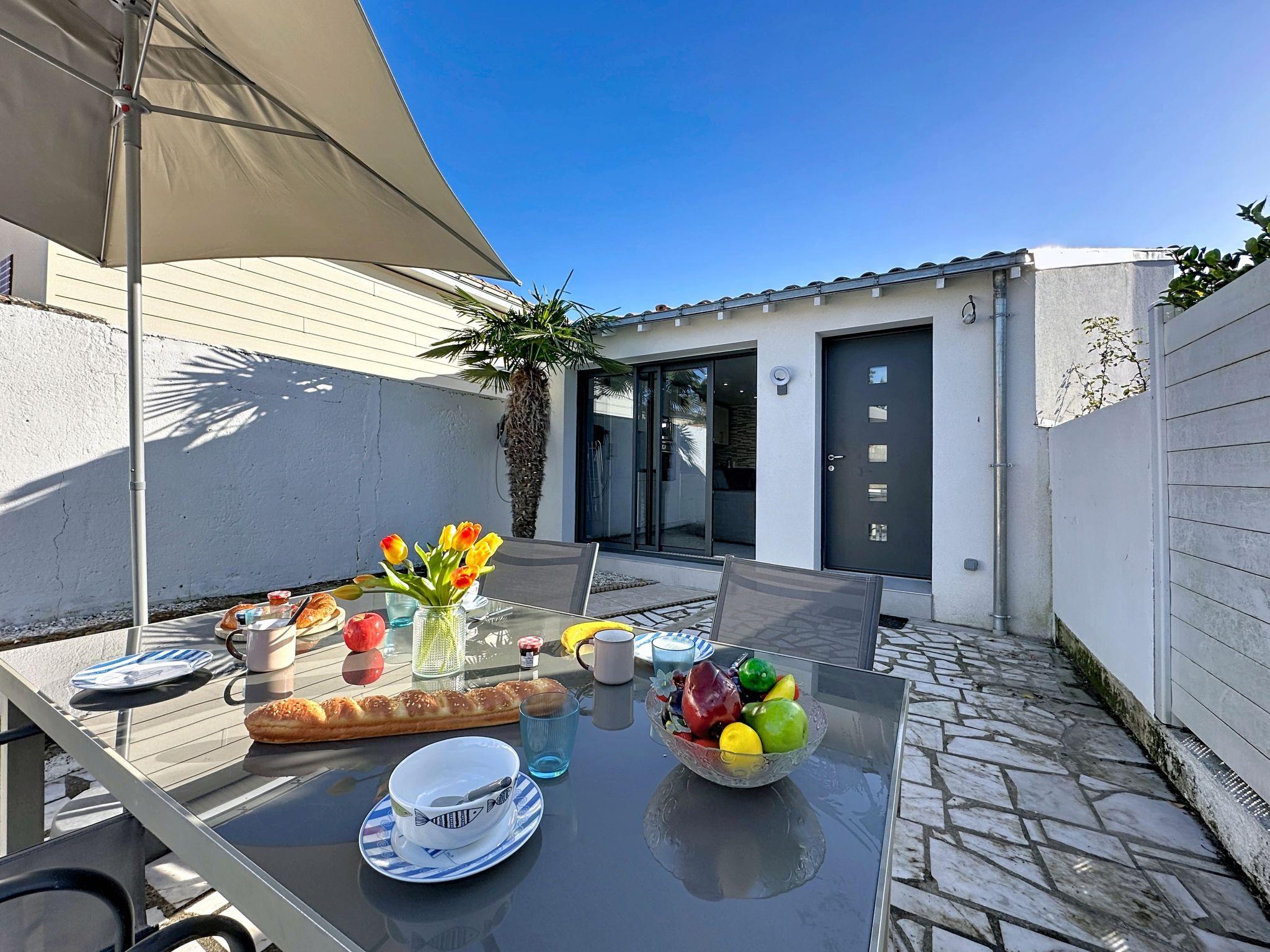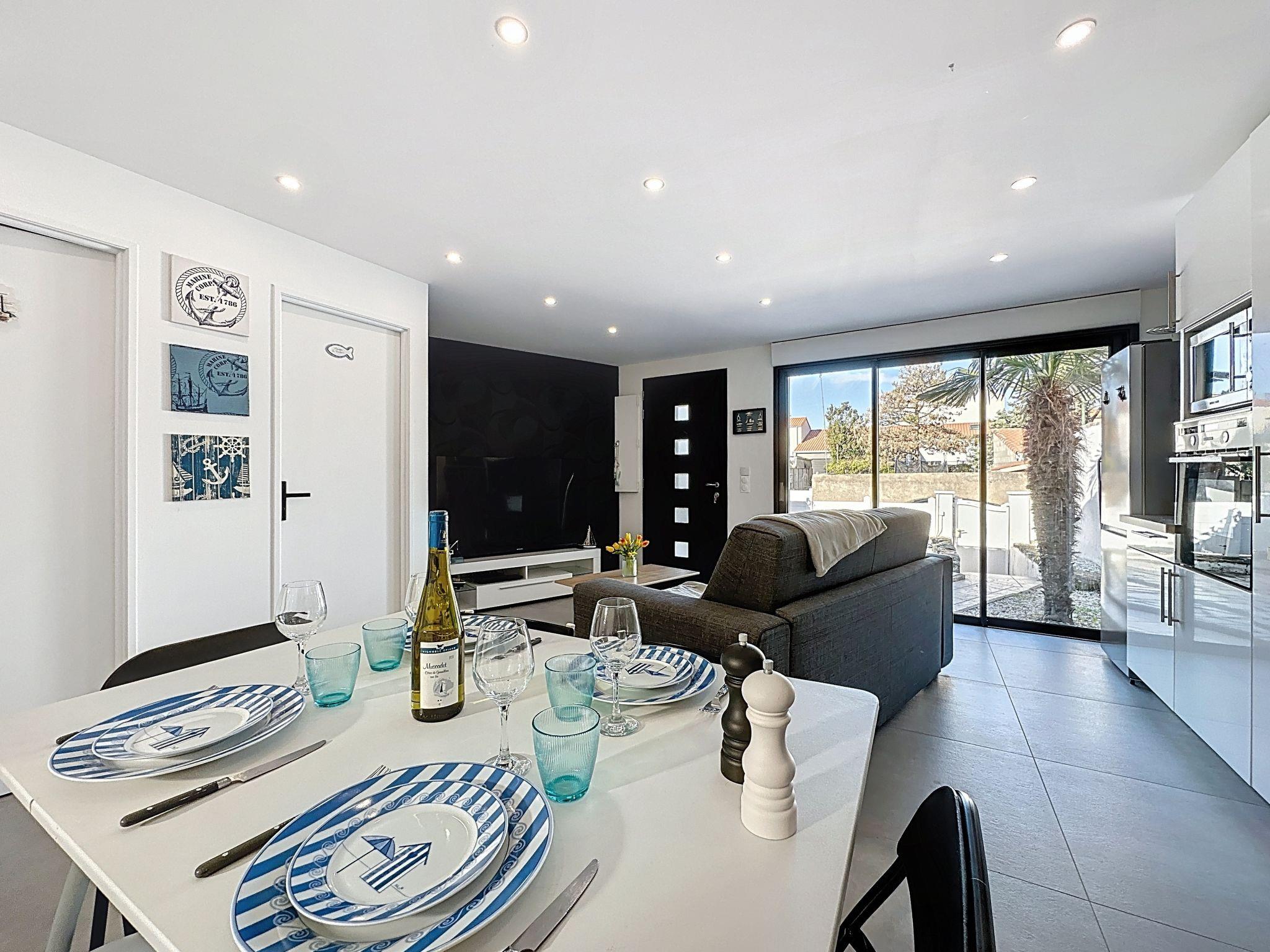 Beautiful house "La Houle", renovated in 2025. In the centre of La Bernerie en Retz, in a central position, 100 m from the sea, 100 m from the beach, south-west facing position. Private: property 150 m2 (fenced), courtyard, public parking 200 m on the road. Shop 150 m, supermarket 250 m, restaurant 200 m, bakery 300 m, café 200 m, 4 minute walk to the centre, bus stop "Bourg (Navette Estivale)" 350 m, railway station "La Bernerie en Retz" 600 m, sandy beach "Le Plan d'Eau" 100 m, thermal baths "Alliance Pornic Thalasso & Spa" 7 km. Golf course (18 hole) 7 km, tennis 350 m, minigolf 7 km. Nearby attractions: Marché de la Bernerie en Retz 200 m, Pornic 6 km, Port du Collet 11 km, Planète Sauvage 26 km, Les Machines de l'Ile de Nantes 48 km, Ile de Noirmoutier 55 km. Well-known lakes can easily be reached: Lac de Saint Viaud 23 km. Hiking paths: Sentier des Douaniers.