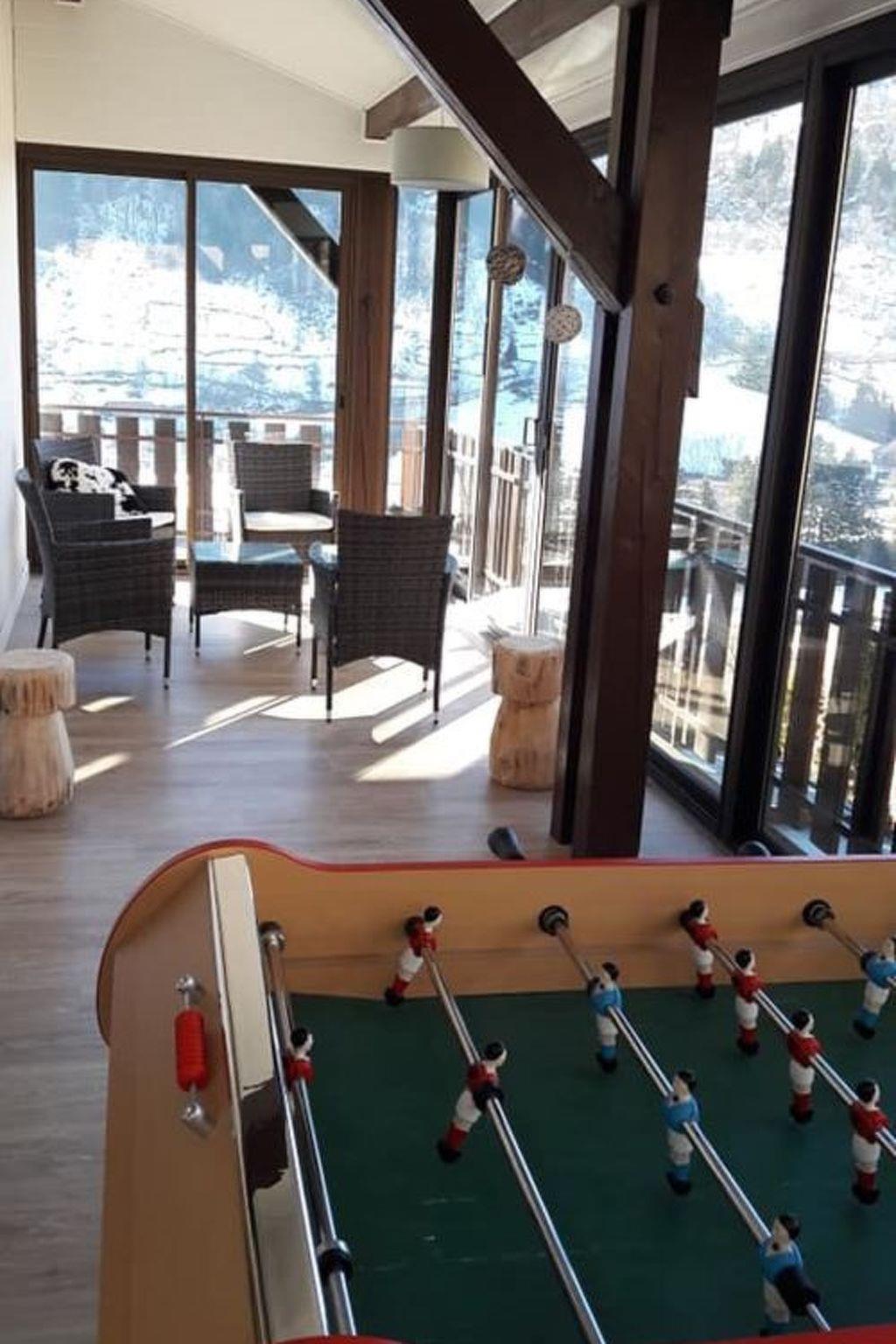 The house is equipped with a sauna area with shower, a covered outdoor jacuzzi with mountain views, billiards, table football, free Wi-Fi, board games, darts, etc. Description: - 2 bedrooms with double beds (160x200) - 2 bedrooms with double beds (140x200) and 1 single bed (a cot can be provided) - 1 bedroom with a double bed (140x200) with TV - 1 bedroom with a double bed (140x200) and 1 bunk bed with TV - Fully equipped kitchen.(oven, microwave, dishwasher, 2 fridge-freezers) - Lounge - dining room (TV) - Billiards room, lounge with TV - Laundry room with washing machine, tumble dryer, iron - 3 bathrooms (two with showers and one with a bath) 4 WCs - South-facing balcony with views over the valley - Veranda with table football and small sitting area.