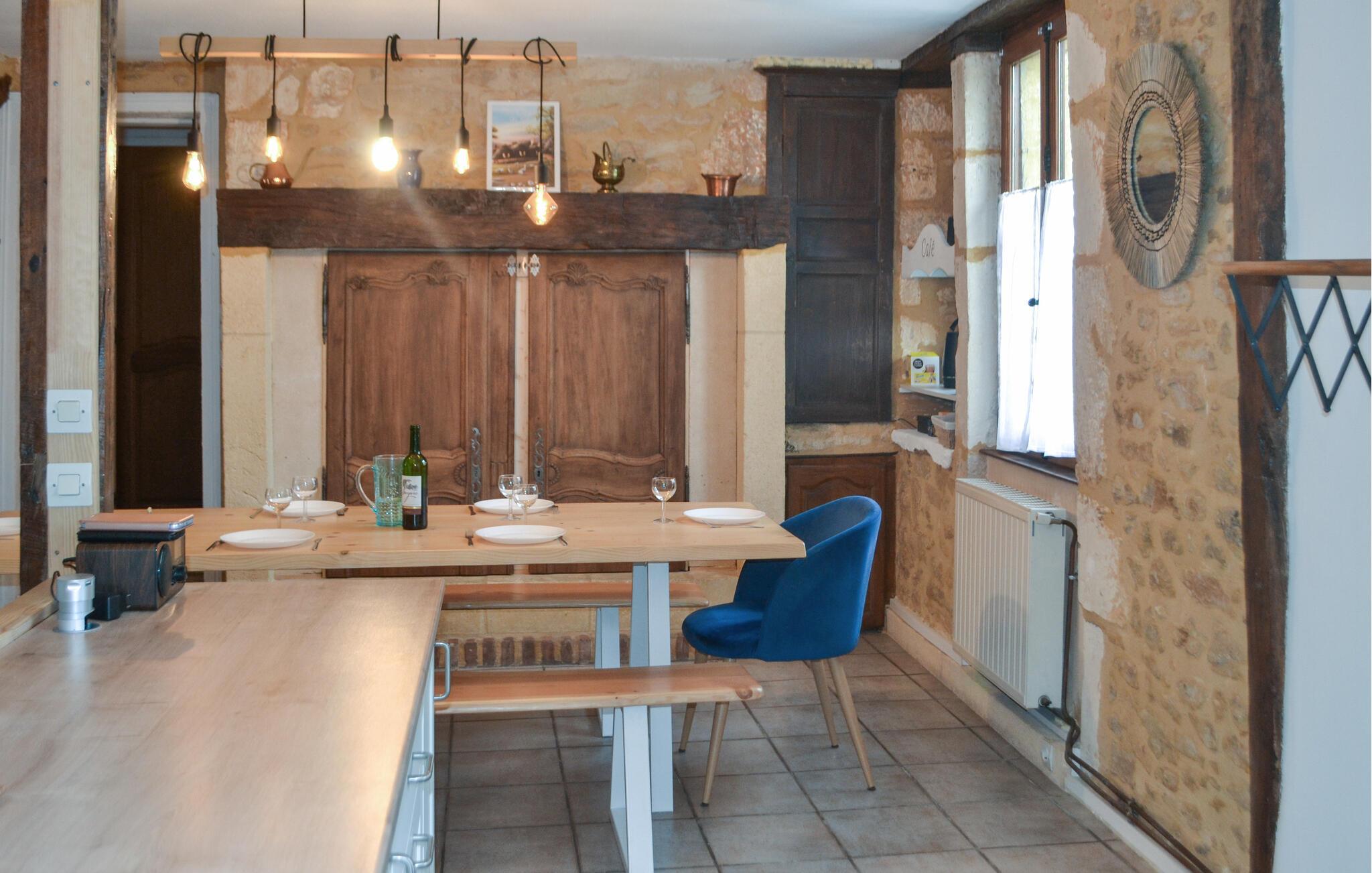 Huset ligger i skønne omgivelser, og I kan glæde jer til at gå på opdagelse i det smukke landskab i Dordogne. Tæt på finder I både en flod og en sø, som indbyder til friske dyp på de varme sommerdage. I Sarlat-la-Canéda kan I slentre gennem de smalle gader, beundre rådhuset og basilikaen og lade jer fortrylle af denne smukke bys middelalderlige charme.