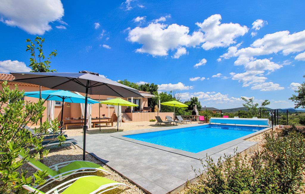 Stort moderne hus med privat pool og smuk udsigt i det sydlige Ardèche, på en stor lukket grund. Huset ligger i hjertet af en vidunderlig region ved storslåede Gorges de l'Ardèche, der er kendt som Europas Grand Canyon. Huset ligger 10 km fra Balazuc, en lille middelalderby med masser af charme, samt Voguë, der med sit slot og dens middelalderlige huse fremstår majestætisk med et stentårn over floden. Her kan du leje kano eller kajak, og du kan tage smukke gåture langs sandstranden og småstenstrande. Udsigten fra husets og terrassen er fantastisk og præges af duftene fra de omkringliggende oliventræer. Nyd en skøn ferie med afslapning ved poolen, kulturelle oplevelser og naturaktiviteter.