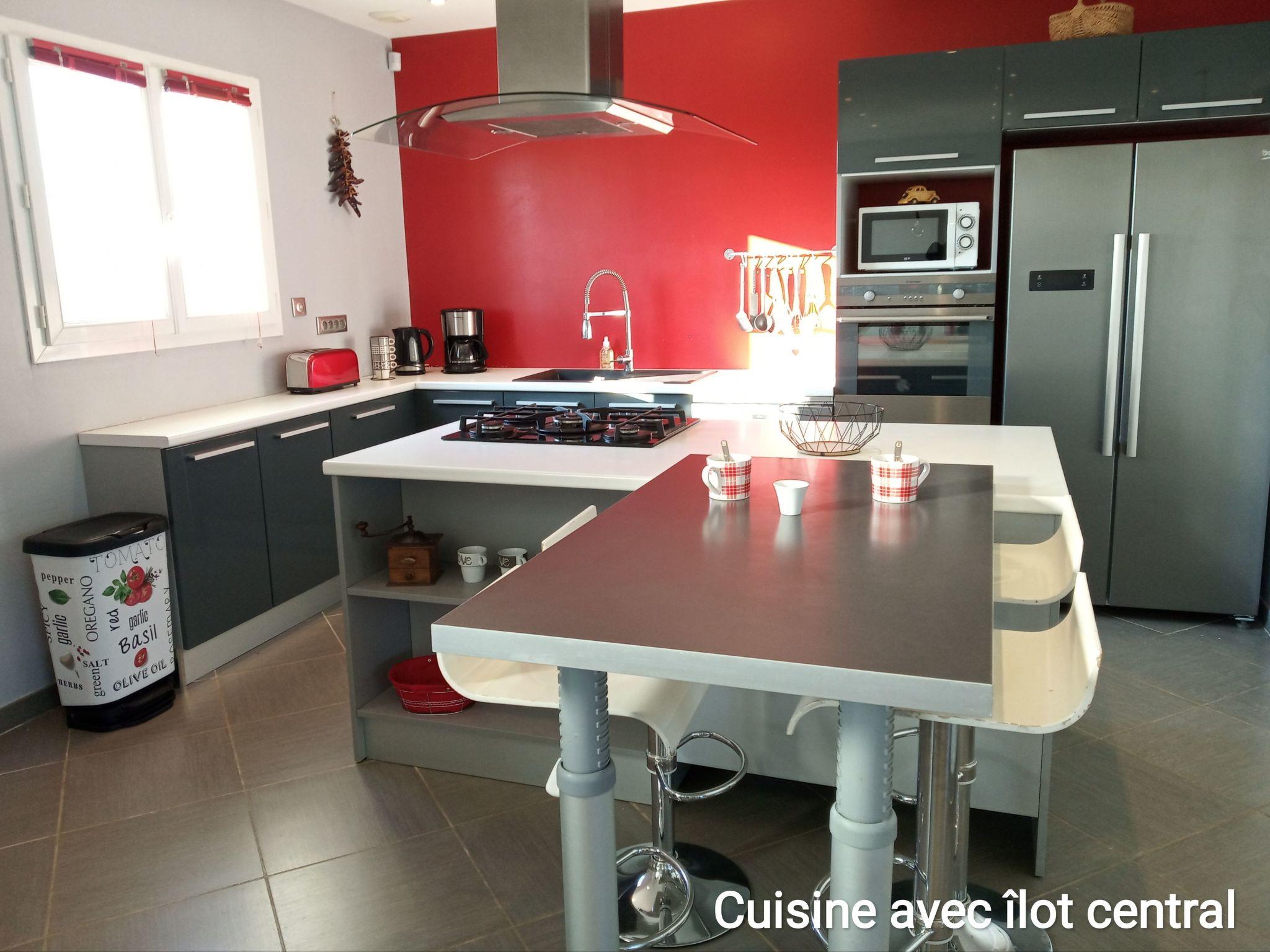 - a large living room with open-plan, well-equipped kitchen (fridge/freezer, dishwasher, etc.),