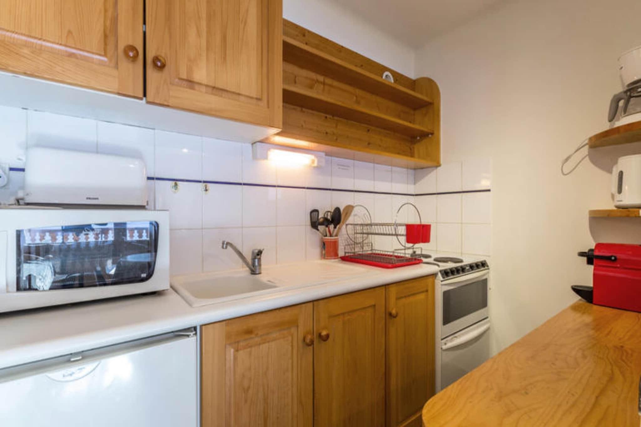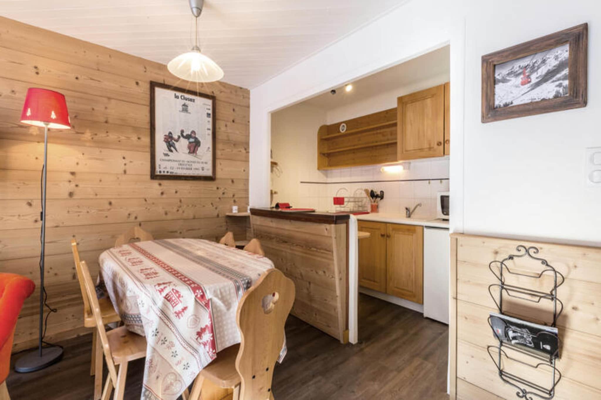 Ejendommen tilbyder sammen med en funktionel indretning et hyggeligt rum for op til 6 gæster. Denne lejlighed på 53 m² har to separate værelser, et bjerghjørne med dobbeltseng og et soveværelse med to køjesenge og en ekstra enkeltseng. I stuen er der en udtrækssovesofa og et fladskærms-tv, der byder på masser af siddepladser til afslapning. Gæsterne kan også nyde en sydvendt balkon med udsigt over det omkringliggende område. Mens kæledyr ikke er tilladt, tilbyder lejligheden dynebetræk, lagner og pudebetræk. Yderligere tjenester såsom rengøring og udlejning er tilgængelige efter anmodning, selvom kæledyr er forbudt. Bekvemt beliggende i Upper Village, er boligen kun 300 meter fra Telemix stoleliften og skileleskopet i Bossonnet, hvilket gør det til et ideelt valg for skientusiaster. Lejligheden ligger også tæt på en legeplads og en sportsplads, som giver sæsonbestemte rekreative muligheder. Et shuttlestop, som ligger kun 100 meter væk om vinteren og 140 meter om sommeren, giver nem adgang til andre dele af resortet. Nærliggende butikker samt transportmuligheder som La Clusaz busstation og Annecy SNCF togstation forbedrer lejlighedens tilgængelighed for besøgende. Tekøkkenet er udstyret med væsentlige apparater, herunder køleskab, glaskeramisk kogeplade, ovn, mikroovn og opvaskemaskine, hvilket sikrer, at gæsterne nemt kan tilberede deres måltider. En Nespresso kaffemaskine tilføjer et ekstra strejf af komfort. Lejligheden har desuden vaskemaskine i brusebadet, samt dekorativ pejs i stuen for at give en hyggelig atmosfære. Et skiskab er tilgængeligt på stedet for gæsternes bekvemmelighed, og centralvarmesystemet sikrer varme i de koldere måneder.