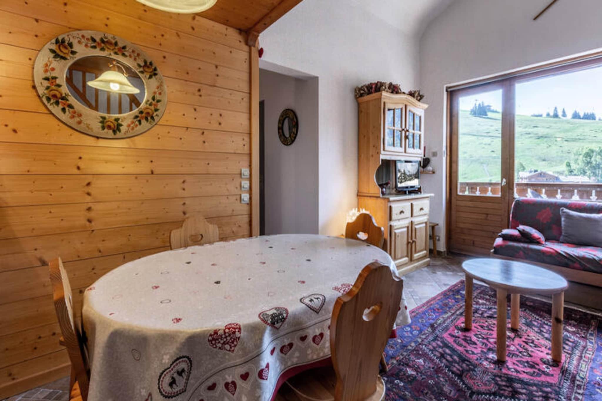 Ejendommen rummer sammen med sin charmerende alpine atmosfære komfortabelt op til 6 gæster i en 53 m² stor lejlighed. Denne bolig har to bjerghjørner, hver med en dobbeltseng, og en mezzanin med to enkeltsenge, hvilket gør den ideel til familier eller grupper. Den rummelige stue har sofa og fladskærms-tv, og lejligheden har sydvendt balkon med en fantastisk udsigt over resortet og bjergene. Kæledyr er tilladt, og der tilbydes yderligere tjenester såsom garageparkering og skiskabe. Der er gratis trådløs internetadgang for gæsterne, og opvarmningen styres med elektrisk gulvvarme. Lejligheden er udstyret med de nødvendige faciliteter for et bekvemt ophold, og mens rengøring er tilgængelig mod et ekstra gebyr, inkluderer lejeprisen sengetøj såsom dynebetræk, lagner og pudebetræk. Beliggende i den øverste del af landsbyen tilbyder boligen en førsteklasses beliggenhed kun 250 meter fra Telemix stoleliften og Bossonnet-skiløjpen, hvilket gør den til et fremragende valg for vintersportsentusiaster. Skiskolens afgangssted er også i nærheden. Ud over at stå på ski er ejendommen i gåafstand til butikker og andre landsbyattraktioner, hvilket sikrer, at gæsterne har nem adgang til det væsentlige og fritidsaktiviteter. Et shuttle-busstoppested er bekvemt placeret foran boligen om vinteren og kun 240 meter væk om sommeren, hvilket gør det nemt at udforske det omkringliggende område. For dem, der rejser med tog, ligger Annecy SNCF-stationen 33 km væk, med La Clusaz-busstationen kun 1,05 km fra boligen. Lejligheden er veludstyret med tekøkken med køleskab, miniovn, mikroovn, keramisk kogeplade, opvaskemaskine og vaskemaskine. Dette giver gæsterne mulighed for at tilberede deres egne måltider under deres ophold. Bruserummet er udstyret med moderne bekvemmeligheder, herunder en håndklædetørrer, og der er et separat toilet for ekstra bekvemmelighed. Boligen har også to skiskabe til opbevaring af udstyr og tilbyder garageparkering til gæster med køretøjer. Derudover har ejendommen en fantastisk udsigt fra både stuen og bjerghjørnerne, sammen med rigeligt solskin, hvilket skaber et afslappende og malerisk miljø for gæsterne.