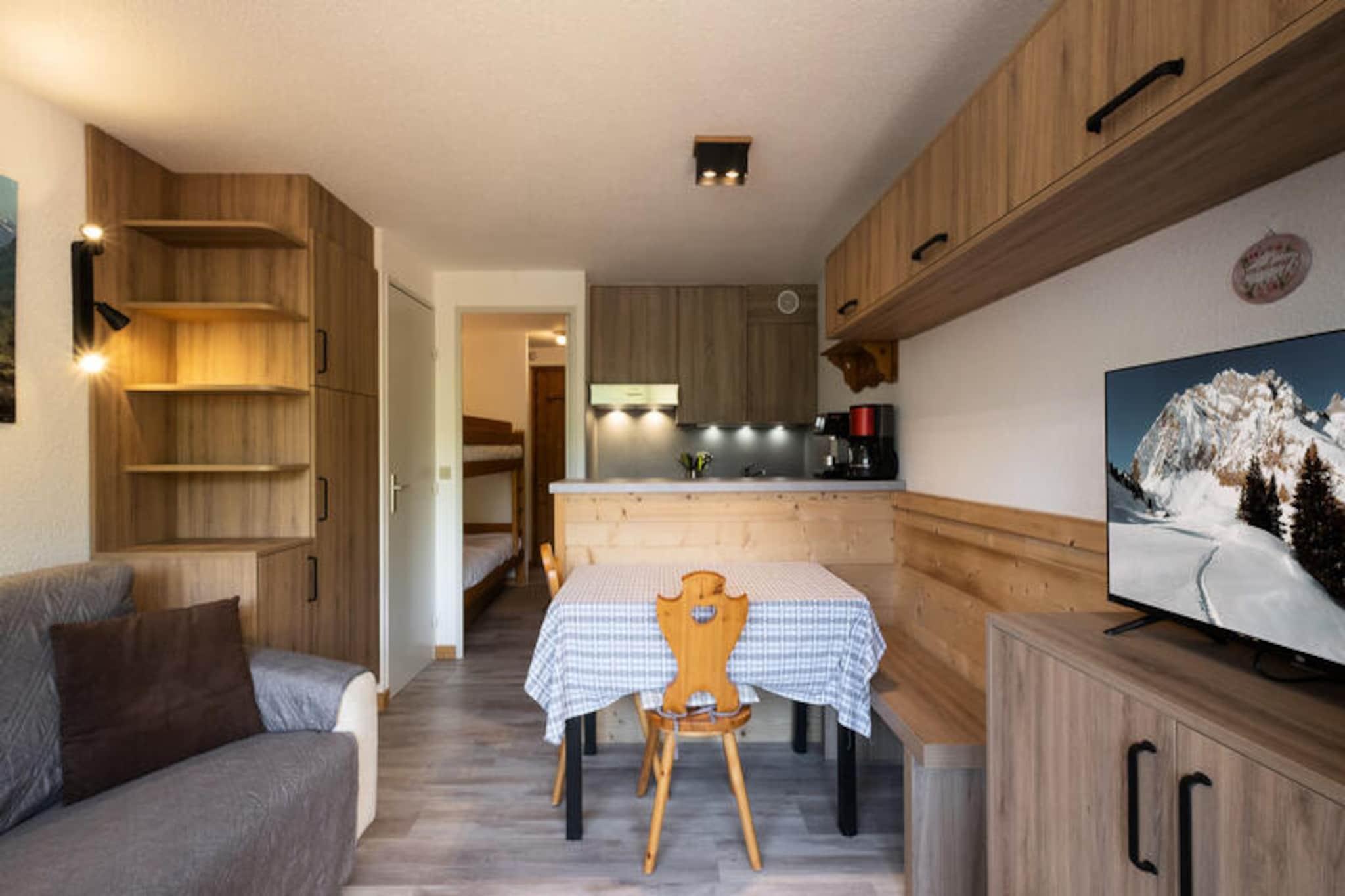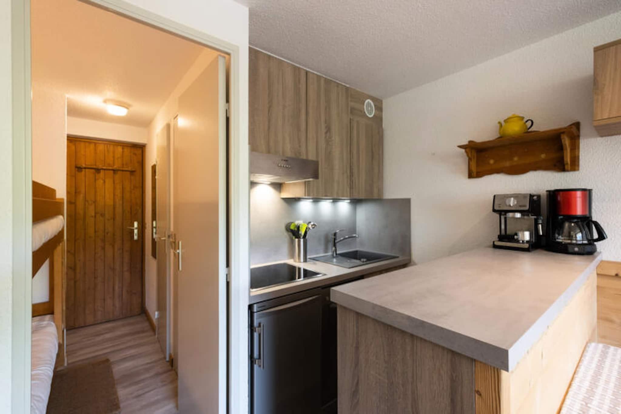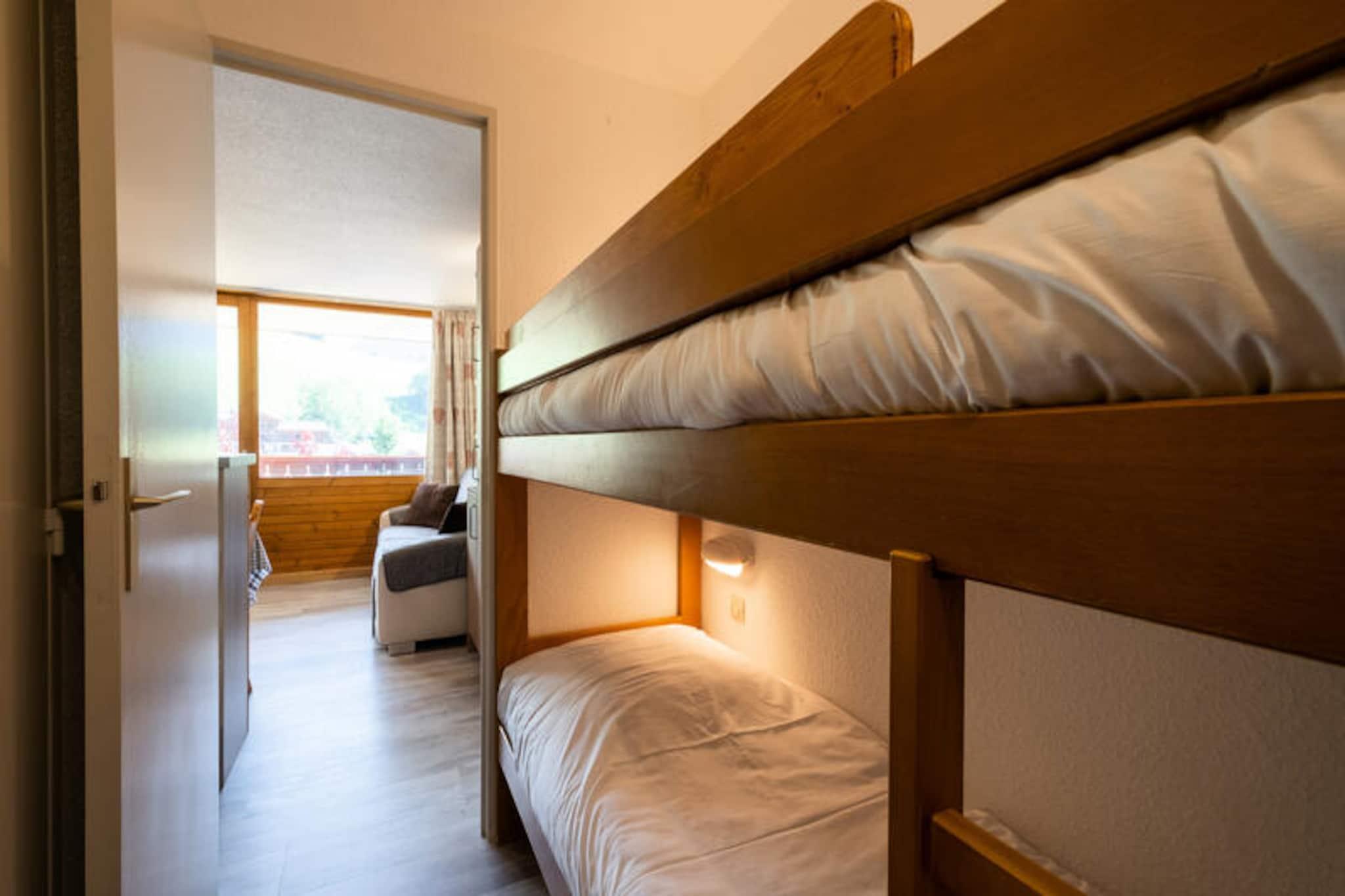 Dette charmerende studie med et sovehjørne er ideelt for 2 til 4 rejsende og tilbyder et hyggeligt 21m² stort rum på første sal i en bolig beliggende øverst i landsbyen. Lejligheden har et sovehjørne med to køjesenge (for børn over 6 år), et badeværelse med badekar og et separat toilet. Tekøkkenet er veludstyret med køleskab, mikrobølgeovn, keramiske kogeplader og opvaskemaskine. I stuen er der en rapido-sovesofa, fladskærms-tv og en spiseplads med adgang til en sydvendt balkon, der byder på en fantastisk udsigt over bjergene og masser af solskin. Sengetøj, inklusive dynebetræk, lagner og pudebetræk, er til rådighed. Lejligheden er ikke-ryger, og kæledyr er ikke tilladt. Boligen har en fremragende beliggenhed, kun 250 meter fra Bossonnet Telemix, stoleliften og skiløjperne (baneafgang for skiskoler), hvilket gør den perfekt for skientusiaster. Det nærliggende busstoppested giver nem adgang til andre dele af landsbyen, med et stop direkte foran boligen om vinteren og 240 meter væk om sommeren. Boligen er også i gåafstand til lokale butikker, hvilket øger dens bekvemmelighed. Yderligere faciliteter inkluderer en privat garageplads (Garage A 15), et skiskab og elvarme med gulvvarme for komfort. Bygningen har elevator, og boligen er opført i 1989, bestående af 43 lejligheder. Ejendommen er ikke egnet til personer med nedsat mobilitet. Nærliggende transportmuligheder omfatter Annecy SNCF-togstation, 3 km væk, og La Clusaz-busstationen, som ligger 1,05 km fra boligen. Der kræves et refunderbart depositum på EURO500.