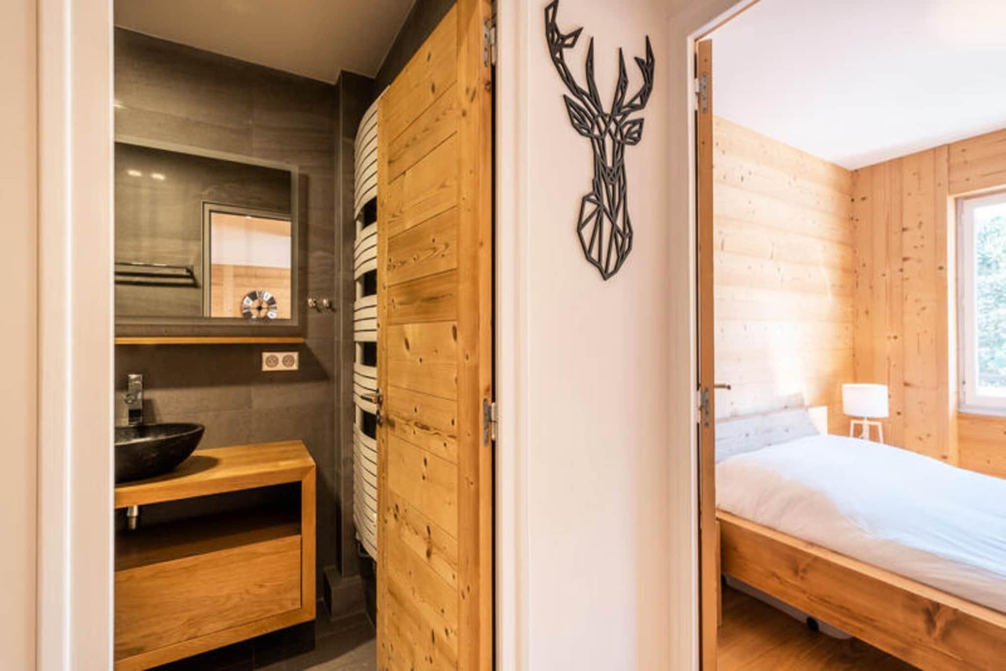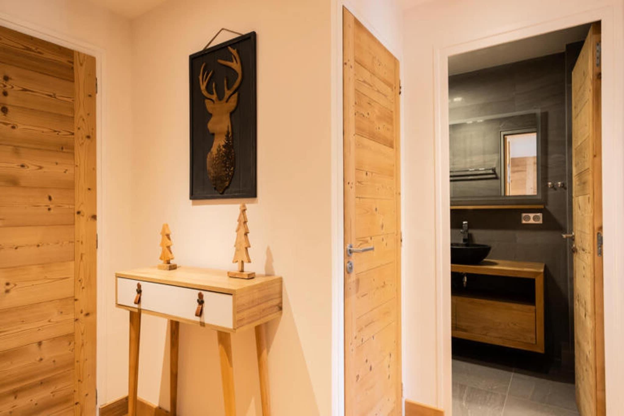 Ejendommen er sammen med sin charmerende og funktionelle indretning en 39m² lejlighed beliggende på anden sal og kan rumme op til 4 personer. I stuen er der en Rapido-sovesofa (140) og et fladskærms-tv, mens det tilstødende soveværelse er indrettet med en dobbeltseng (140). Gæsterne kan nyde en privat sydøstvendt balkon med udsigt over de omkringliggende grønne områder, skråninger og bjerge. Denne lejlighed tillader ikke kæledyr og er ikke-ryger. Det omfatter også et skiskab for gæsternes bekvemmelighed. Tilvalgsydelser er ikke nævnt, men lejligheden leverer dynebetræk, lagner og pudebetræk ved ankomst. Der er ingen gratis aktiviteter inkluderet. Ejendommen ligger i den naturskønne Aravis-dal, 3,2 km fra landsbyens centrum, og tilbyder nem adgang til de nærliggende attraktioner og skifaciliteter. Boligen ligger kun 200 meter fra Etale telemix-liften og kun 600 meter fra udgangspunktet for La Combe des Juments stoleliften, hvilket gør den til et ideelt valg for skientusiaster. Et shuttlestoppested kun 200 meter fra boligen sikrer problemfri transport til og fra landsbyen. Placeringen tilbyder et fredeligt tilflugtssted med en betagende udsigt over bjergene, mens den stadig er tæt på landsbyen og væsentlige faciliteter. Den nærmeste togstation er Annecy SNCF, cirka 36,6 km væk, og La Clusaz-busstationen ligger 3,95 km fra ejendommen. Lejligheden er udstyret med et velindrettet køkken med køleskab med fryser, induktionskomfur, ovn, mikroovn, opvaskemaskine og Nespresso kaffemaskine. Et separat badeværelse med bruser, håndvask og håndklædetørrer giver bekvemmelighed sammen med en vaskemaskine til tøjvask. Lejligheden har også et separat toilet og centralvarme for komfort. Der er adgang til boligens ydre via en ekstern trappe, og selve lejligheden er placeret i en bolig på 10 enheder, bygget i 1969. Selvom der ikke er nogen dedikeret parkering, gør skiopbevaringsrummet og nærheden til elevatorer det til et bekvemt valg for dem planlægger at køre på pisterne.
