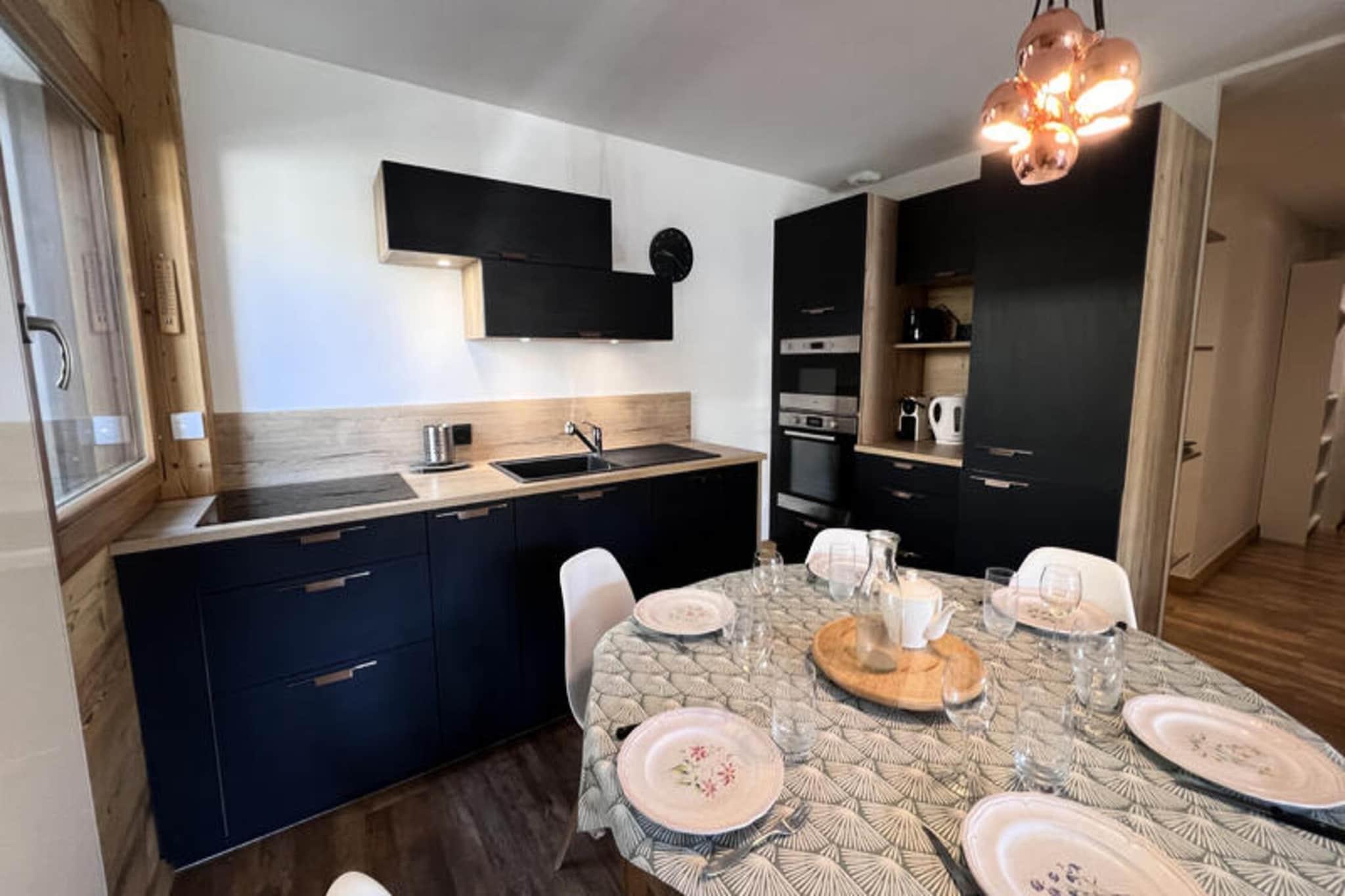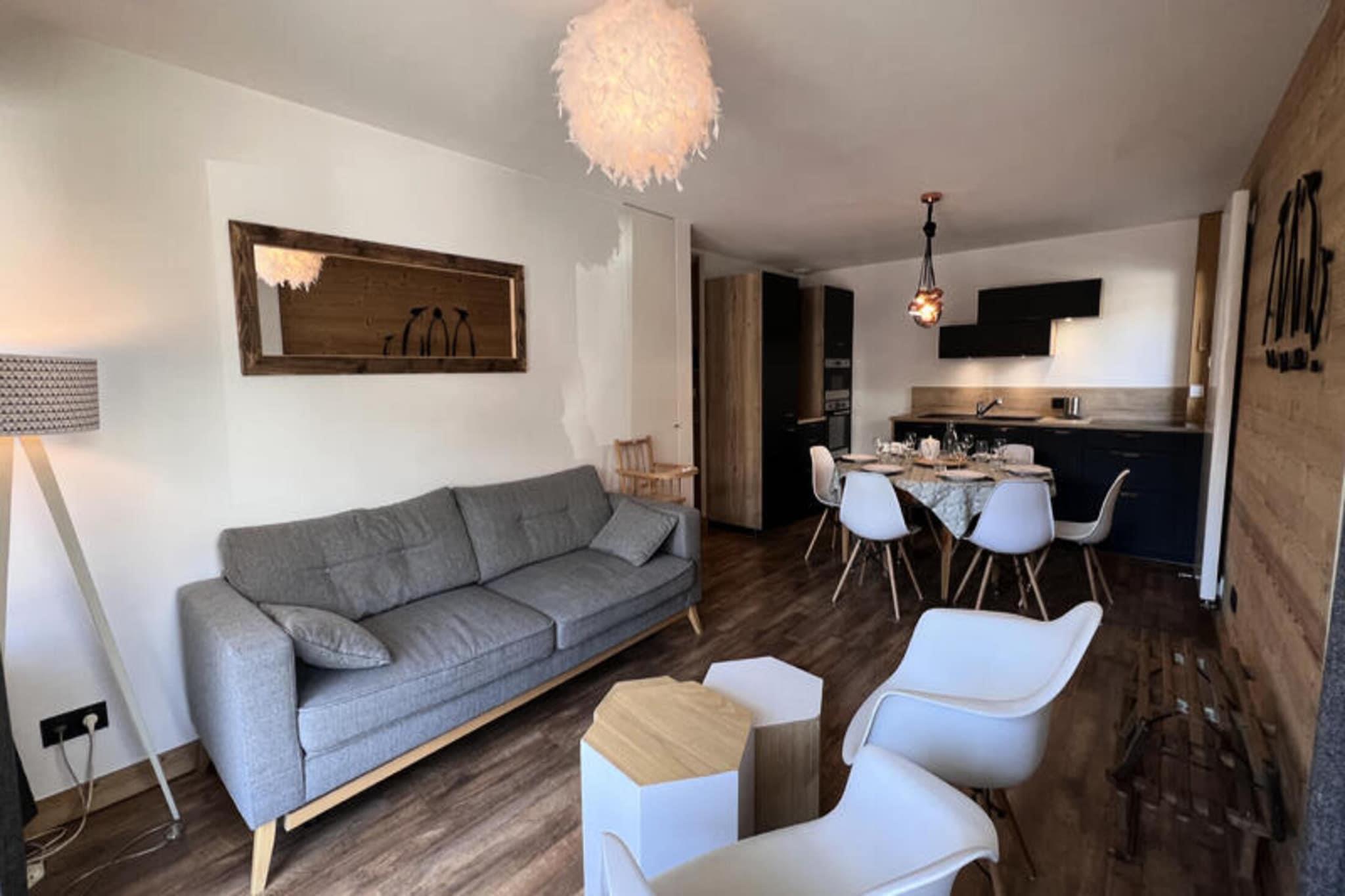 Beliggende i hjertet af landsbyen La Clusaz tilbyder lejligheden en perfekt base for en bjergferie. Denne 72 m² store lejlighed i stueetagen ligger blot 300 meter fra Bossonnet-skilifterne og kan rumme op til 8 personer. Med syd- og østvendte terrasser kan gæsterne nyde en naturskøn udsigt over Massif de Beauregard og Aiguille. Lejligheden har en rummelig spiseplads, et fuldt udstyret køkken med moderne apparater og tre hyggelige soveværelser, herunder et master bedroom med en king-size seng og to værelser med ekstra sovemuligheder for større grupper eller familier. Landsbyen La Clusaz er kendt for sin charmerende atmosfære med butikker, restauranter og caféer kun en kort gåtur væk. Skilifterne og pisterne er let tilgængelige og tilbyder en bred vifte af vintersport. Om sommeren forvandles resortet til et knudepunkt for vandreture, mountainbiking og udendørsaktiviteter. Yderligere faciliteter omfatter to badeværelser, det ene med brusekabine og det andet med badekar samt vaskemaskine og tørretumbler. Der er også privat parkeringsplads, skiskabe og babyudstyr. For ekstra bekvemmelighed kan gæsterne vælge yderligere tjenester såsom Wi-Fi, leje af sengetøj og slutrengøring.