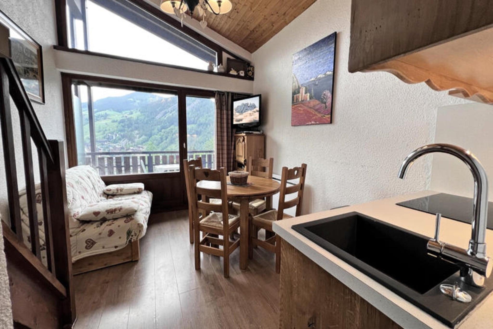 Denne charmerende 2-værelses lejlighed med en mezzanin ligger i det fredelige Les Riondes-område i La Clusaz, kun 750 meter fra landsbyens centrum. Lejligheden er beliggende på første sal i en lille bolig med en fantastisk udsigt over Aravis-bjergkæden og landsbyen. Den er ideel til op til fire gæster og omfatter en hyggelig stue med sofa, tv og dvd-afspiller samt et fuldt udstyret køkkenhjørne med 4 induktionskogeplader, mikrobølgeovn, køleskab med fryser og en raclettemaskine. Mezzaninen rummer en komfortabel 160 cm seng, mens soveværelset byder på en sovesofa til to. Badeværelset er udstyret med bruser og separat toilet. Placeringen er perfekt for udendørsentusiaster, med Beauregard-skråningen kun 50 meter væk, som tilbyder direkte adgang til skiområdet, samt vandrestier, der starter lige uden for døren. Ud over skiløb og vandreture gør den nærliggende busrute det nemt at udforske La Clusaz og dens omgivelser. Gæsterne kan nyde roen i området, mens de er tæt på landsbyens butikker og restauranter. Valgfrie tjenester såsom en mini Wi-Fi-boks, leje af sengetøj og babyudstyr er tilgængelige for nemheds skyld, med en garage inkluderet til din bil. Kæledyr er tilladt mod et ekstra gebyr.
