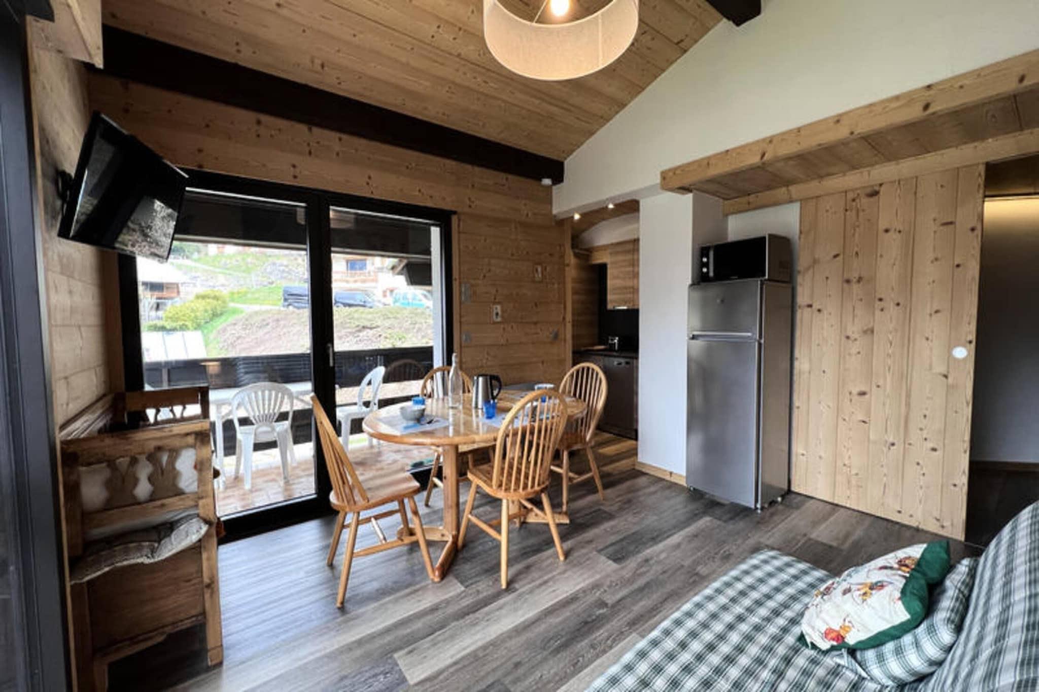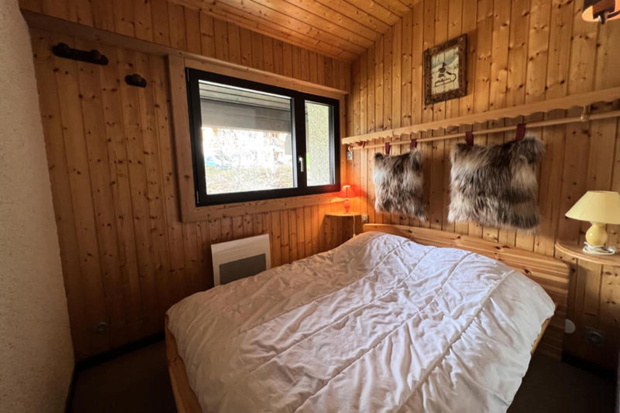Dette er et charmerende rum på 39 m² beliggende på første og sidste sal i en hytte med 5 lejligheder, der tilbyder et fredeligt miljø med en fantastisk udsigt over Aravis-bjergkæden. Lejligheden kan rumme op til 5/6 personer og er ideel til familier eller små grupper. Det omfatter to soveværelser: et lille soveværelse med en BZ sovesofa til to, og et andet soveværelse med en dobbeltseng. Stuen har en sovesofa til to og åbner ud til en balkon med havemøbler. Køkkenhjørnet er veludstyret med keramiske kogeplader, ovn, mikroovn, køleskab/fryser, opvaskemaskine og uundværligt køkkenudstyr. En mini WiFi-boks er tilgængelig mod et ekstra gebyr, men kæledyr er ikke tilladt. Lejligheden ligger på kanten af ??Riffroids-skiløjpen og giver direkte adgang til pisterne og er kun 350 meter fra landsbyens centrum og skøjtebanen. Shuttle er i nærheden for ekstra bekvemmelighed, hvilket gør det nemt at udforske området. Lejlighedens beliggenhed tilbyder et roligt tilflugtssted, mens den stadig er tæt på resortets faciliteter. Ejendommen er ikke tilgængelig for bevægelseshæmmede, men der tilbydes parkering på reserveret plads til boligen. Inkluderede tjenester i Sapaudia G-lejligheden er et gratis velkomstsæt (toiletpapir, affaldspose osv.), dyner og puder samt elvarme, vand og elektricitet. Valgfrie tjenester inkluderer leje af sengetøj, slutrengøring, en mini WiFi-boks og babyudstyr. Der kræves et bankkort ved nøgleoverdragelse, og gæsterne kan nyde rabat på sommeraktiviteter på feriestedet med Pass eXpérience La Clusaz.
