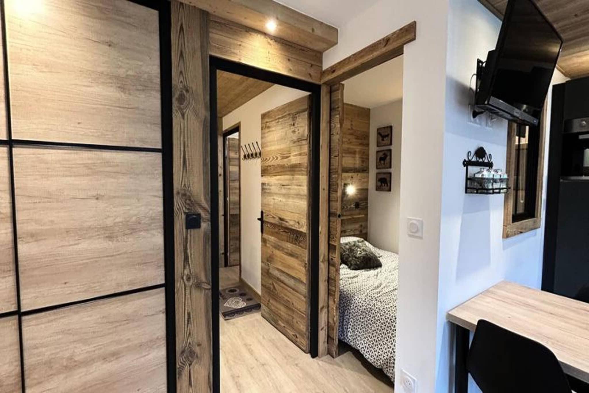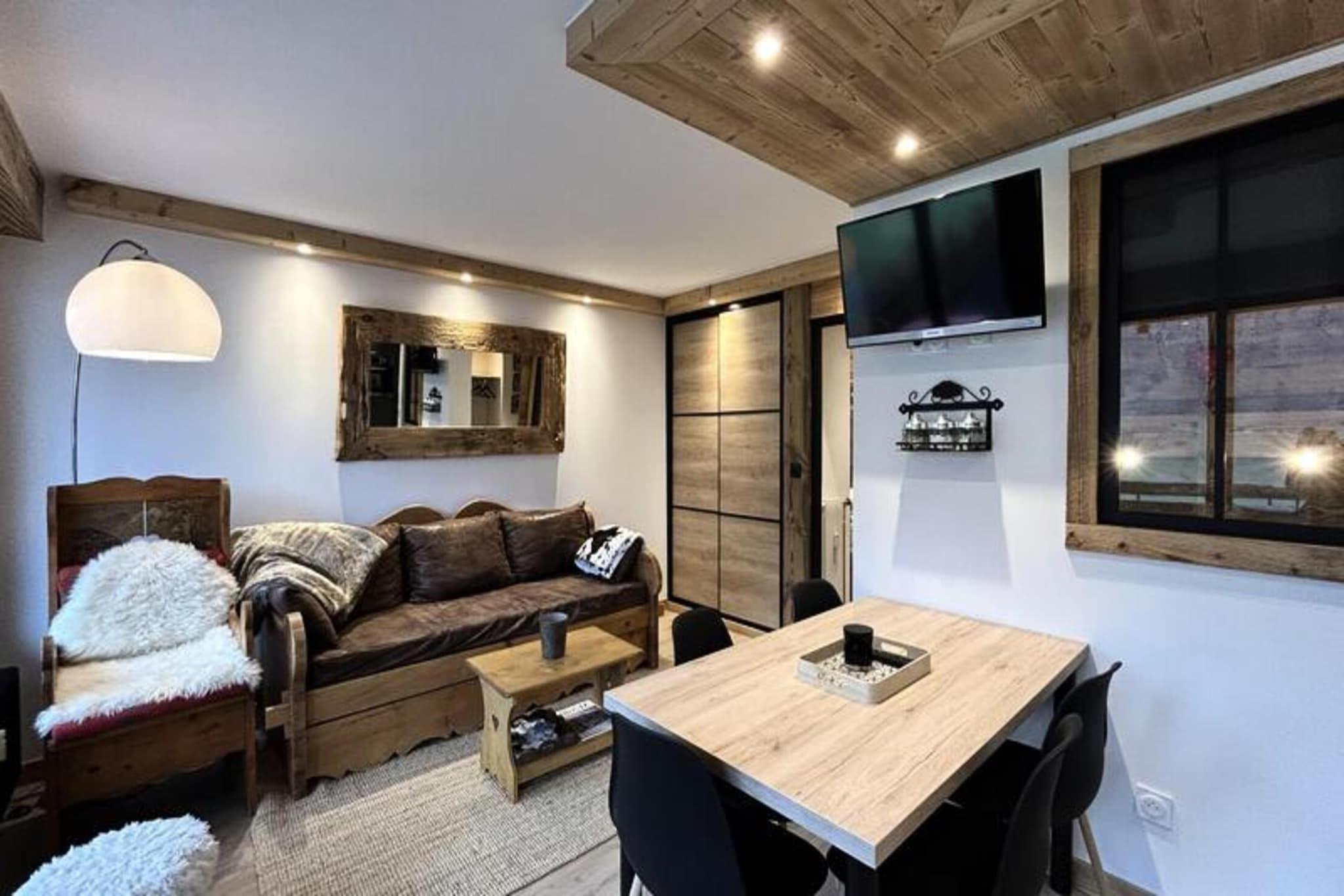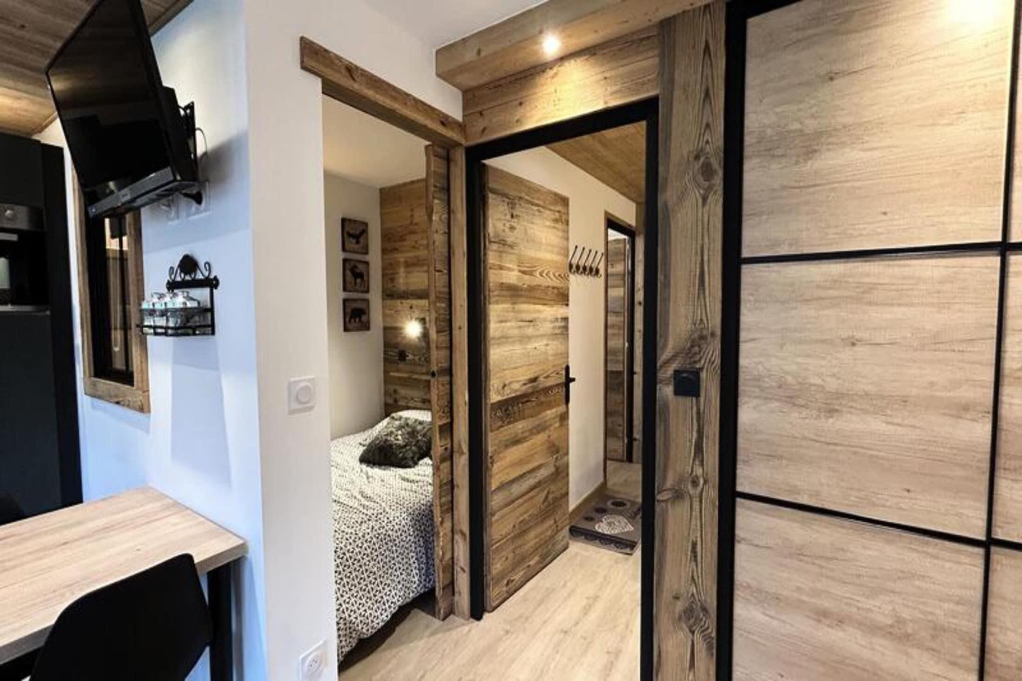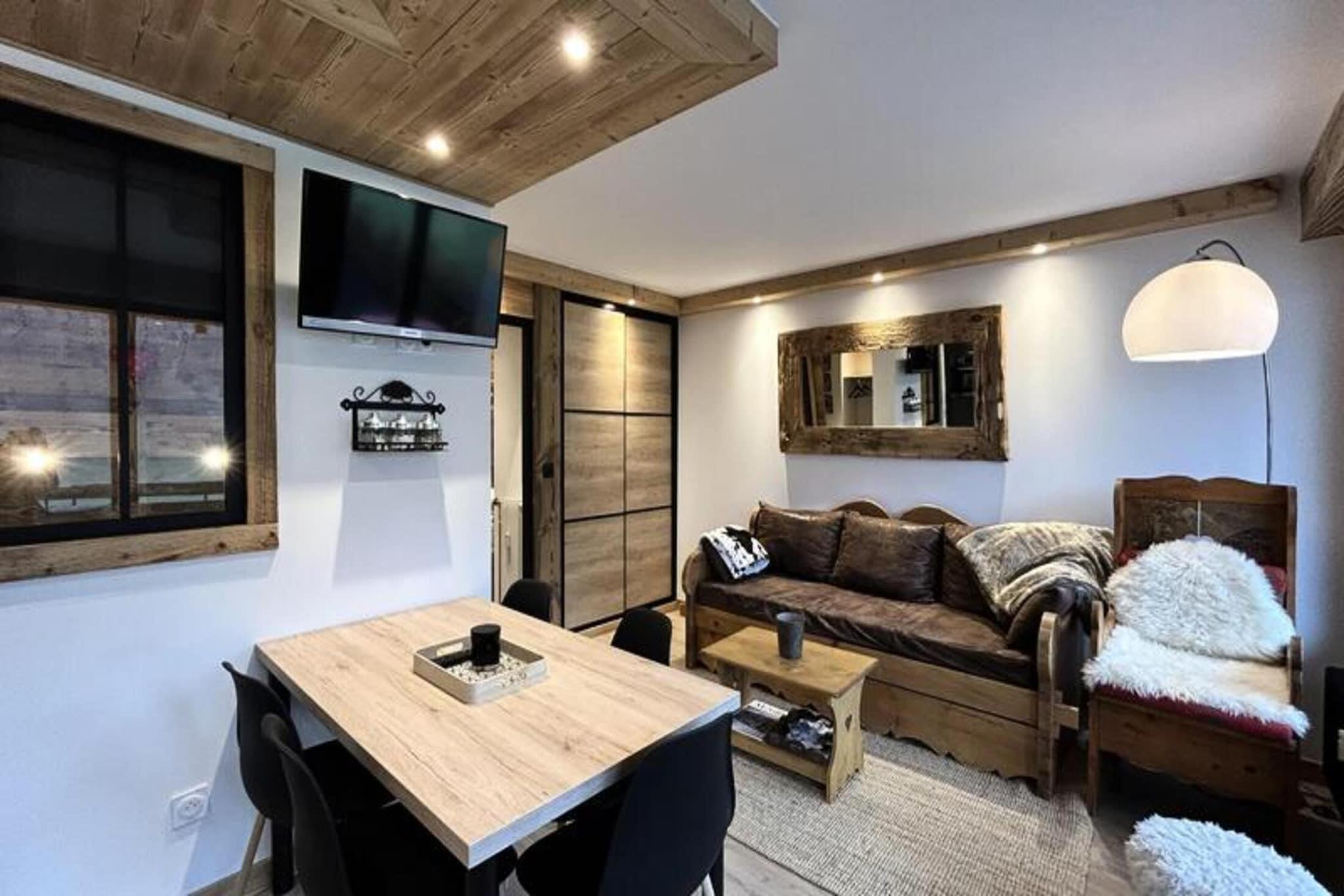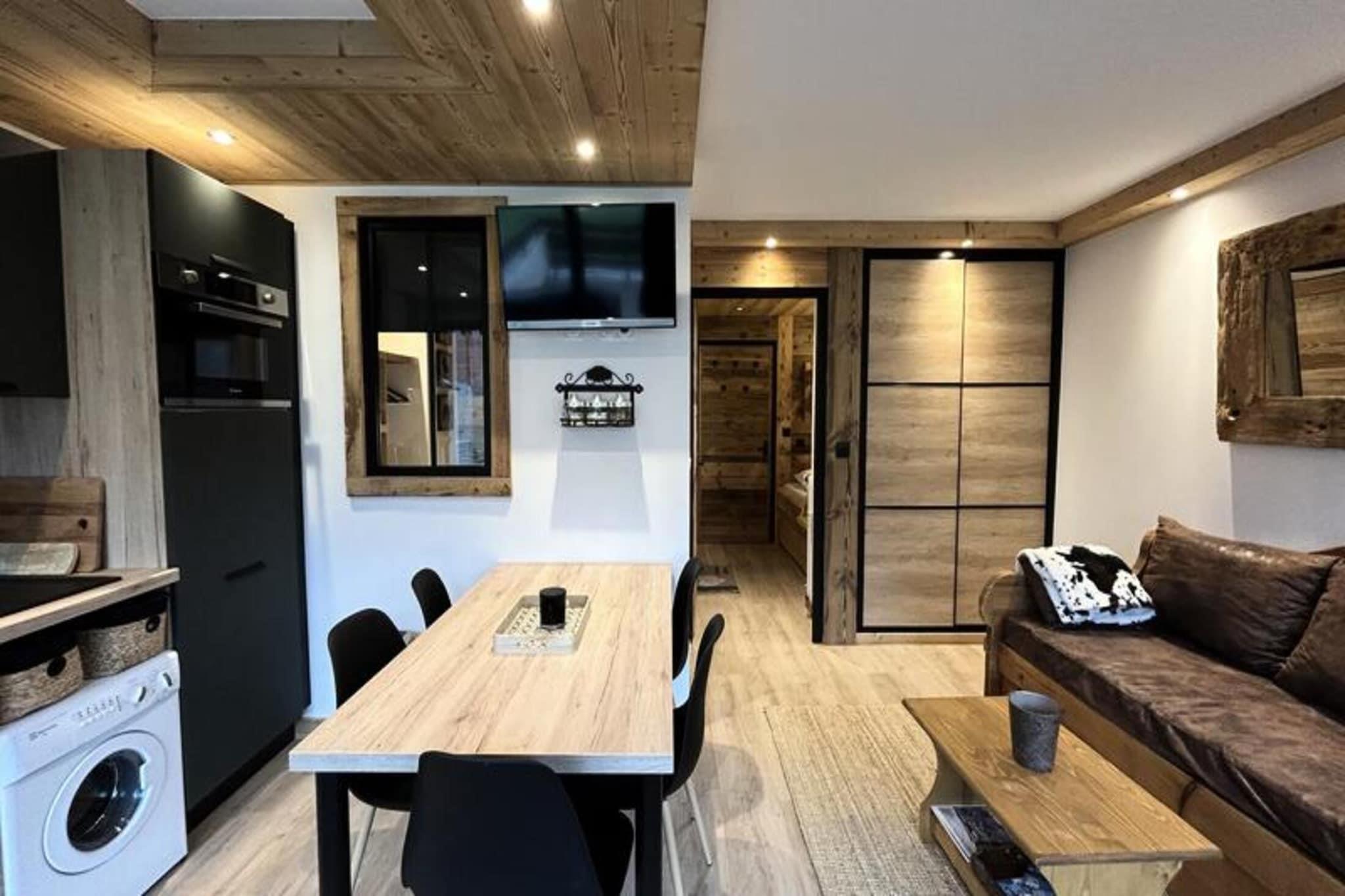 Ejendommen er sammen med dens charmerende funktioner en 30m² studiehytte designet til at rumme op til 4 gæster. Studiet har opholdsstue med sovesofa, tv og fransk vindue, der fører til en sydvendt terrasse med udsigt over Aravis-bjergkæden. Boligen har separat kahyt med dobbeltseng og åbent omklædningsrum samt køjeseng til to personer. Der er brusebad med badekar og separat toilet. Gæsterne kan nyde bekvemmeligheden ved et skiskab og garageplads på stedet, selvom dyr kun er tilladt efter forudgående aftale med et ekstra gebyr. Lagner og husholdningslinned kan lejes, og Wi-Fi er ikke inkluderet, men kan lejes separat. Beliggende i den fredfyldte Confins Valley, tilbyder boligen et fredeligt tilflugtssted, mens det stadig er tæt på vigtige attraktioner. Ejendommen ligger kun 2 km fra landsbyens centrum af La Clusaz, hvor butikker, restauranter og andre faciliteter er tilgængelige. Var grønne skråning, som ligger 100 meter fra ejendommen (hvis vejret tillader det), giver nem adgang for ski- eller snowboardentusiaster. Den nærmeste busstation ligger 2,5 km væk, og den nærmeste SNCF-togstation ligger 33 km fra ejendommen, hvilket gør den tilgængelig for gæster, der rejser med offentlig transport. Det åbne køkken er fuldt udstyret med moderne apparater, herunder 3 induktionskomfurer, en kombineret ovn og mikroovn, et køleskab, en opvaskemaskine og en Nespresso kaffemaskine. En vaskemaskine er også tilgængelig for gæsternes bekvemmelighed. Køkkenområdet åbner ind i det primære opholdsrum, hvilket skaber et behageligt og funktionelt miljø til madlavning og spisning. Ejendommen har også elvarme, en garage med begrænset plads og et skiskab, hvilket gør det ideelt for dem, der besøger i vintermånederne.