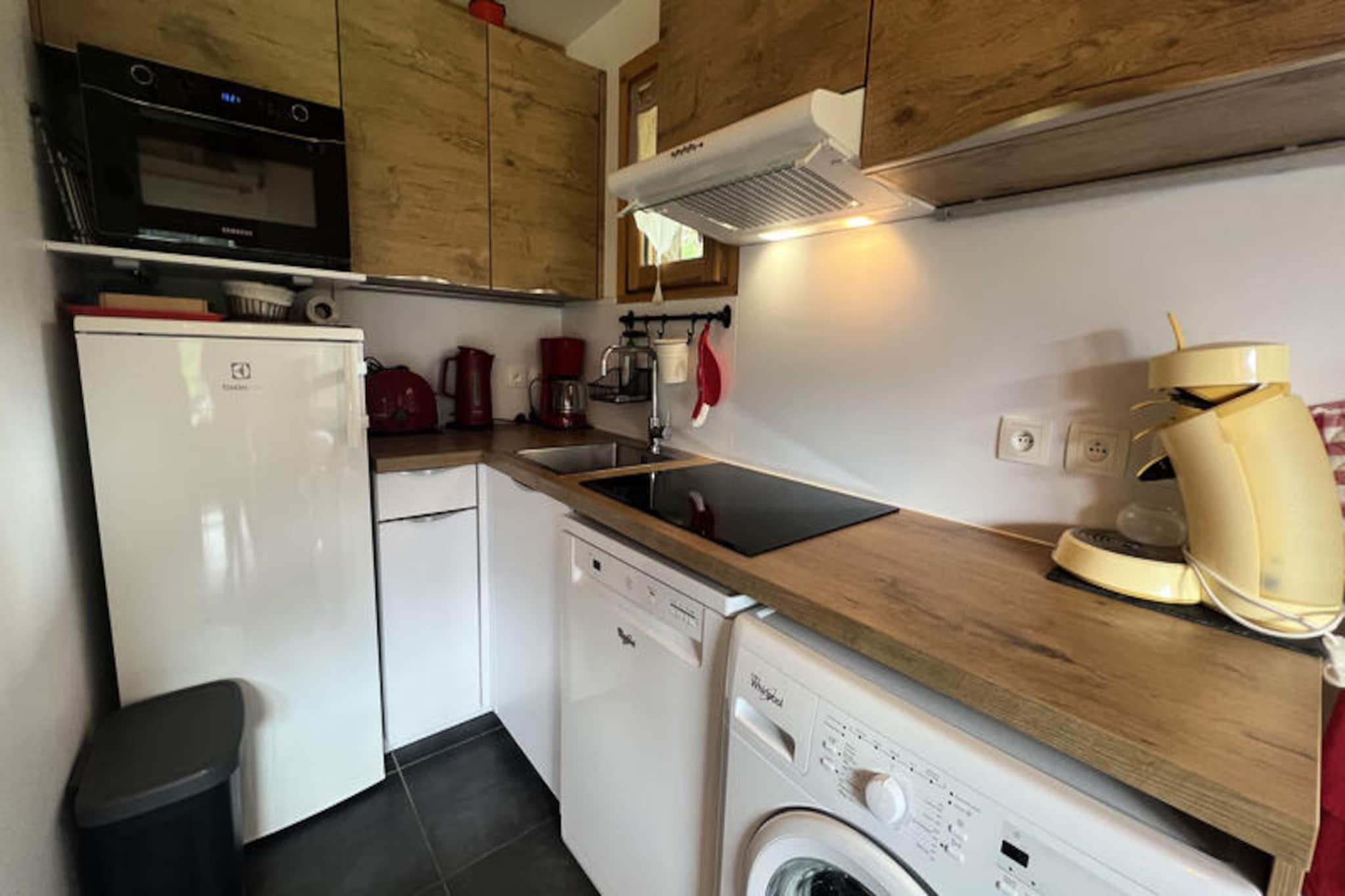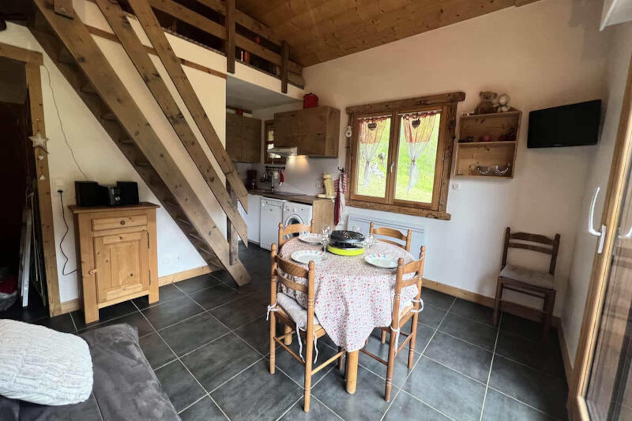 Ejendommen rummer sammen med sin charmerende indretning op til 5 gæster med et soveværelse med dobbeltseng, en mezzanin med 3 enkeltsenge og en komfortabel stue med en sofa. Det har en sydvendt balkon med naturskøn udsigt. Selvom kæledyr ikke er tilladt, er yderligere tjenester såsom leje af sengetøj, babyudstyr og valgfri rengøring tilgængelige. Der er et skiskab, og en mini-Wi-Fi-boks kan lejes for dem, der har brug for internetadgang. Ejendommen ligger 200 meter fra Vars grønne skråning og 2 km fra landsbyens centrum i La Clusaz og tilbyder nem adgang til pisterne og nærliggende butikker. Der ligger et gratis skibusstoppested blot 150 m derfra, og Annecy SNCF-togstationen ligger 34 km derfra, mens La Clusaz-busstationen ligger 2,15 km fra ejendommen. Denne førsteklasses beliggenhed giver både ro og bekvemmelighed. Det fuldt udstyrede køkken omfatter køleskab, mikroovn, ovn, keramisk kogeplade, opvaskemaskine og vaskemaskine. Ejendommen tilbyder også privat garage, skiskab og cykelopbevaring. Elvarme sikrer komfort, men boligen er ikke tilgængelig for bevægelseshæmmede.