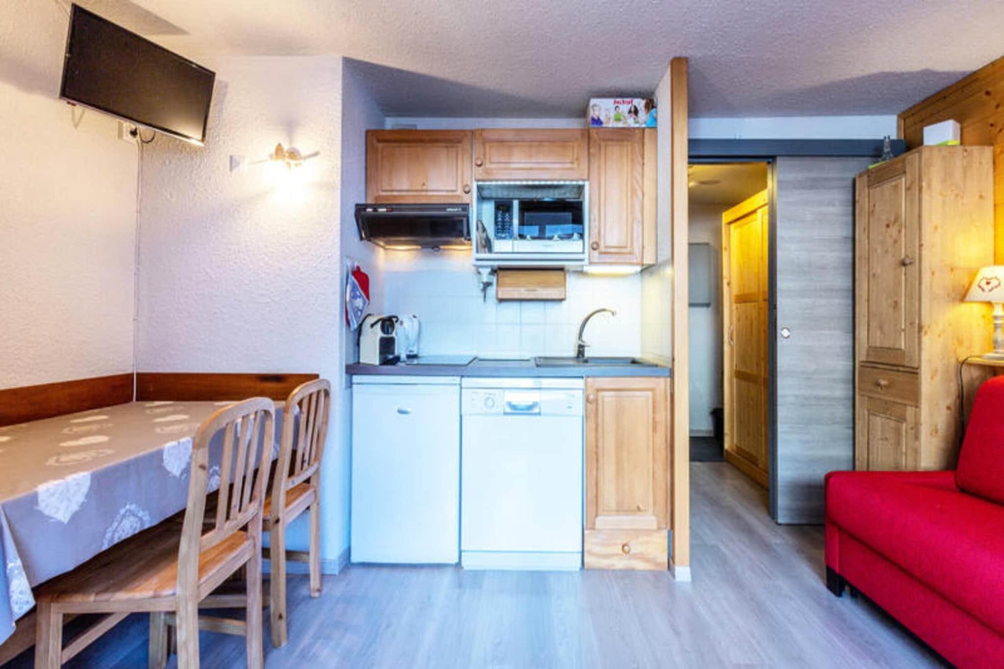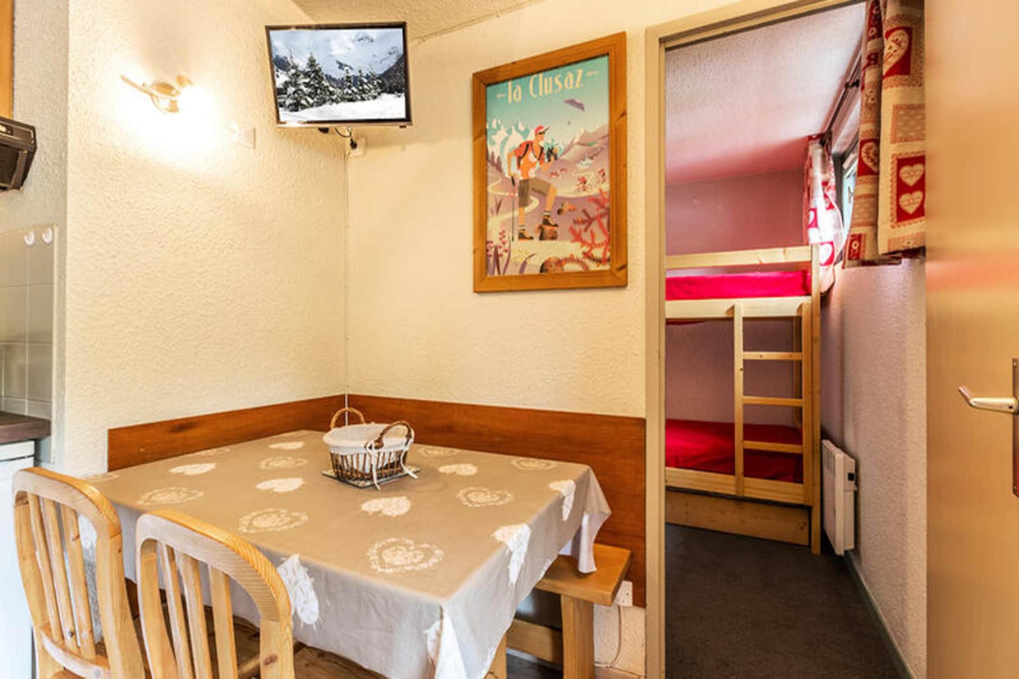 Denne ejendom, en charmerende og kompakt lejlighed, er ideel til en lille gruppe på op til 4 personer. Det har 2 værelser, herunder et lille soveværelse med køjesenge og en komfortabel opholdsstue med en rapido-sofa, der kan omdannes til en dobbeltseng. Fra stuen er der udgang til en stor østvendt altan med udsigt over landsbyen og de omkringliggende grantræer. Lejligheden er ikke-ryger, og kæledyr er ikke tilladt. Derudover har gæsterne adgang til et skiskab og overdækket parkeringsplads. Lagner og husholdningslinned kan lejes, og ejendommen tilbyder trådløs internetadgang. Ejendommen er beliggende i hjertet af La Clusaz, kun 300 meter fra Crêt du Merle stoleliften, som giver nem adgang til skiløb og vintersport. Lejligheden ligger også i gåafstand fra forskellige lokale attraktioner, herunder butikker, en biograf og Aquatic Center (i øjeblikket lukket for renovering i sommeren 2024). For offentlig transport er den nærmeste busstation 800 meter væk, og SNCF-togstationen ligger 33 km fra boligen, hvilket sikrer bekvemme rejsemuligheder for gæsterne. Lejligheden har et fuldt udstyret køkkenområde med væsentlige apparater såsom 2 elektriske kogeplader, en miniovn, et køleskab og en opvaskemaskine, perfekt til at tilberede måltider. En vaskemaskine er også til rådighed for nemheds skyld. Ejendommen har el-varme for et behageligt ophold og giver adgang til en overdækket parkeringsplads med specificerede dimensioner for parkeringsbekvemmelighed. Boligen er bygget i 1983 og har en elevator for nem adgang til første sal.
