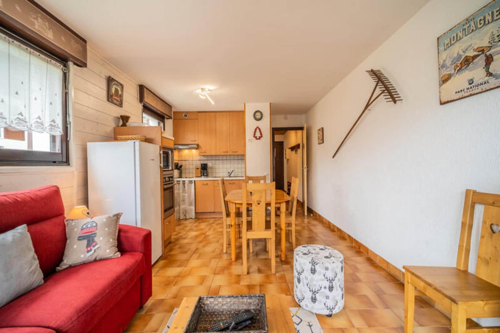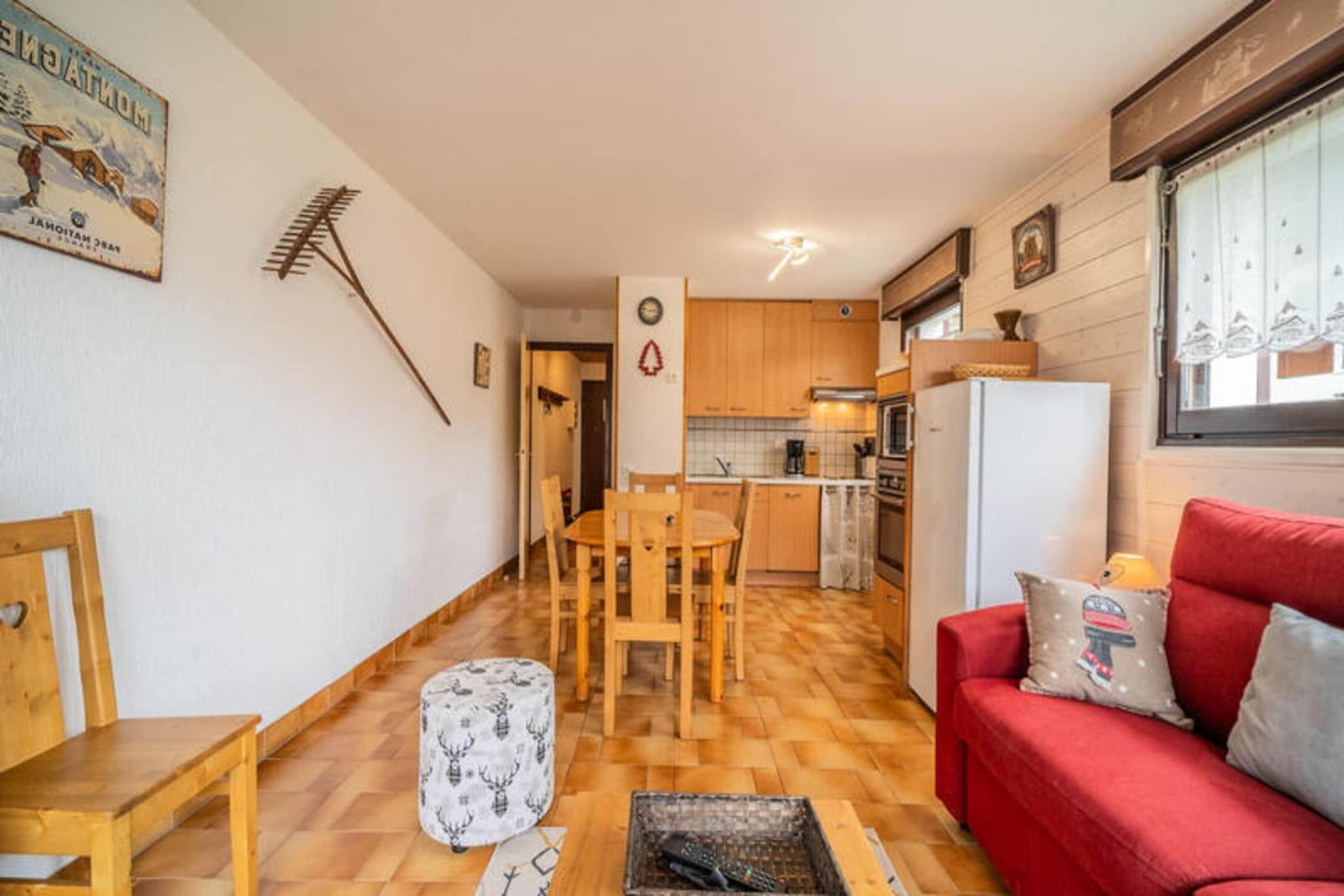 Denne charmerende studiohytte på 33 m² er beliggende i den øvre del af landsbyen ved "Les Granges", kun 50 meter fra Bossonnet-skiløjperne og ESF-mødestedet. Med nem adgang til både pisterne og nærliggende butikker er denne bolig perfekt til vinterentusiaster. Lejligheden er beliggende i den hævede stueetage og har en sydvendt terrasse, ideel til at nyde udsigten over bjergene og boligen. Under dit ophold kan du nyde nem adgang til pisterne samt det nærliggende vandområde (lukket for renovering i sommeren 2024). Den charmerende landsby byder på en række butikker, restauranter og afterski-aktiviteter. Lejligheden kan rumme op til 4 gæster, og byder på en kahyt med to køjesenge (øverste køje kun for børn over 6 år) og en lys stue med en 2-personers rapido sovesofa, fjernsyn og et fransk vindue, der fører til terrassen. Det åbne køkken er fuldt udstyret med Senseo kaffemaskine, keramiske kogeplader, ovn, mikroovn, køleskab, fryser og opvaskemaskine. Badeværelset har badekar, håndvask og toilet. Yderligere faciliteter omfatter centralvarme, skiskab, parkeringsplads og mulighed for at leje lagner og linned. Wi-Fi kan lejes (begrænset lager). Boligen ligger 34 km fra SNCF-togstationen og 800 m fra busstationen Book dit ophold hos i dag!