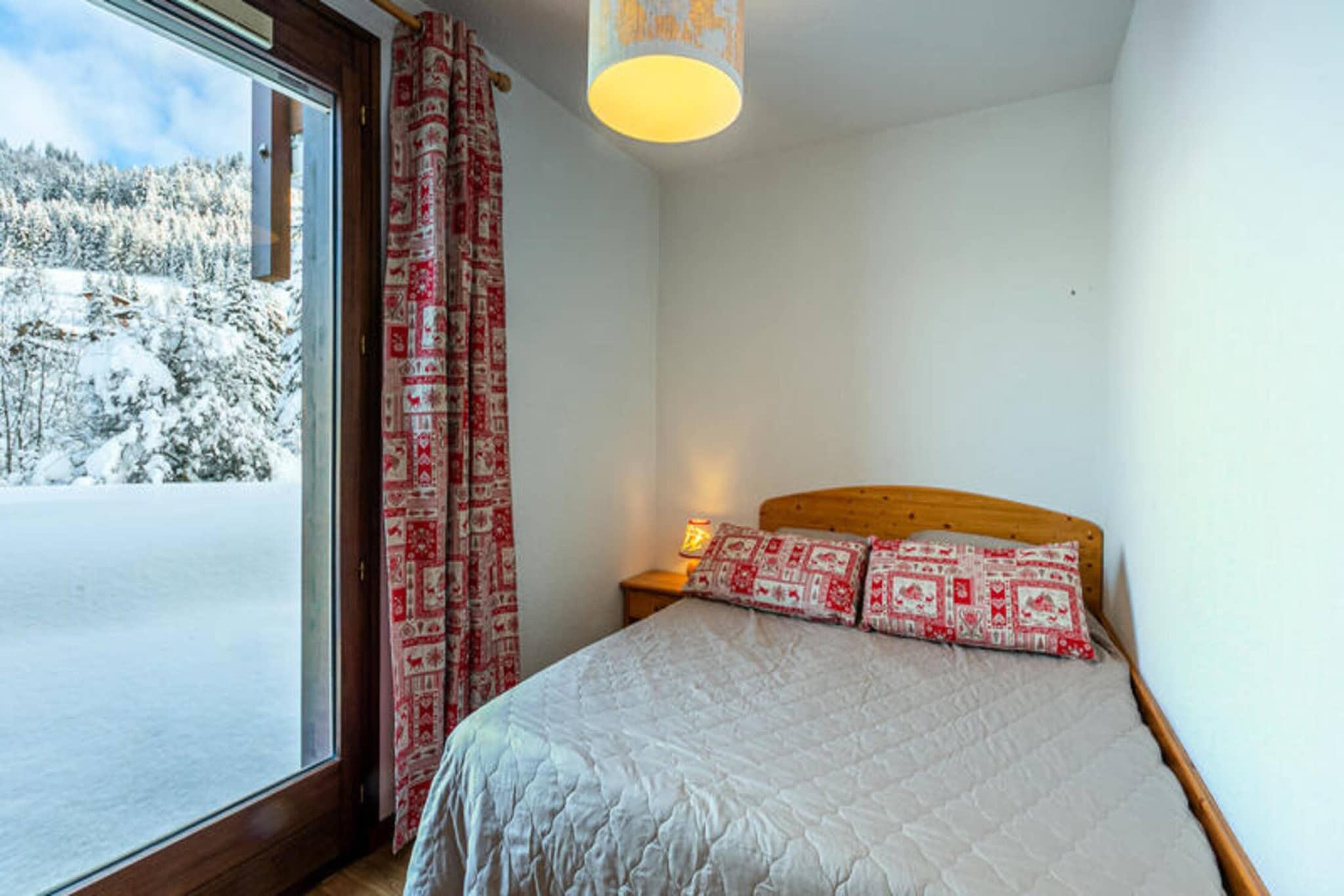 Ejendommen er sammen med dens hyggelige og praktiske indretning ideel til små grupper eller familier med plads til op til 4 personer. Feriehuset har et soveværelse med dobbeltseng og et bjerghjørne med to enkeltkøjesenge, hvilket gør det perfekt til både par og børn. I stuen er der en bænk, et fjernsyn og en dvd-afspiller, hvilket sikrer et afslappende sted for gæsterne at slappe af. En nord-vestvendt terrasse giver udendørs siddepladser og et dejligt sted at nyde udsigten. Kæledyr er ikke tilladt, og mens lejligheden byder på dyner, kan gæster leje ekstra lagner og husholdningslinned for ekstra komfort. Der er også et skiskab til opbevaring af vintersportsudstyr, og der er en overdækket parkeringsplads til et køretøj. Wifi er ikke inkluderet, men en lejeboks er tilgængelig efter anmodning. Beliggende i den rolige og maleriske Aravis Valley, tilbyder boligen et fredfyldt miljø, mens det stadig giver nem adgang til lokale attraktioner. Landsbyens centrum ligger kun 2,5 km væk, mens Beauregards grønne skråning kun ligger 100 meter fra ejendommen, perfekt for skientusiaster. Etale Telemix, som ligger 450 meter væk, er også let tilgængeligt, hvilket giver ekstra adgang til pisterne. Skibusstoppestedet ligger kun 50 meter fra boligen og tilbyder bekvem transport til og fra skiområderne. For dem, der ankommer med offentlig transport, er den nærmeste busstation 2 km væk, og SNCF-togstationen ligger 36 km fra ejendommen, hvilket gør det nemt at udforske den omkringliggende region. Lejligheden har et veludstyret køkkenområde med moderne apparater, herunder to induktionskogeplader, en opvaskemaskine, en mikrobølgeovn og et 110L køleskab, så gæsterne kan tilberede måltider under deres ophold. Badeværelset er udstyret med bruser, håndvask, håndklædetørrer og hårtørrer, hvilket øger lejlighedens bekvemmelighed. Elvarme sikrer en varm og behagelig atmosfære, især i de koldere måneder. Lejligheden i haveniveau tilbyder praktiske faciliteter, herunder en overdækket parkeringsplads (med specifikke størrelsesbegrænsninger) og et skiskab, hvilket gør den til en god base for både vintersport og afslapning.
