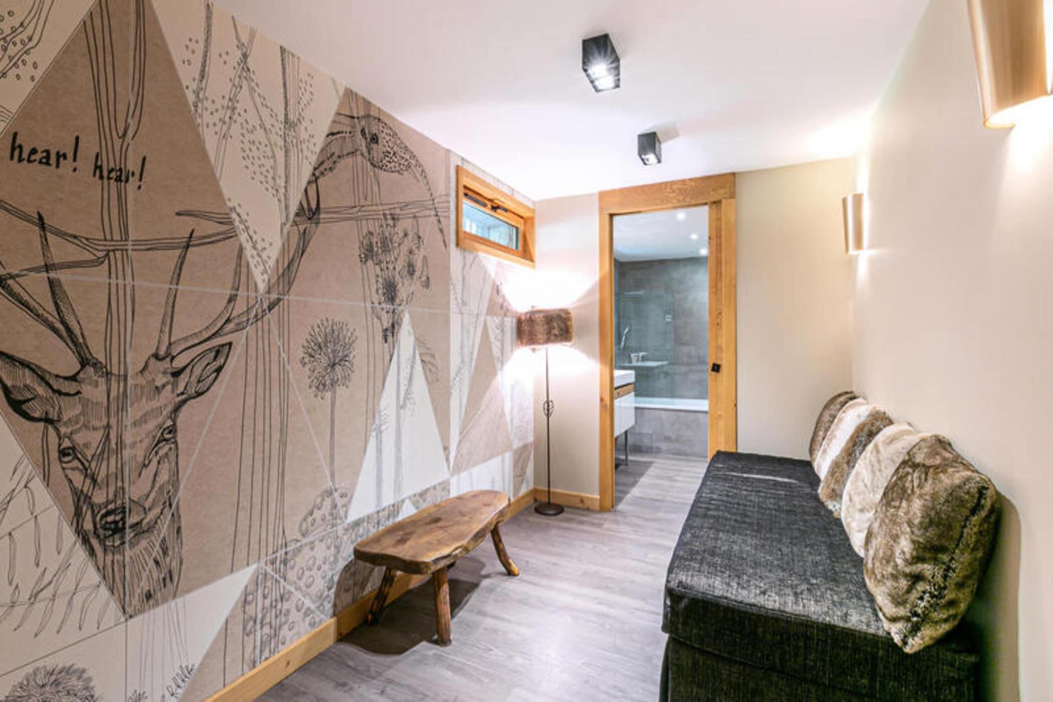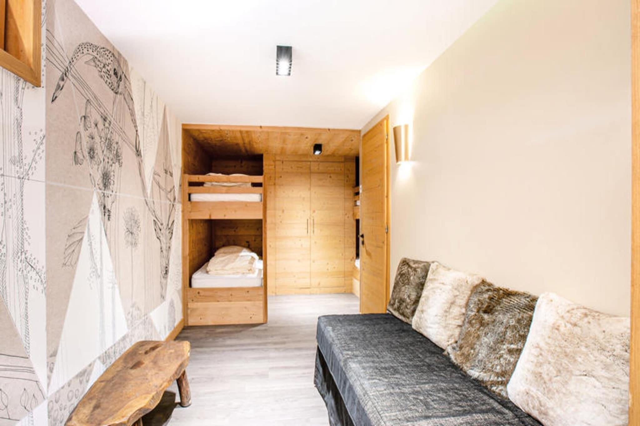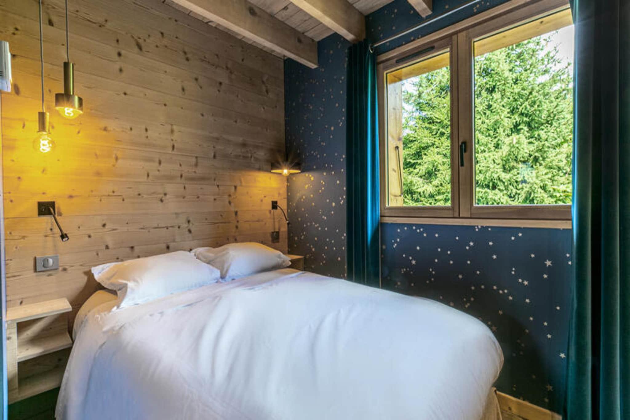 Denne fuldt renoverede luksushytte tilbyder et enestående ophold ved foden af ??Bossonnet-pisterne og skiundervisning, kun en kort afstand fra landsbyen. Ideel til familie- eller grupperejser, den kan rumme op til 10 gæster og kan prale af et rummeligt layout på 118 m² med en sydvestlig orientering. Gæsterne vil nyde avancerede tjenester, herunder opredte senge ved ankomsten, håndklæder og gratis Wi-Fi. Hytten er designet til ultimativ komfort og bekvemmelighed og byder på en stor garage, et skirum med en elektrisk skotørrer og et vaskerum med vaskemaskine og tørretumbler. I stueetagen byder hytten på en sovesal med to sæt køjesenge samt et badeværelse med badekar, håndvask og toilet. Første sal har et åbent køkken med moderne apparater såsom en dobbelt ovn, induktionskomfur, opvaskemaskine og Nespresso-maskine, sammen med et stort spisebord. Den rummelige stue er perfekt til afslapning, komplet med en sofa, pejs, TV med Netflix og et lydsystem. Fra stuen er der udgang til en sydvestlig terrasse med en fantastisk udsigt over bjergene. Hytten har tre soveværelser med dobbeltsenge, hver med sit eget en-suite badeværelse med italienske brusere, håndvaske og toilet. Soveværelse 1 har et østvendt vindue med udsigt over bjergene, mens soveværelse 2 og 3 har vestvendte vinduer med udsigt over pisterne.