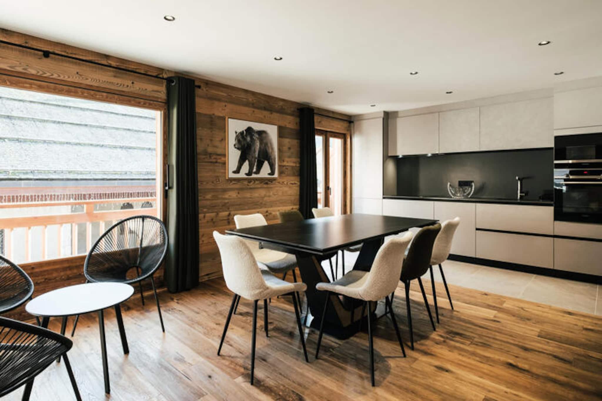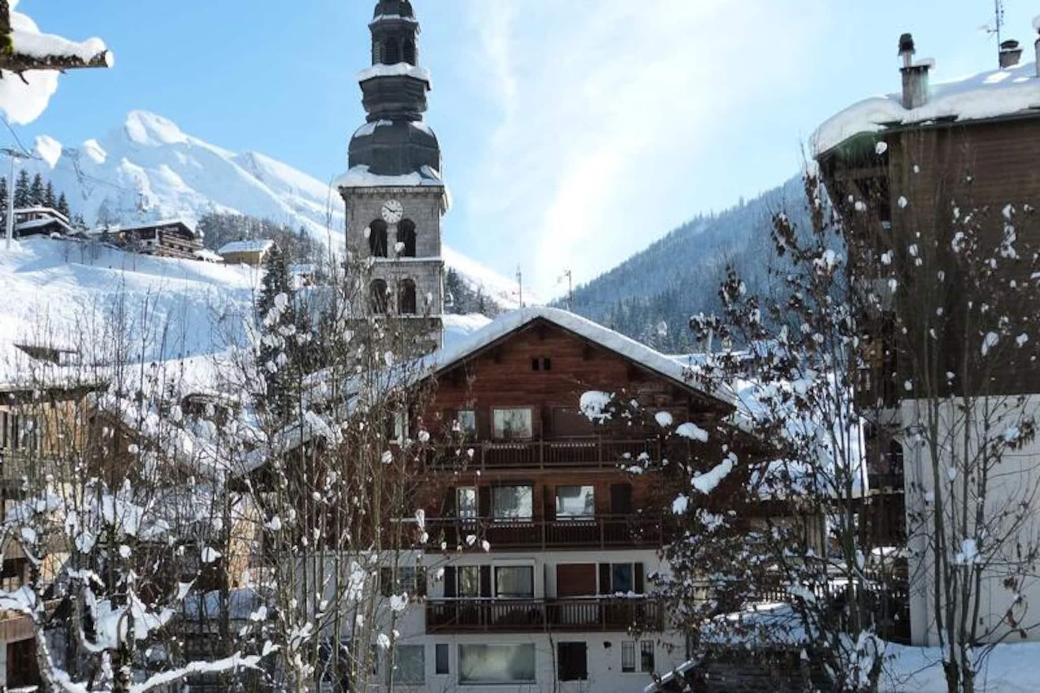 I det pulserende hjerte af den maleriske landsby tilbyder denne charmerende bolig en perfekt blanding af moderne komfort og alpin tradition. Kun få skridt fra den ikoniske kirke placerer den dig i centrum af alting, med Champ Giguet skiskoles afgangssted kun 130 meter væk og Beauregard-gondolerne inden for en kort gåtur på 150 meter. Uanset om du er her for vintersport eller sommerfritid, sikrer beliggenheden bekvemmelighed og fordybelse i den lokale charme, med et shuttle-stoppested kun 30 meter væk om vinteren og 400 meter om sommeren. \n\nIndenfor er den rummelige lejlighed på 91 m² omhyggeligt designet til at rumme op til syv gæster. Opholdsstuen, badet i naturligt lys, har et hyggeligt siddeområde, et fladskærms-tv og adgang til en sydvendt balkon med fortryllende udsigt over kirken og de omkringliggende bjerge. Det åbne køkken er fuldt udstyret med moderne apparater, herunder induktionskogeplade, ovn, mikrobølgeovn og Nespresso-maskine, hvilket gør det nemt at tilberede måltider efter en dag med eventyr. Tre komfortable soveværelser tilbyder afslappende tilflugtssteder, herunder en master suite med eget badeværelse og privat balkon med udsigt over fredfyldte grønne områder og en blid bæk. \n\nUd over boligen finder du et væld af aktiviteter og faciliteter. Skientusiaster vil sætte pris på nærheden til pisterne, mens sommergæster kan nyde det nærliggende fritidscenter, skøjtebane og naturskønne vandrestier. Restauranter og butikker er bekvemt placeret nedenfor bygningen, og den pulserende landsbyatmosfære sikrer, at der altid er noget at udforske. For dem, der søger en livlig aften, ligger en natklub lige ved siden af, hvilket bidrager til den dynamiske appel på dette sted. \n\nMed sin uovertrufne beliggenhed, rummelige interiør og gennemtænkte faciliteter som et skirum med støvle- og handsketørrer er denne bolig den ideelle base for at skabe uforglemmelige minder i de franske alper. Uanset om du er tiltrukket af spændingen ved pisterne eller roen i bjergene, tilbyder dette hjem et varmt og indbydende tilflugtssted for enhver sæson.