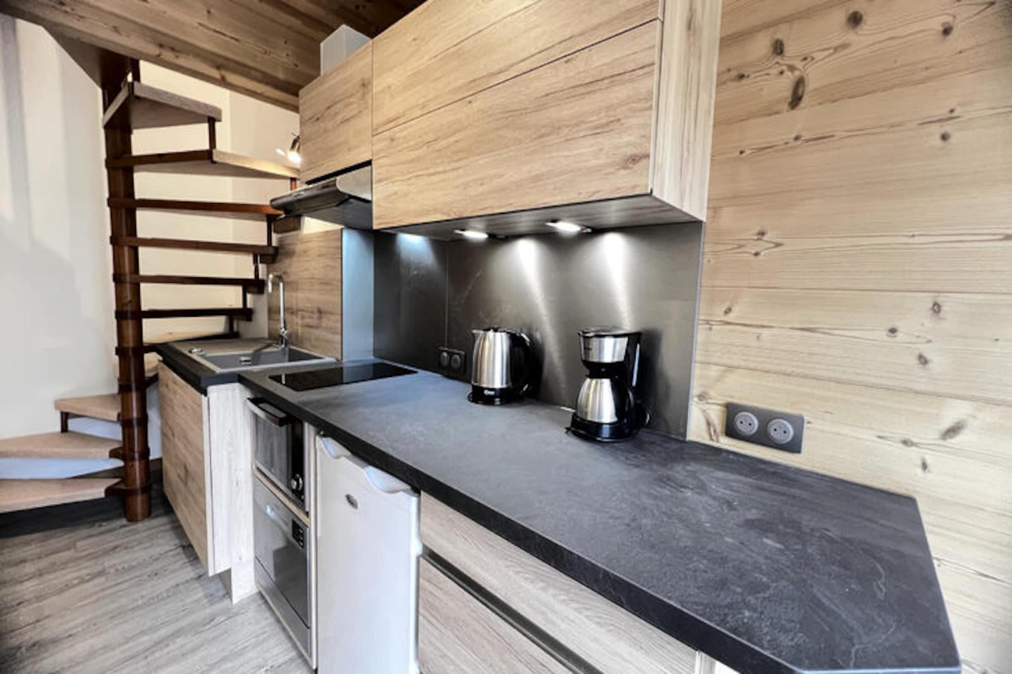 I det fredfyldte Riffroids-distrikt i La Clusaz tilbyder denne charmerende chaletlejlighed et hyggeligt alpint tilflugtssted med betagende udsigt og en uovertruffen beliggenhed. Kun 350 meter fra landsbyens centrum og Champ Giguet, og kun 250 meter fra skiløjperne, er det den perfekte base for både vintersportsentusiaster og dem, der søger en rolig bjergflugt. De fredelige omgivelser og det maleriske landskab skaber en virkelig afslappende atmosfære, ideel til at genoplade og nyde Alpernes skønhed. \n\nDenne omhyggeligt renoverede lejlighed, færdiggjort i 2025, har komfortabel plads til op til fire gæster. Stuen har en komfortabel sofa, lænestole og et fjernsyn, med franske døre, der fører til en østvendt balkon, der inviterer dig til at nyde morgensolen og den fantastiske udsigt over alperne. Det fuldt udstyrede køkken inkluderer et induktionskogeplade med 2 blus, multifunktionsovn, køleskab og opvaskemaskine, hvilket gør det nemt at tilberede lækre måltider efter en dag med eventyr. Ovenpå har de hyggelige soveværelser to enkeltsenge, der kan sættes sammen til en dobbeltseng, samt et ekstra åbent loggia-område med to enkeltsenge. Badeværelset på loftet med det charmerende ovenlysvindue bidrager til lejlighedens unikke karakter.\n\nMed sin nærhed til pisterne og landsbyen har du alt, hvad du behøver, inden for gåafstand. Uanset om du står på ski om vinteren eller udforsker de frodige bjergstier om sommeren, tilbyder La Clusaz et væld af aktiviteter, der passer til enhver sæson. Lejligheden inkluderer også praktiske faciliteter såsom et skirum, fælles Wi-Fi og parkering på stedet. For ekstra bekvemmelighed kan gæsterne drage fordel af tjenester som leje af linned og slutrengøring.\n\nDette dejlige alpine tilflugtssted kombinerer komfort, charme og en uovertruffen beliggenhed, hvilket gør det til det perfekte valg til din næste bjergferie. Uanset om du er her for at grave dig gennem frisk puddersne eller blot slappe af og nyde de fantastiske omgivelser, lover denne chaletlejlighed et uforglemmeligt ophold.