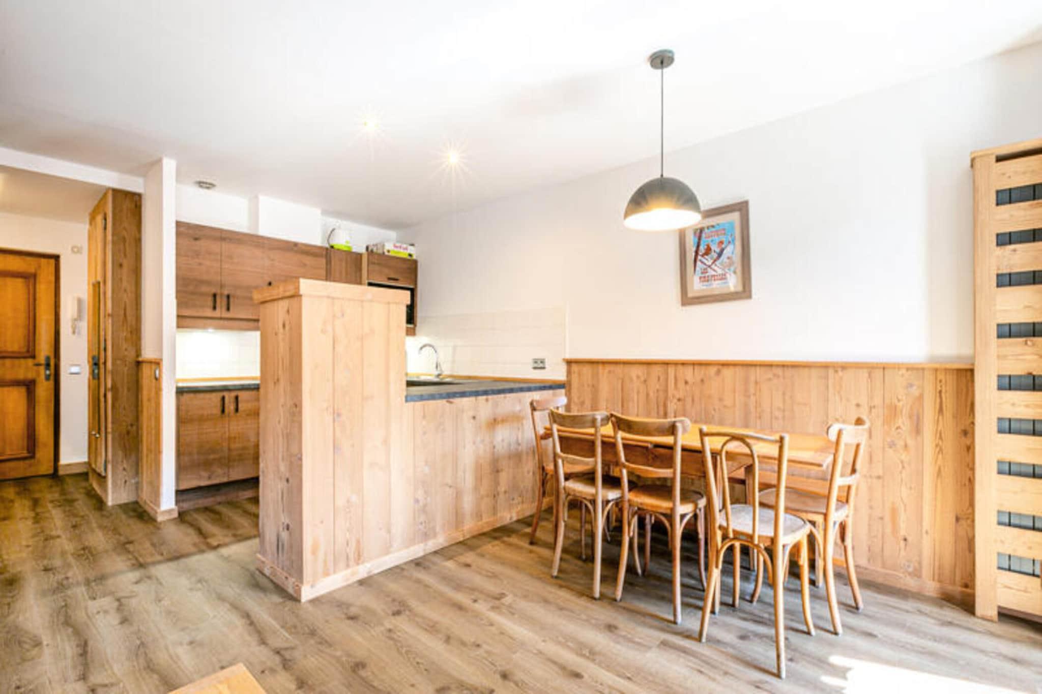 En dejlig ejendom, der tilbyder både komfort og bekvemmelighed, denne tre-værelses ferielejlighed kan rumme op til otte gæster på tværs af et gennemtænkt designet layout. De vigtigste sovepladser inkluderer en dobbeltseng, to køjesenge, to enkeltsenge og en to-personers sovesofa i stuen. Opholdsstuen er lys og indbydende med et fjernsyn og en sydvendt balkon med naturskøn udsigt. Gæsterne kan nyde gratis Wi-Fi og adgang til et fælles vaskerum udstyret med vaskemaskine, tørretumbler og strygefaciliteter. Til lejligheden hører også et skiskab og en parkeringsplads. Mens kæledyr er tilladt med forudgående godkendelse og et ekstra gebyr, er store dyr ikke tilladt. Sengelinned er inkluderet i vintersæsonen, og yderligere sengelinned og håndklæder kan lejes. Ideelt beliggende i hjertet af landsbyen, er boligen bekvemt tæt på Bossonnet-skiløjperne, hvor ESF-mødestedet er placeret, samt en række butikker og restauranter. Gæsterne vil sætte pris på tilgængeligheden af ??nærliggende transportmuligheder, med SNCF-togstationen kun 34 kilometer væk og en busstation inden for 900 meter. Denne centrale beliggenhed giver nem adgang til udendørs eventyr og lokale attraktioner, hvilket gør det til en perfekt base for både vinter- og sommerferier. Lejligheden er udstyret med praktiske faciliteter og har et åbent køkken udstyret med induktionskomfur, ovn, mikroovn, opvaskemaskine og rummeligt køleskab. De moderne badeværelser har badekar, bruser og håndvaske med separat toilet for ekstra bekvemmelighed. Centralvarme sikrer et hyggeligt ophold i de kolde måneder. Uanset om du tilbereder måltider i det velassorterede køkken eller slapper af efter en dag på pisterne, giver denne lejlighed alt det nødvendige for en behagelig og behagelig ferie.