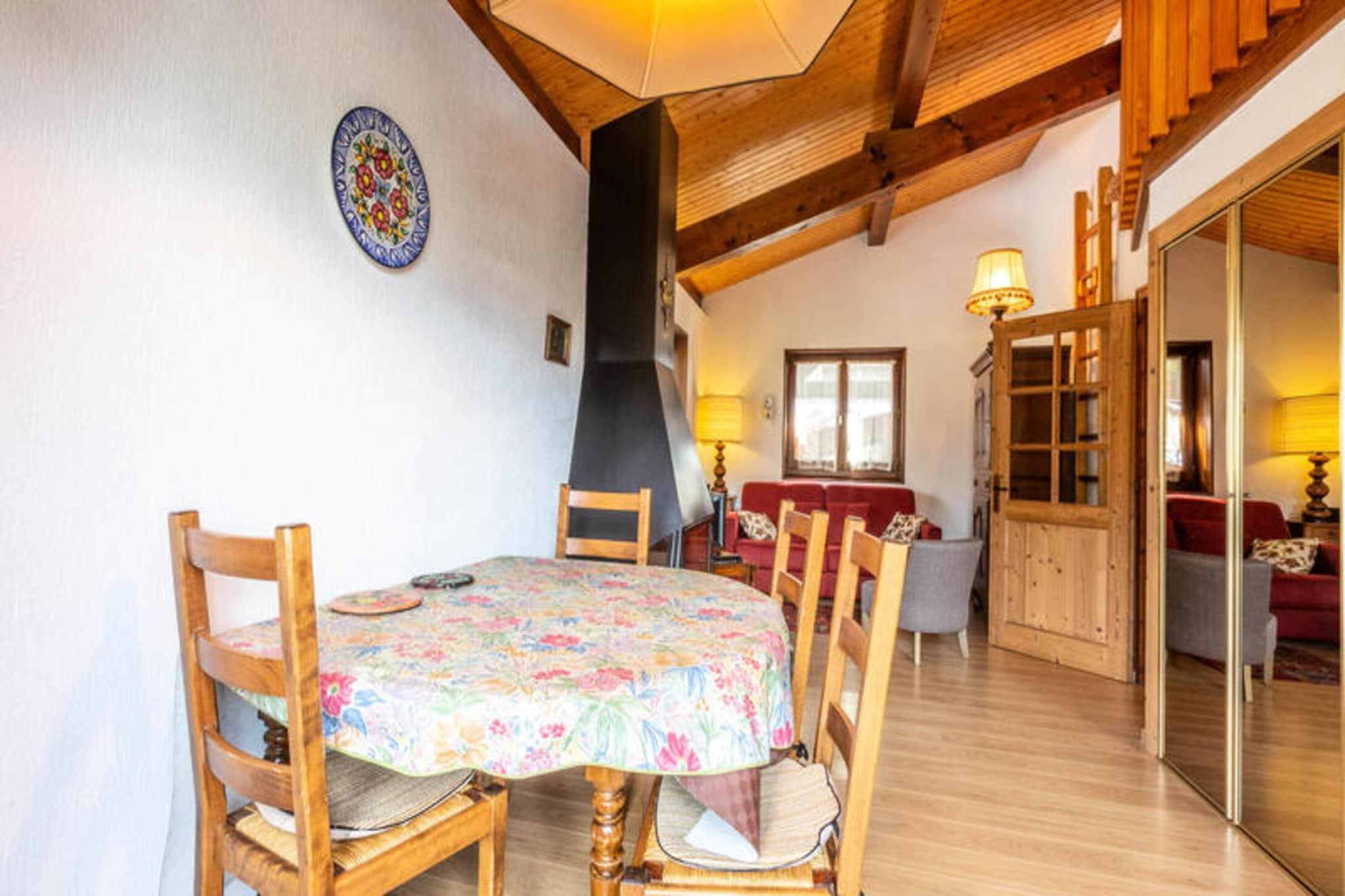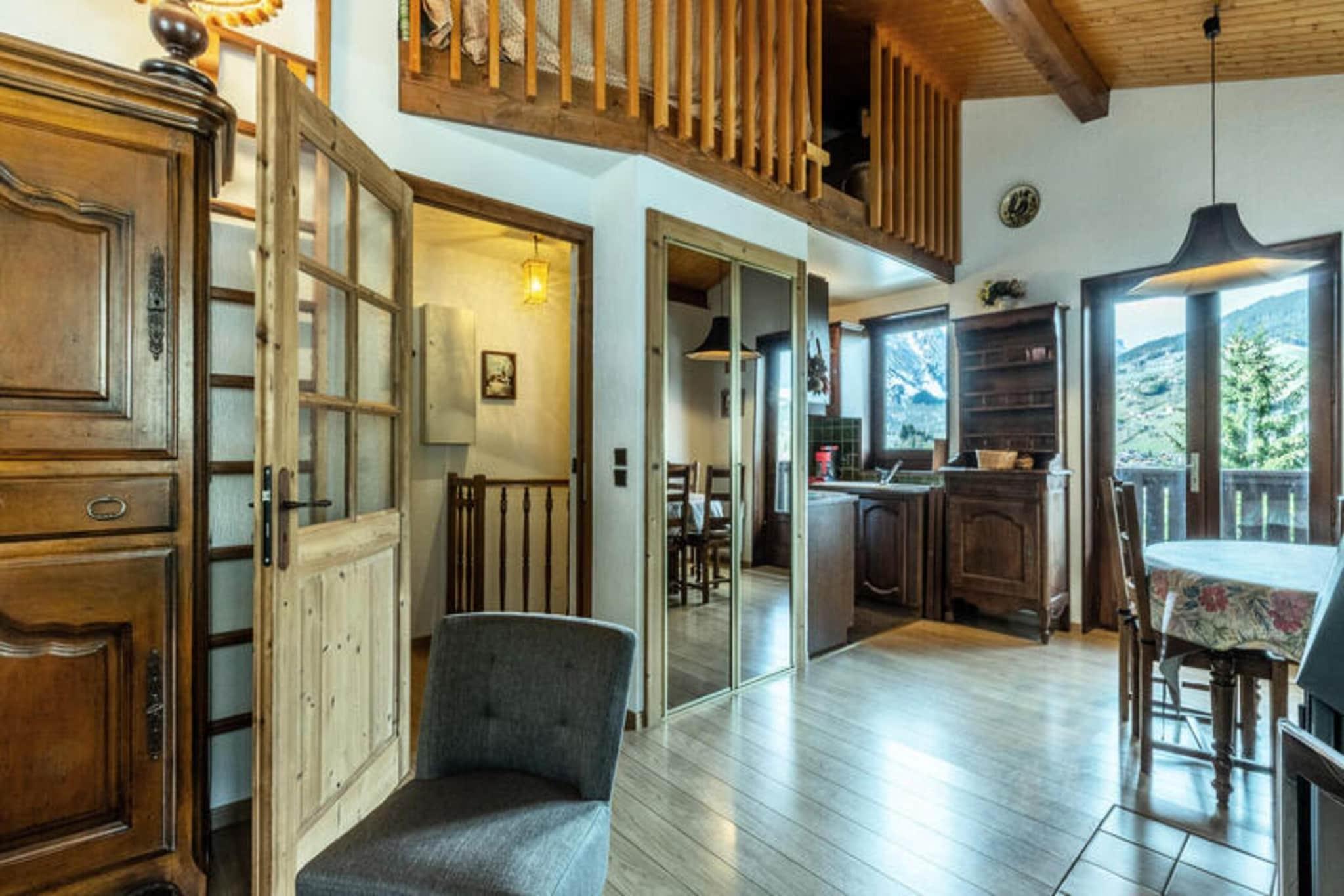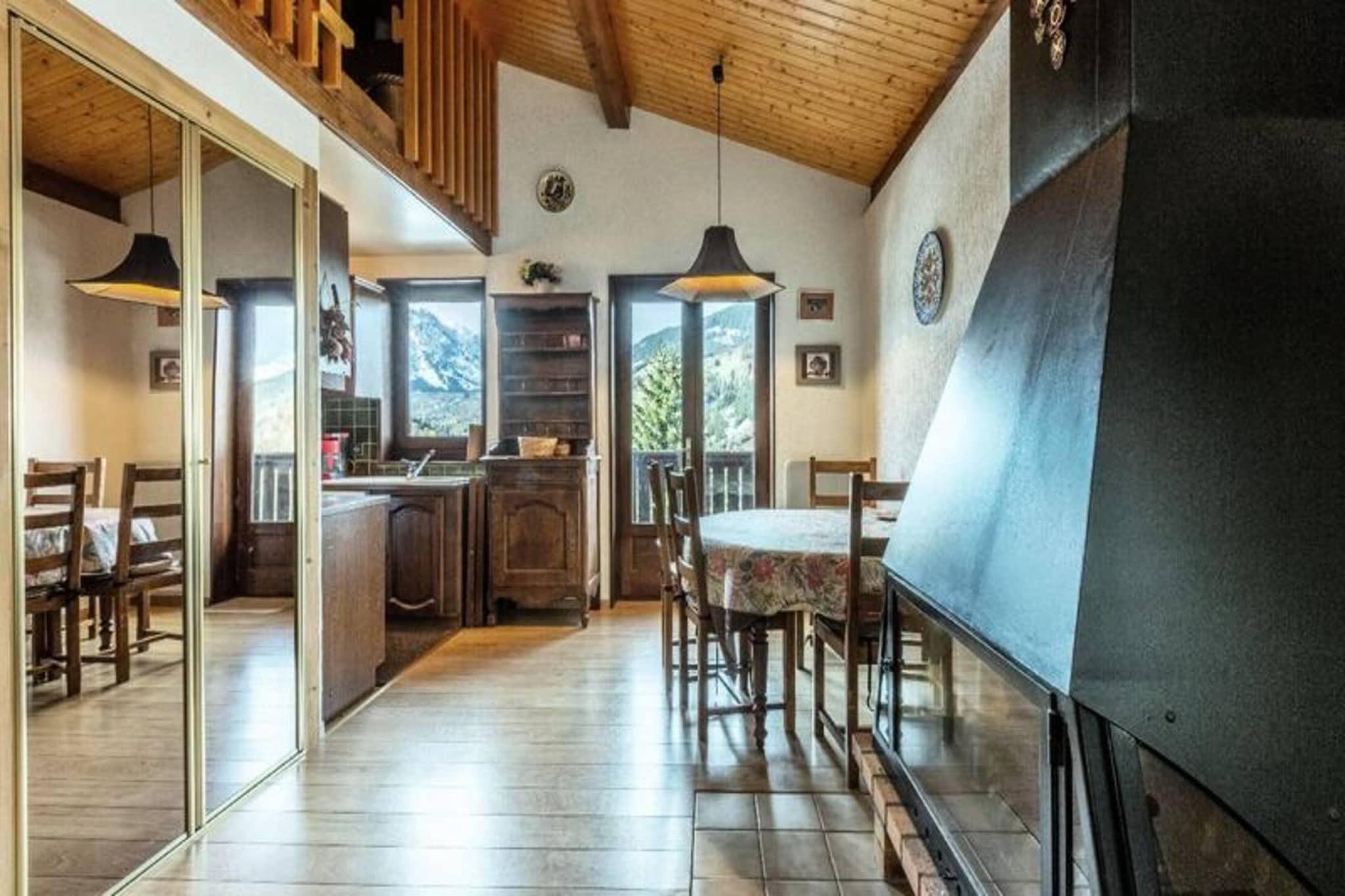 Denne charmerende 3-værelses lejlighed, beliggende i Riondes/Riffroids-distriktet, tilbyder et fredeligt tilflugtssted med en fantastisk panoramaudsigt over Aravis-bjergkæden. Beliggende på 1. sal i en lille bolig, 1,2 km fra landsbyen, giver det nem adgang til Beauregard-skiløjpen, kun 30 meter væk (hvis sneforholdene tillader det), med et skibusstoppested i nærheden. Lejligheden har en rummelig stue med sovesofa, tv og spiseplads, der fører ud til en stor balkon-terrasse med udsigt over landsbyen og bjergene. Køkkenet er veludstyret med opvaskemaskine, køleskab, elektriske kogeplader og mikroovn. Denne ejendom ligger 33 km fra SNCF-togstationen og 1,35 km fra busstationen og tilbyder nem adgang til lokal transport. Gæsterne kan også nyde vandreture og vintersport i den nærliggende Aravis-bjergkæde, et populært sted for skiløb, snowboarding og mountainbiking Den nederste etage, der er tilgængelig via en stejl trappe, byder på to hyggelige soveværelser: et lille værelse med køjesenge og et større værelse med en dobbeltseng, begge med masser af opbevaringsplads. Badeværelset har badekar, håndvask og toilet. For nemheds skyld er der privat udendørs parkering og garage. Selvom kæledyr ikke er tilladt, kan gæster leje lagner og linned..