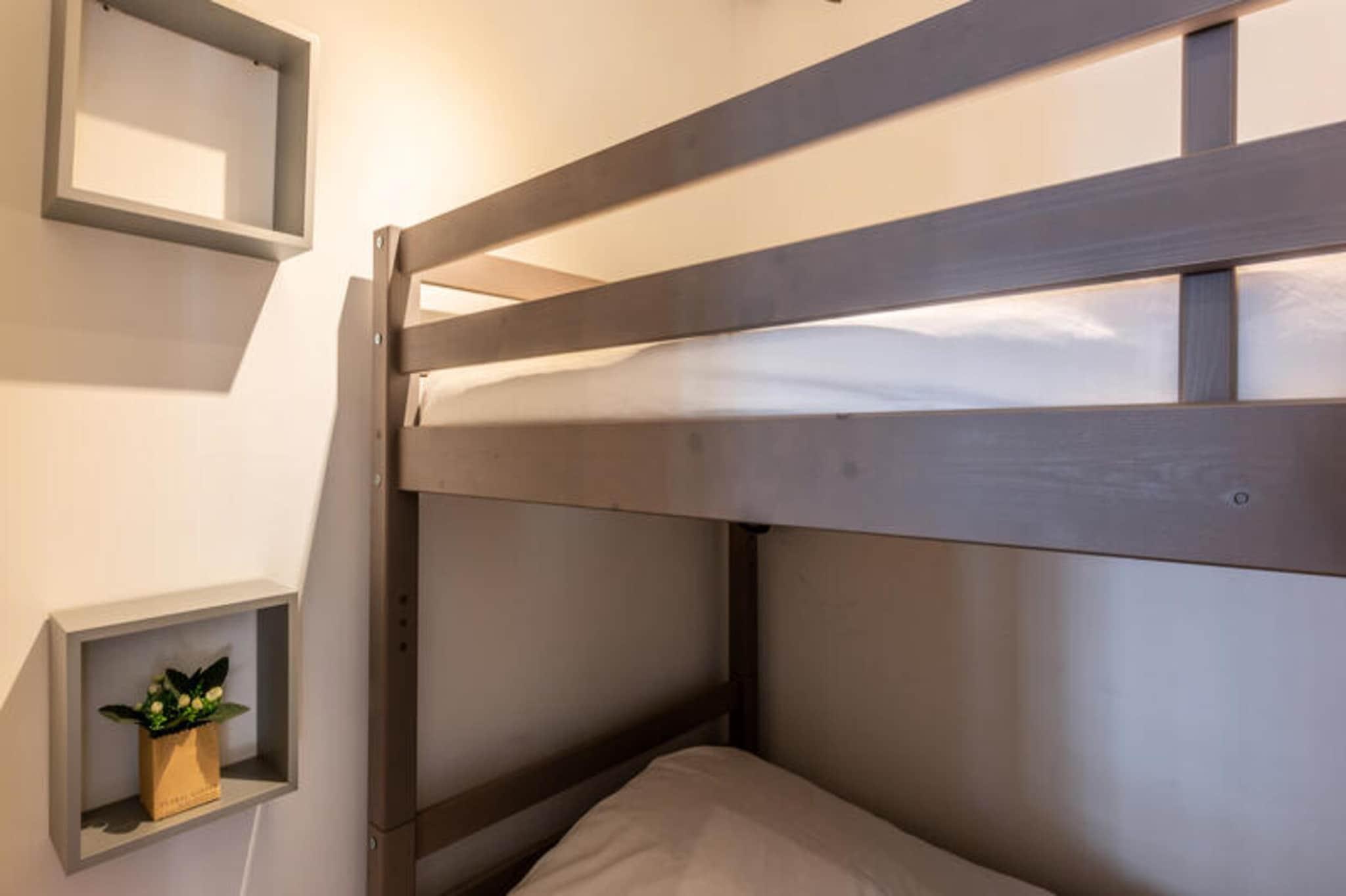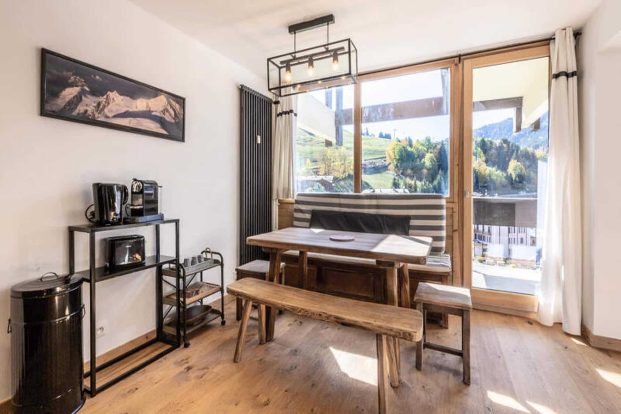 Ejendommen tilbyder sammen med en funktionel indretning et hyggeligt rum for op til 6 gæster. Denne lejlighed på 53 m² har to separate værelser, et bjerghjørne med dobbeltseng og et soveværelse med to køjesenge og en ekstra enkeltseng. I stuen er der en udtrækssovesofa og et fladskærms-tv, der byder på masser af siddepladser til afslapning. Gæsterne kan også nyde en sydvendt balkon med udsigt over det omkringliggende område. Mens kæledyr ikke er tilladt, tilbyder lejligheden dynebetræk, lagner og pudebetræk. Yderligere tjenester såsom rengøring og udlejning er tilgængelige efter anmodning, selvom kæledyr er forbudt. Bekvemt beliggende i Upper Village, er boligen kun 300 meter fra Telemix stoleliften og skileleskopet i Bossonnet, hvilket gør det til et ideelt valg for skientusiaster. Lejligheden ligger også tæt på en legeplads og en sportsplads, som giver sæsonbestemte rekreative muligheder. Et shuttlestop, som ligger kun 100 meter væk om vinteren og 140 meter om sommeren, giver nem adgang til andre dele af resortet. Nærliggende butikker samt transportmuligheder som La Clusaz busstation og Annecy SNCF togstation forbedrer lejlighedens tilgængelighed for besøgende. Tekøkkenet er udstyret med væsentlige apparater, herunder køleskab, glaskeramisk kogeplade, ovn, mikroovn og opvaskemaskine, hvilket sikrer, at gæsterne nemt kan tilberede deres måltider. En Nespresso kaffemaskine tilføjer et ekstra strejf af komfort. Lejligheden har desuden vaskemaskine i brusebadet, samt dekorativ pejs i stuen for at give en hyggelig atmosfære. Et skiskab er tilgængeligt på stedet for gæsternes bekvemmelighed, og centralvarmesystemet sikrer varme i de koldere måneder.