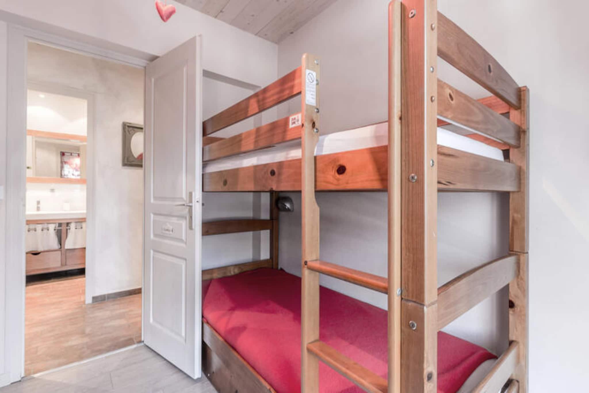 Denne charmerende 3-værelses lejlighed tilbyder både komfort og bekvemmelighed for op til 5 rejsende. Beliggende kun 350 meter fra Bossonnet Telemix, stoleliften og skiløjperne, er det ideelt for skientusiaster. Boligen er også tæt på butikker og et shuttlestop, hvilket gør adgangen til alle resortets faciliteter let. Nærliggende attraktioner omfatter det pulserende landsbycenter, vinbar og malerisk udsigt over bjergene. Boligen ligger også kun 800 meter fra busstationen for nem adgang til andre nærliggende destinationer. Den 67 m² store lejlighed er beliggende i stueetagen med en vestvendt altan, der giver en dejlig udsigt over det omkringliggende område. Indvendigt har lejligheden et veludstyret amerikansk køkken med moderne apparater, herunder induktionskomfur, ovn, mikroovn, opvaskemaskine og en Nespresso kaffemaskine. Den rummelige stue har fladskærms-tv og dvd-afspiller. Der er to soveværelser: et med dobbeltseng og et andet med enkeltseng, udtræksseng og køjesenge (øverste seng er ikke egnet til børn under 6 år). Lejligheden byder også på et badeværelse med dobbelt håndvask, bruser, vaskemaskine og separat toilet. Et skiskab og opvarmet skiopbevaring er til rådighed for din bekvemmelighed.