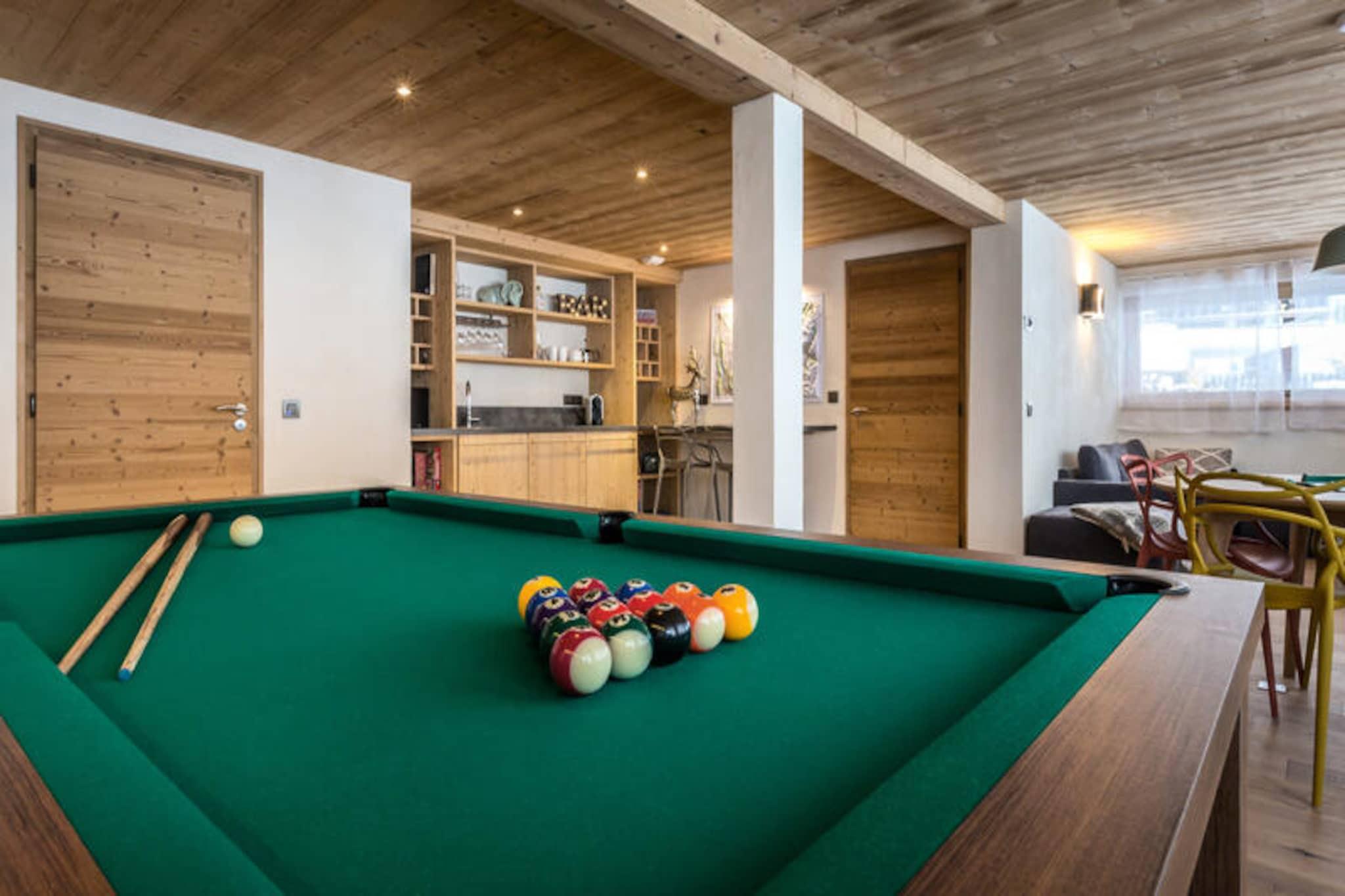Ejendommen rummer sammen med dens rummelige layout og moderne faciliteter op til 13 gæster fordelt på 221 m² boligareal. Det har seks soveværelser, herunder et master bedroom med en dobbeltseng og tilstødende brusebadeværelse, to ekstra dobbeltværelser og et blandet soveværelse med flere enkeltsenge. Hytten indeholder også en hyggelig stue med ophængt komfur, en sofa til afslapning og en stor spiseplads, perfekt til gruppesammenkomster. Gæsterne kan nyde en smuk udsigt over det omkringliggende område fra forskellige værelser og balkoner, herunder en vestvendt altan ud for stuen. Selvom kæledyr ikke er tilladt, tilbyder ejendommen gratis trådløs internetadgang, og tjenester såsom slutrengøring og opredte senge ved ankomsten er inkluderet. Et spil- og sportsområde, herunder et bordtennisbord, dart og en yogamåtte, sikrer, at der altid er noget at lave på stedet. Ideelt beliggende i Lower Village, er hytten kun 250 meter fra det nærmeste shuttlestop og tilbyder nem adgang til vigtige attraktioner. Skiundervisningen og skøjtebanens afgangssteder ligger lige ved siden af, mens svævebanerne Beauregard og Ice Rink også er inden for gåafstand. Om sommeren tilbyder det nærliggende fritidscenter en række aktiviteter for besøgende. Ejendommen har gode forbindelser, med La Clusaz busstation kun 250 meter væk og Annecy SNCF togstationen ligger 32 km væk. Med sin centrale beliggenhed kan gæsterne nemt udforske resortets skråninger eller nyde det lokale landsbyliv. Hyttens køkken er fuldt udstyret med moderne apparater, herunder induktionskogeplader, to ovne, en mikrobølgeovn, en opvaskemaskine og et stort køleskab. Der er også en Nespresso-maskine til kaffeelskere og masser af opbevaringsplads. Det åbne køkken flyder ind i afslapningsområdet, som omfatter en bar, et tv og et billardbord. For ekstra bekvemmelighed er der et skirum med en støvletørrer, en vaskemaskine og en tørretumbler. Derudover kan gæsterne nyde varmen fra elektrisk opvarmning i hele hytten. Ejendommens design sikrer et højt niveau af komfort og funktionalitet for alle besøgende.