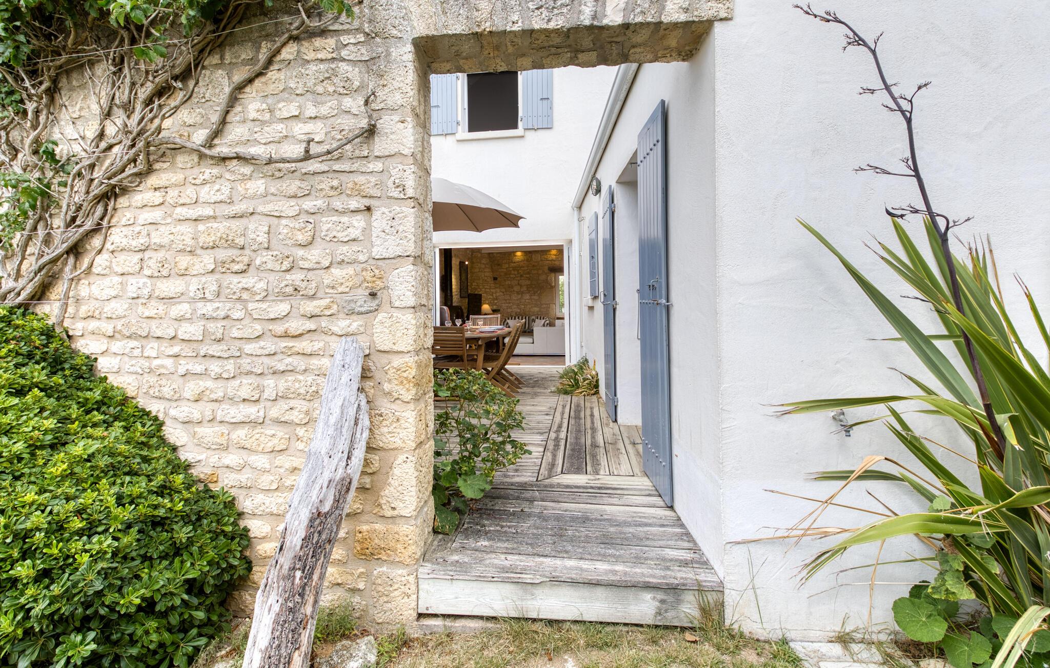 Det charmerende udendørsområde byder på hyggelige steder at snakke over et glas vin og en åben terrasse, hvor I kan nyde morgenmad og stemningsfulde grillmiddage.