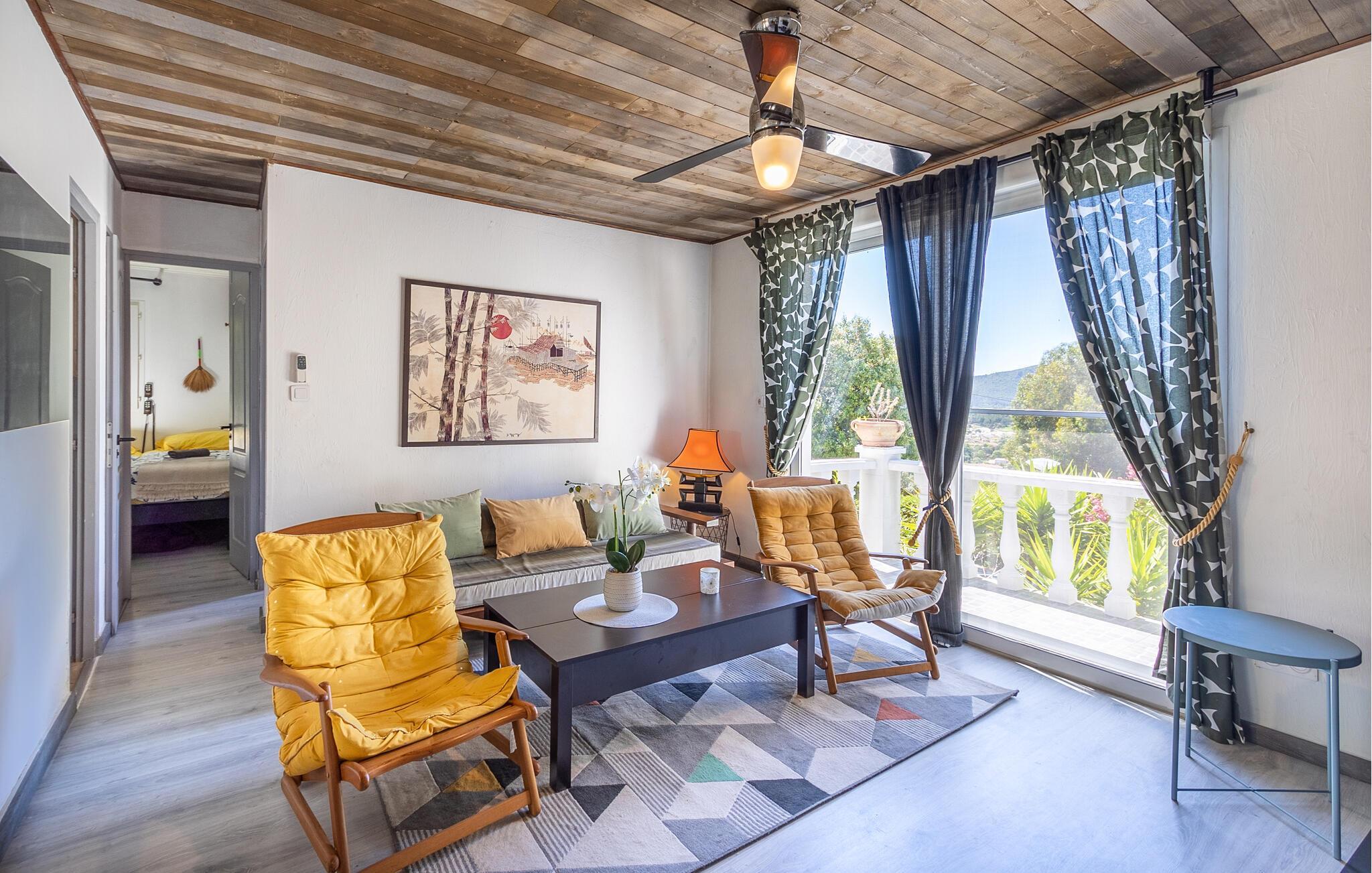 Glæd jer til dette gule feriehus lige uden for byen La Crau, hvor I virkelig kan lade batterierne op! Huset er komfortabelt indrettet og har alt, hvad I skal bruge til en afslappende ferie. Nyd et glas vin og snak om dagens bedste oplevelser, mens I sammen laver lækker mad i det store køkken til en dejlig aften på den åbne terrasse. Her kan I også solbade om dagen og sætte jer under parasollen med kolde drinks og et spil Uno. I den fælles pool kan I plaske, bade og måske dykke med børnene. Trænger I til lidt skygge, skal I bare lægge jer under halmparasollen.