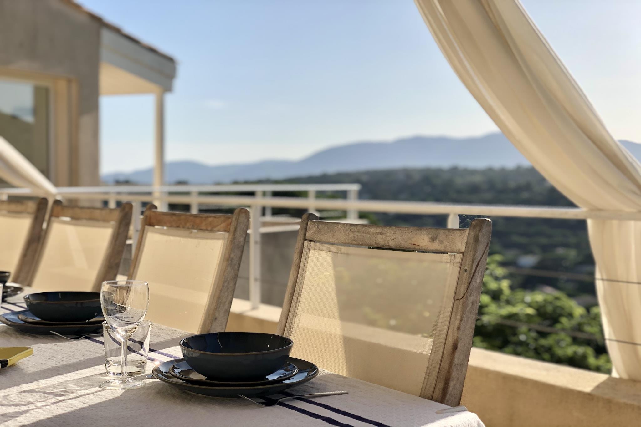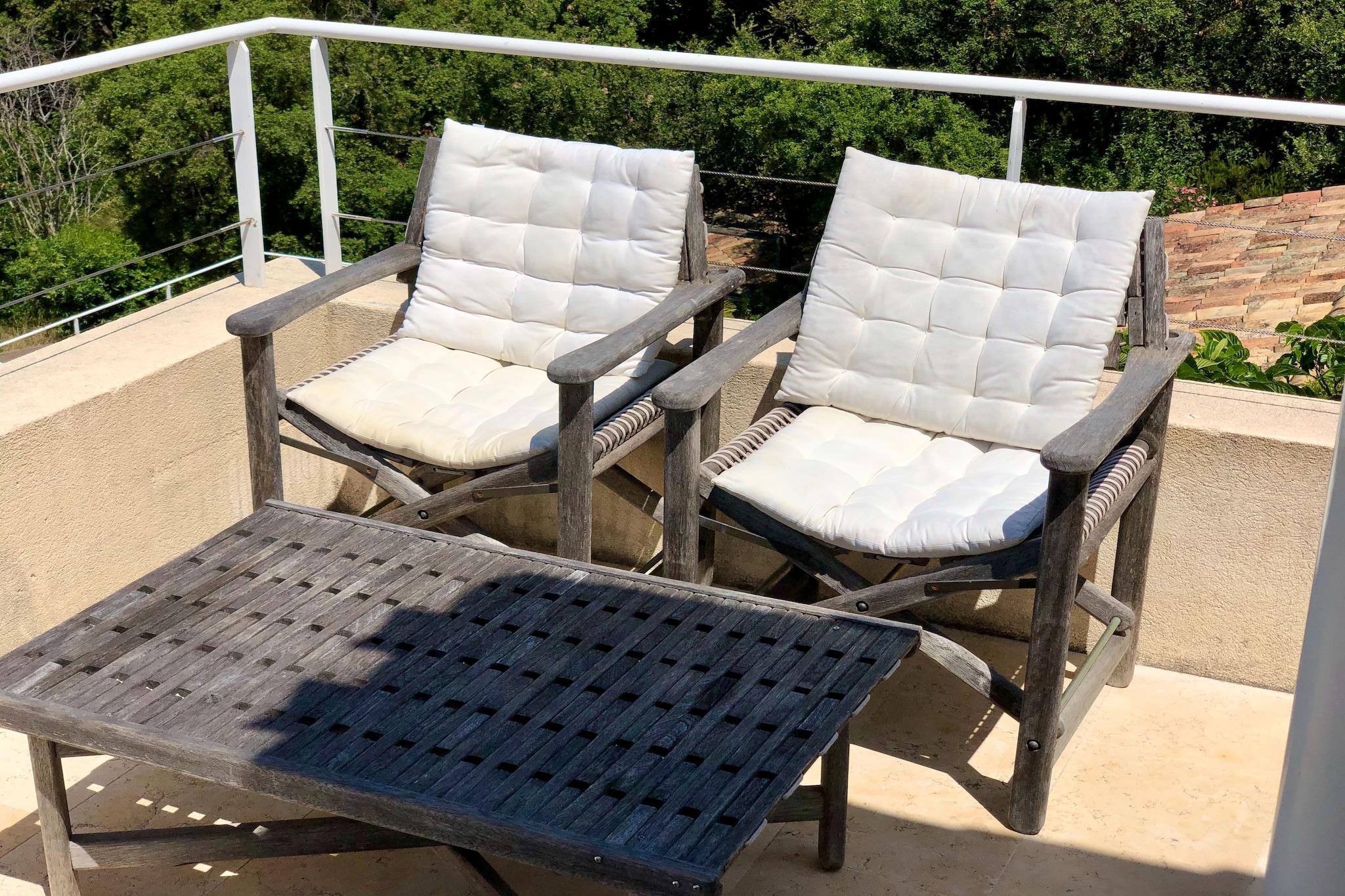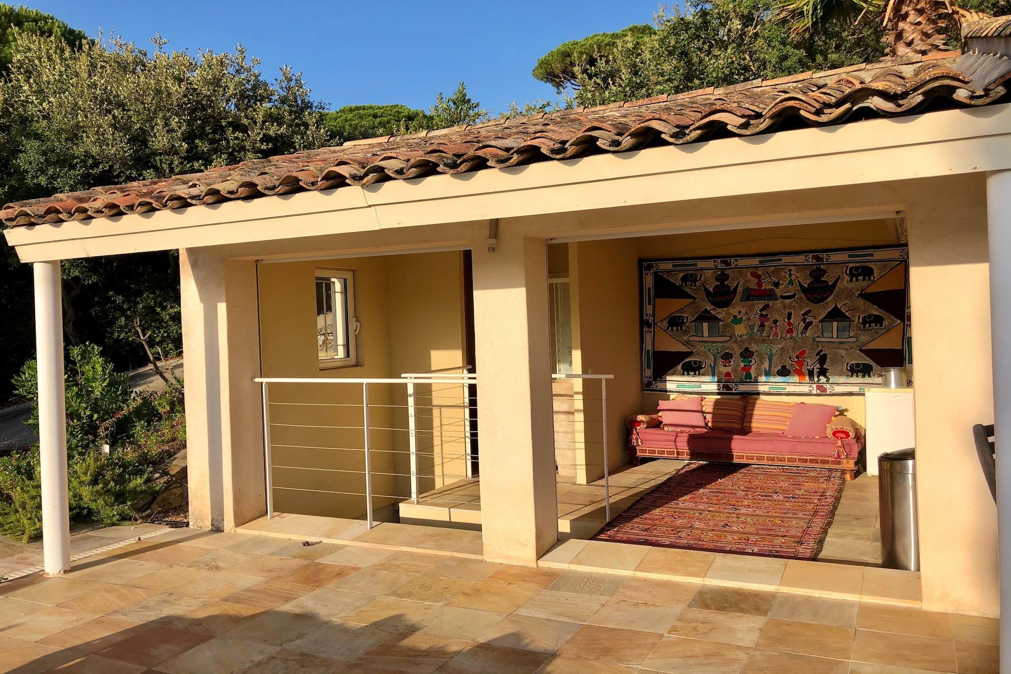 Beliggende i hjertet af den franske riviera er denne luksuriøse 4-værelses villa i La Croix-Valmer perfekt til familier eller grupper på op til 10 gæster. Villaen er omgivet af havudsigt og fyrreskove og har en privat swimmingpool, en indhegnet have og flere terrasser på tværs af forskellige niveauer, der tilbyder privatliv og betagende panoramaudsigt over Middelhavet. Kun 5 km væk finder du sandstrandene i Gigaro og Pampelonne, perfekt til solbadning eller svømning. For en smag af det lokale liv kan du besøge det berømte søndagsmarked i La Croix-Valmer eller snuppe friske kager på det nærliggende bageri. Leder du efter noget glamour? En kort køretur tager dig til ikoniske Saint-Tropez, hvor jetset-livsstilen venter. Indvendigt er villaen lækker og moderne med gulv til loft glas, der fylder boligen med naturligt lys. Kunstværker i hele huset - indendørs og udendørs - tilføjer elegance og karakter. Uanset om du slapper af i en hængekøje på tagterrassen, nyder et måltid udendørs eller ser børnene plaske i poolen, tilbyder dette hjem den perfekte blanding af stil, komfort og afslapning til din Côte d'Azur-ferie.