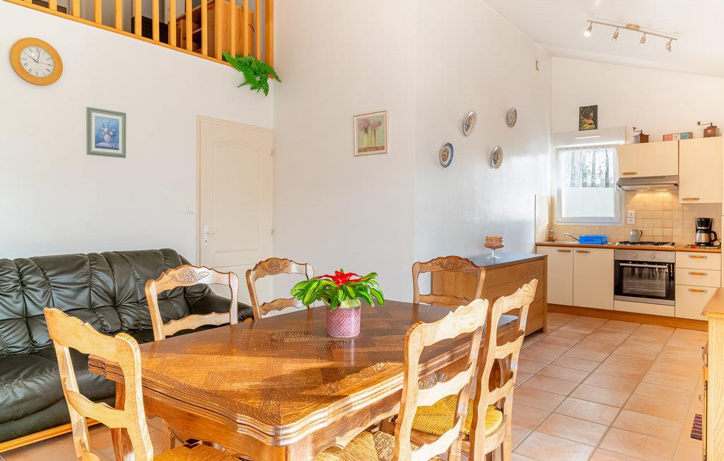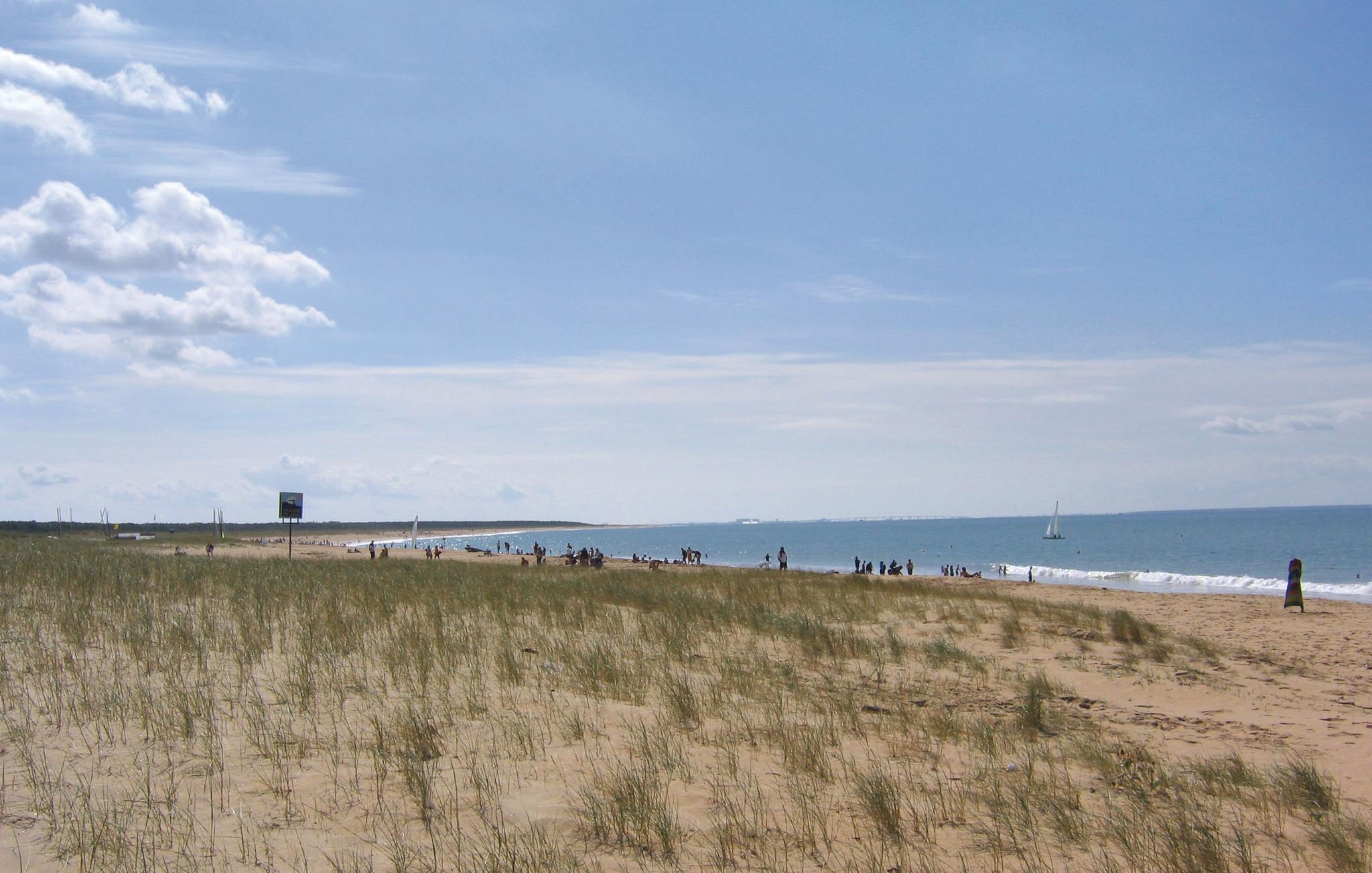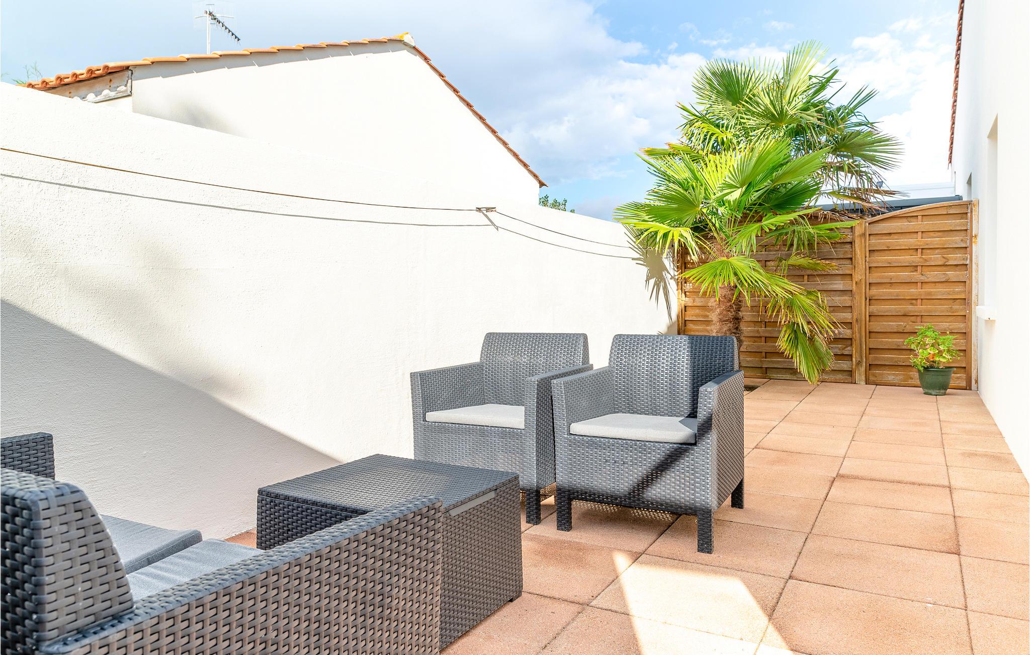 Kun 300 m fra den vidunderlige, fine sandstrand af La Faute-sur-Mer venter denne moderne halvdel af et dobbelthus på jer for ende af en rolig blindgyde, langt afsides fra masserne. I stueetagen ligger køkkenet med spisehjørne samt to dobbeltsoveværelser. Ovenpå ligger endnu et dobbeltsoveværelse og en hems, der er indrettet som stue. Udenfor har I en komplet aflukket gård med til dels overdækket terrasse til rådighed. På koldere årstider kan huset opvarmes. Efter en kort gåtur er I midt i landsbyen La Faute-sur-Mer, og i den nært beliggende landsby Aiguillon kan I finde en del services som et bondemarked og et stort supermarked. For afveksling sørger en tennisbane, mange cykelstier og en sø med muligheder for vandsport. Over vejen, 5 km væk, venter Tranche-sur-Mer på jeres besøg. Se jer omkring i Les Sables-d’Olonne, det mest populære sted i Vendée, hvis herlige promenade lægger op til gåture ved havet. Længere mod syd ligger La Rochelle, en historierig havneby. Lige i nærheden ligger også FVE032.