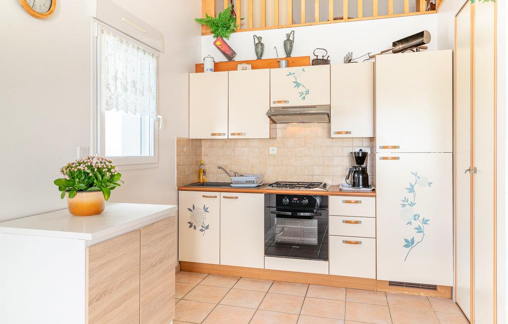 Kun 300 m fra den vidunderlige, fine sandstrand af La Faute-sur-Mer venter denne moderne halvdel af et dobbelthus på jer for ende af en rolig blindgyde, langt afsides fra masserne. I stueetagen ligger køkkenet med spisehjørne samt to dobbeltsoveværelser. Ovenpå ligger endnu et dobbeltsoveværelse og en hems, der er indrettet som stue. Udenfor har I en komplet aflukket gård med til dels overdækket terrasse til rådighed. På koldere årstider kan huset opvarmes. Efter en kort gåtur er I midt i landsbyen La Faute-sur-Mer, og i den nært beliggende landsby Aiguillon kan I finde en del services som et bondemarked og et stort supermarked. For afveksling sørger en tennisbane, mange cykelstier og en sø med muligheder for vandsport. Over vejen, 5 km væk, venter Tranche-sur-Mer på jeres besøg. Se jer omkring i Les Sables-d’Olonne, det mest populære sted i Vendée, hvis herlige promenade lægger op til gåture ved havet. Længere mod syd ligger La Rochelle, en historierig havneby. Lige i nærheden ligger også FVE022.