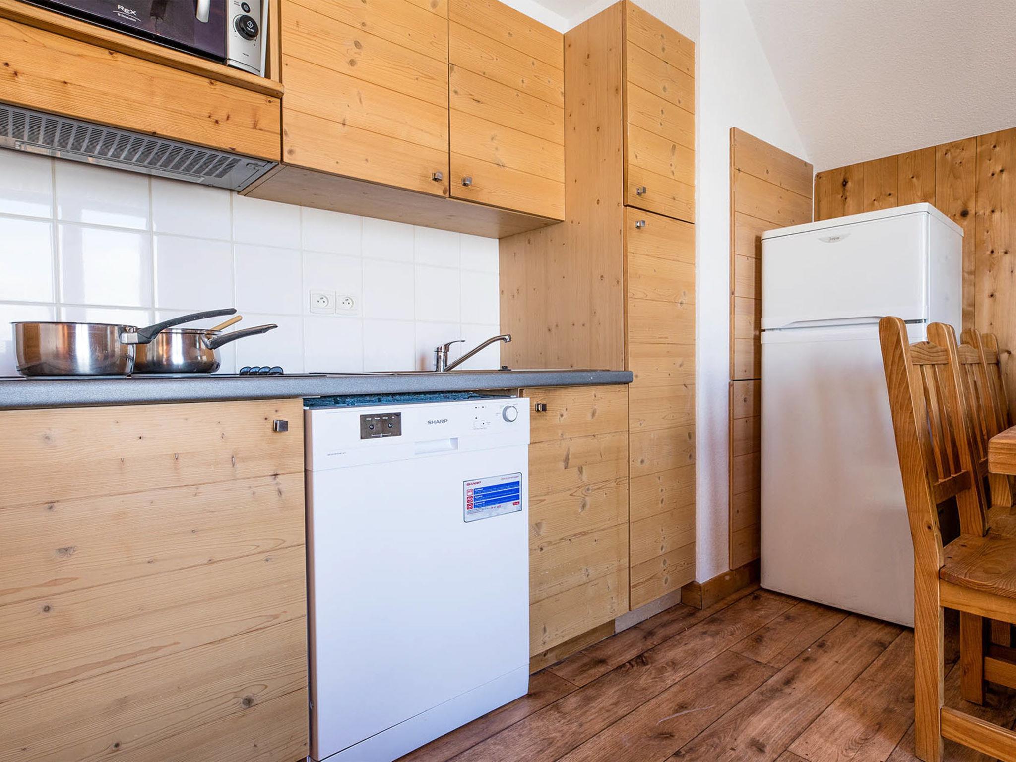 "Les Chalets du Berger", 3-room apartment 56 m2 on 2 levels. Beautiful and cosy furnishings: living/sleeping room with 1 pull-out bed (2 pers.), dining table and TV. Open kitchen (2 hot plates, dishwasher, toaster, kettle, microwave, electric coffee machine). Shower, sep. WC. Upper floor: 1 room with 1 french bed. 1 room with 2 beds. Alcove with 1 x 2 bunk beds. Bath/WC or shower/WC. Balcony or terrace. Facilities: hair dryer. Internet (WiFi, free). Please note: non-smokers only. Maximum 2 pets/ dogs allowed. Instead of an enclosed bedroom, some sleeping areas are located in an open-plan area (gallery, alcove, etc.).