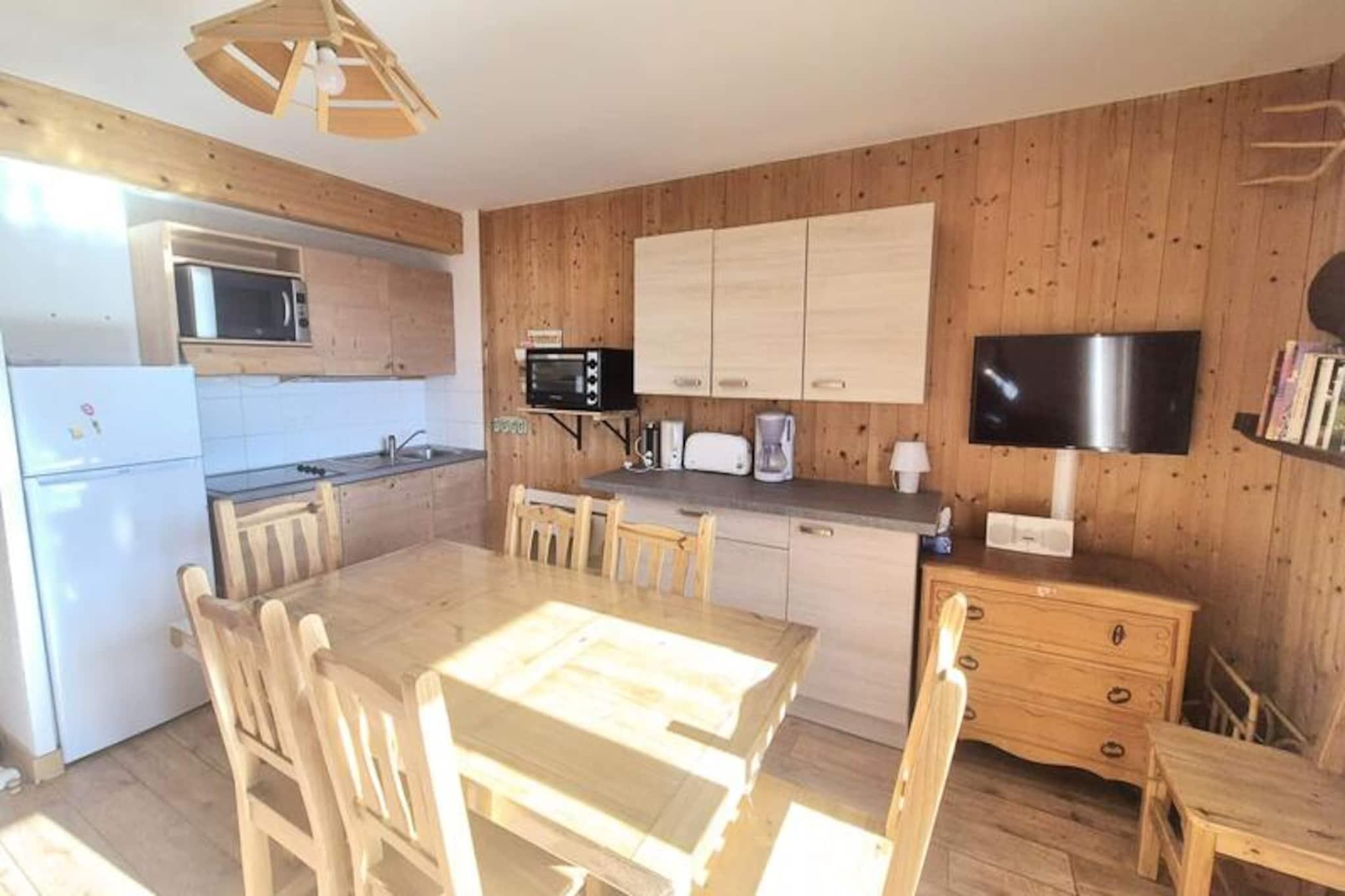 Omgivet af Bauges-massivets fantastiske skønhed inviterer denne charmerende bjerghytte i La Féclaz dig til at opleve den perfekte alpine ferie. Med sin varme atmosfære og gennemtænkte design er dette hyggelige tilflugtssted ideelt for familier eller grupper på op til seks personer og tilbyder en harmonisk blanding af komfort og bekvemmelighed midt i betagende naturlandskaber. Uanset om du søger eventyr eller afslapning, er denne ejendom din port til uforglemmelige øjeblikke i hjertet af de franske alper.\n\nHytten strækker sig over to etager og har en lys og rummelig stue udstyret med et tv til hyggelige aftener. Det fuldt udstyrede køkken inkluderer moderne apparater såsom køleskab, fryser, mikrobølgeovn, miniovn, opvaskemaskine og endda specialprodukter som en fonduemaskine og raclettegrill til autentiske Savoyard-madoplevelser. Tre indbydende soveværelser sikrer afslappende nætter: to med dobbeltsenge, et med malerisk udsigt over bjergene og et tredje med køjesenge, der er perfekte til børn. Yderligere faciliteter inkluderer en balkon med panoramaudsigt, et brusebad, et badeværelse med badekar og separate toiletter. Der er lagner og håndklæder, og sengene er redt ved ankomst for din bekvemmelighed.\n\nLa Féclaz tilbyder direkte adgang til alpin- og nordiske skiløjper, hvilket gør det til et paradis for vintersportsentusiaster. Om sommeren kan du udforske det UNESCO-beskyttede Bauges-massiv via naturskønne vandrestier, der starter lige fra landsbyen. Nærliggende butikker, restauranter og sæsonbestemte aktiviteter sikrer, at du har alt, hvad du behøver, inden for rækkevidde. I skoleferierne har gæsterne gratis adgang til swimmingpoolen, saunaen og spillelokalet, hvilket tilføjer ekstra glæde til dit ophold.\n\nUanset om du er her for at stå på ski, vandre eller blot slappe af i naturen, lover denne hytte en mindeværdig ferie, hvor komfort møder alpin charme. Skab varige minder i disse exceptionelle omgivelser, perfekte til at genoptage kontakten med dine kære og den storslåede natur.