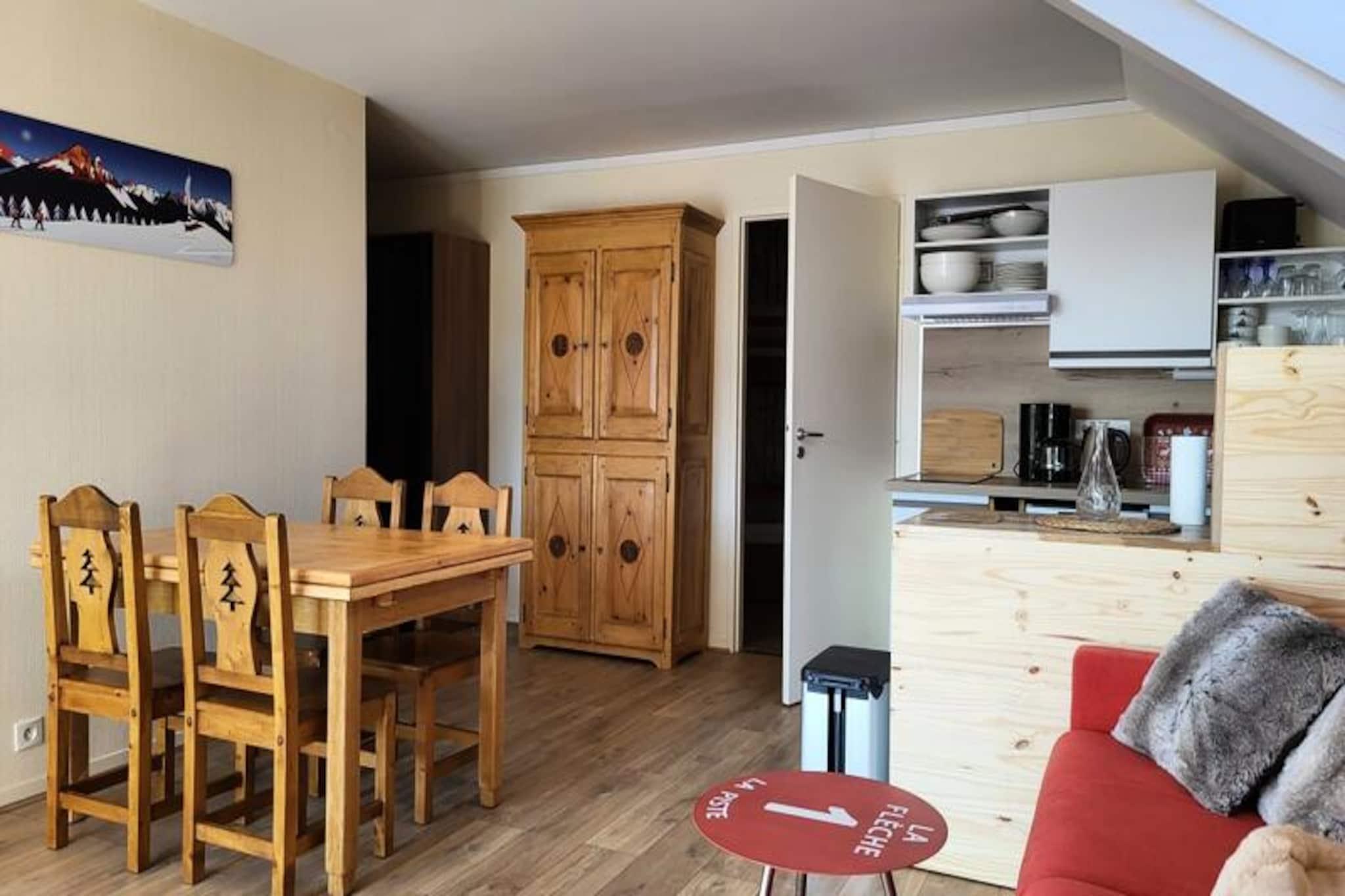 Forestil dig at vågne op til den friske bjergluft og den betagende udsigt over Bauges-bjergene, hvor hvert øjeblik føles som en tilbagetrækning til naturen. Denne lyse og charmerende lejlighed i Les Balcons d'Aix-residensen tilbyder den perfekte blanding af komfort og eventyr, hvilket gør den til det ideelle valg til din næste alpine ferie. Uanset om du planlægger en vinterferie eller en sommerferie, lover La Féclaz uforglemmelige øjeblikke i hjertet af de franske Alper. Træd indenfor og oplev et indbydende opholdsrum designet til afslapning. Lejligheden har et hyggeligt soveområde med en dobbeltseng, en lukket alkove med køjesenge, der er perfekte til børn, og et fuldt udstyret køkken med raclette- og fonduesæt til hyggelige savoyardiske aftener. Med sengelinned og håndklæder, rigelig opbevaringsplads og et privat skiskab er der tænkt på alle detaljer for at sikre, at dit ophold bliver så behageligt som muligt. Beliggenheden er uovertruffen med panoramaudsigt over de omkringliggende bjergtoppe og kun en kort gåtur til resortets centrum, hvor du finder restauranter, et Sherpa-supermarked og meget mere. Om vinteren er der nem adgang til langrends- og alpint skiløjper, sneskovandringsstier og endda hundeslædeeventyr. Om sommeren forvandles området til et paradis for vandreture, mountainbiking, canyoning og ridning. Desuden ligger Bourget-søen kun 30 minutter væk, hvilket er perfekt til svømning og vandsport. Afslapning er lige ved hånden med gratis adgang til den opvarmede indendørs pool (sæsonåben) og mulighed for at booke en sauna- eller hammam-session mod et mindre gebyr. Uanset om du søger eventyr eller ro, er denne lejlighed i La Féclaz din indgang til en enestående bjergoplevelse. Book nu og lad Alpernes skønhed forynge din sjæl.
