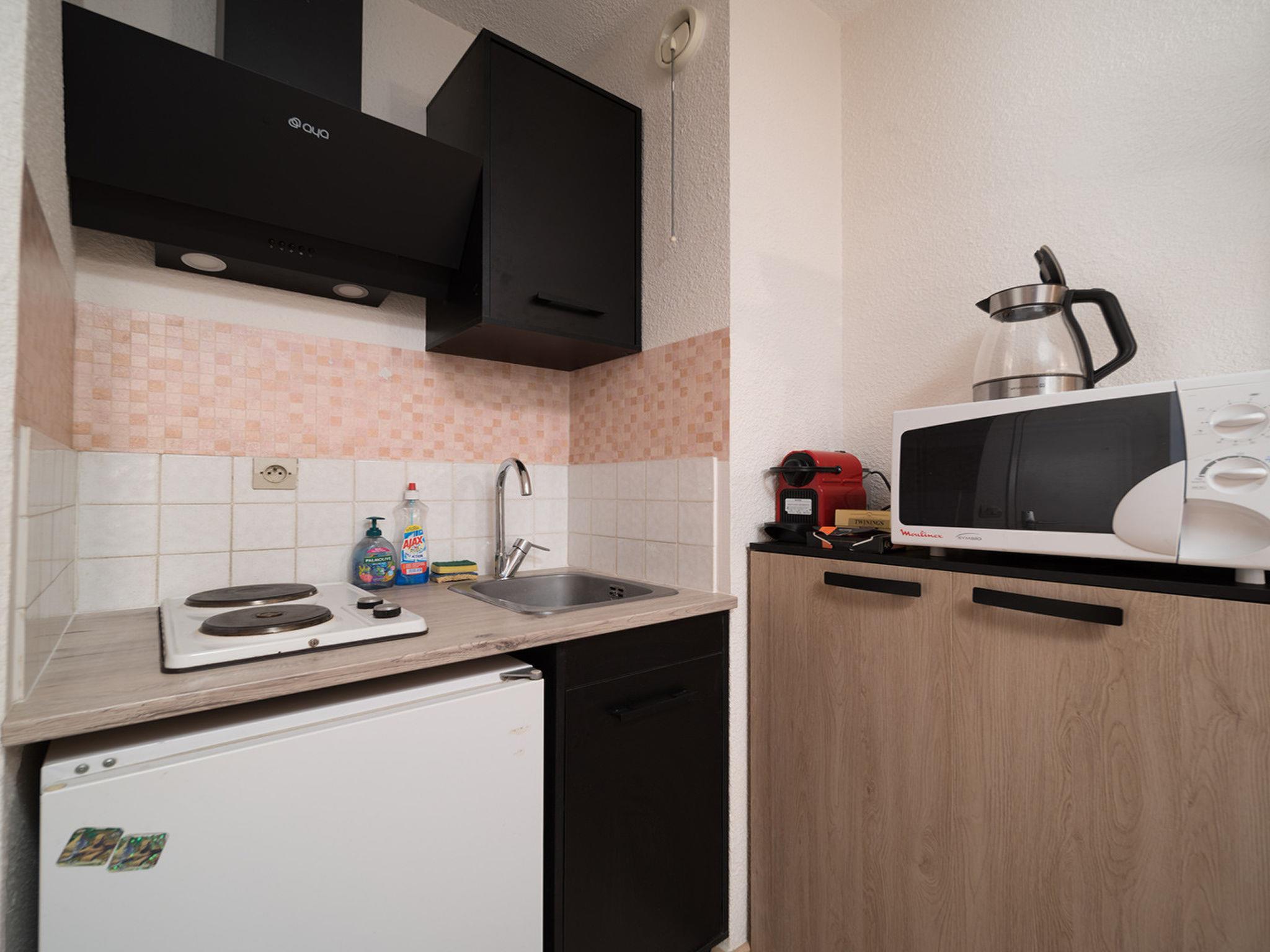 "LE Schuss 5", 1-room studio 16 m2 on 2nd floor. Object suitable for 4 adults. Living room with 1 sofabed and 1 x 2 bunk beds, 1 pull-out bed and TV. Kitchen (microwave, electric coffee machine). Shower/WC. Balcony. View of the mountains. Please note: non-smokers only. Offer by a commercial proprietor according to Art. 155, IV, CGI 040060002981H