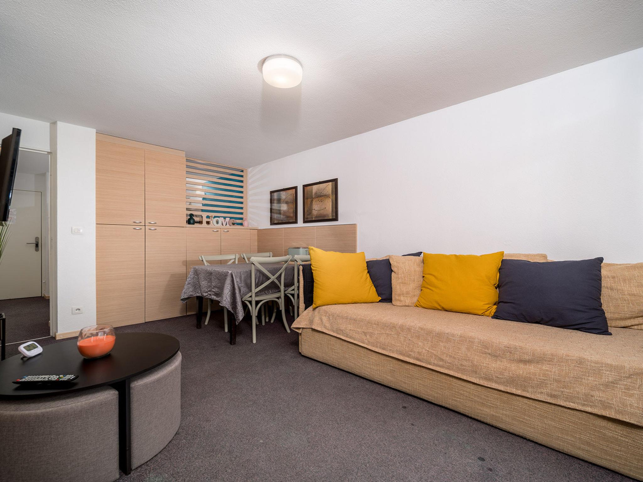 "C. Du Verdon", 2-room apartment 36 m2 on 4th floor. Object suitable for 6 adults. 1 room with 1 double bed. Living room with 1 sofabed and 1 x 2 bunk beds, 1 pull-out bed. Open kitchen (4 hot plates, dishwasher, kettle, microwave, freezer, electric coffee machine). Bath/WC. Balcony. View of the mountains. Facilities: Internet (WiFi). Parking (roofed, 1 car). Please note: non-smokers only. Smoke alarm. Offer by a commercial proprietor according to Art. 155, IV, CGI 04006000284JJ