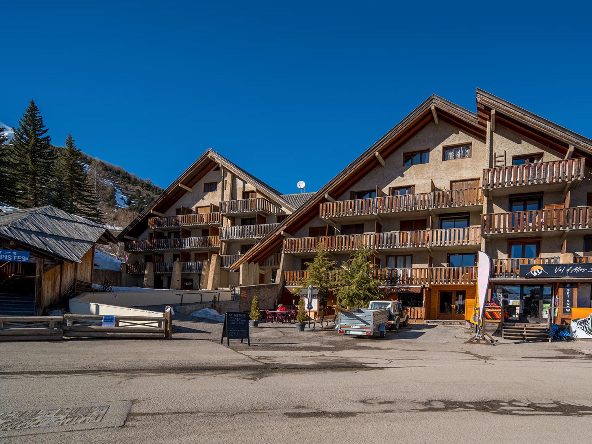 Allos: Apartment block. 50 m from the skiing area. Restaurant 50 m.