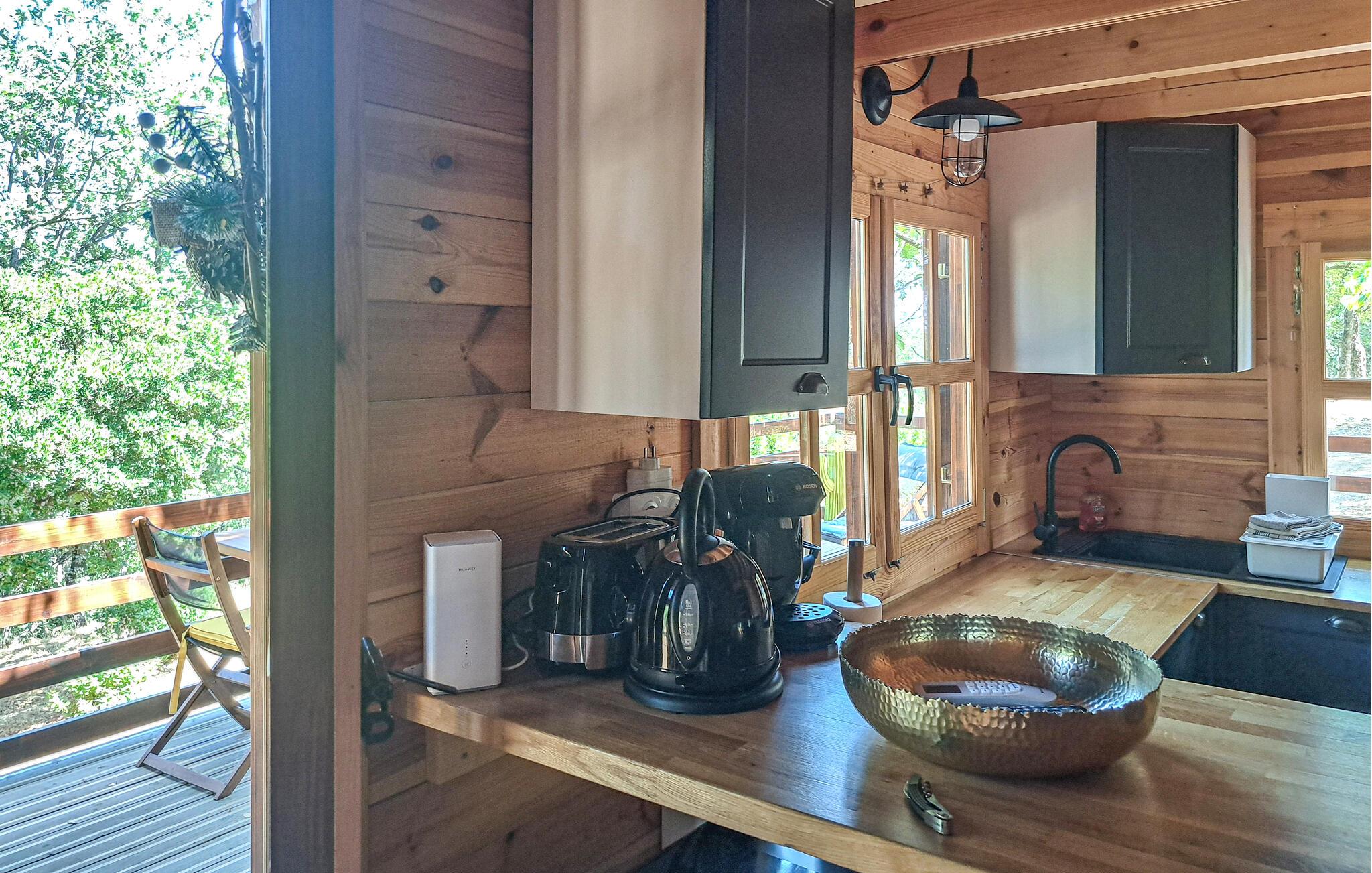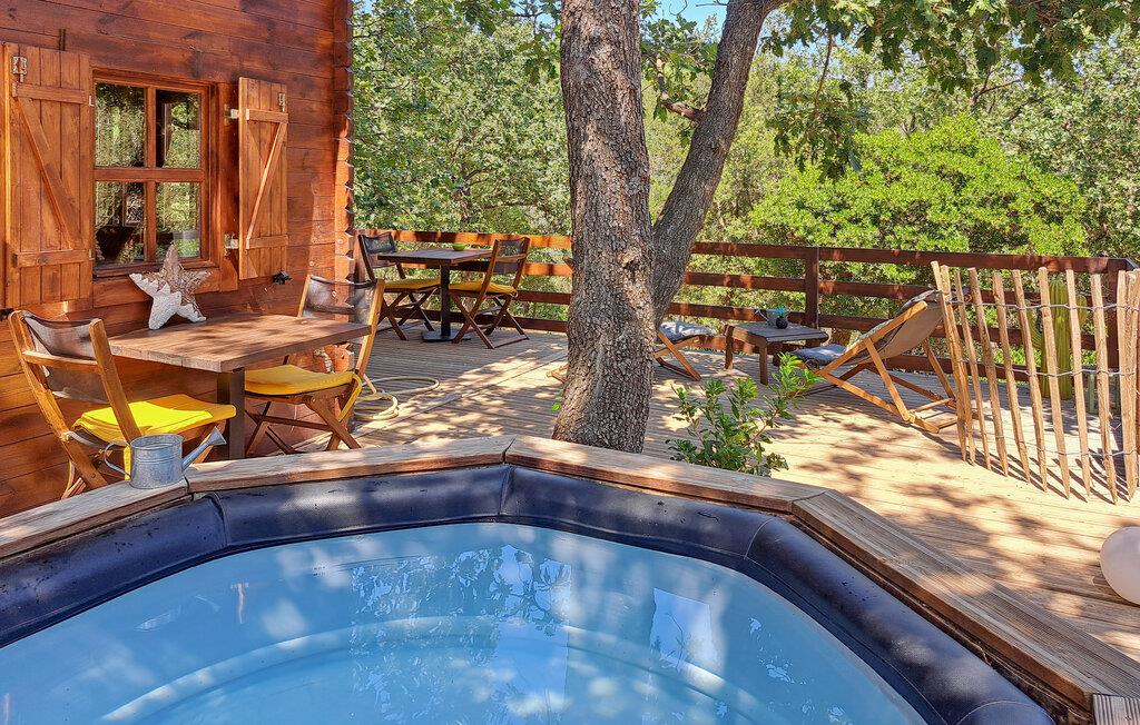 Dette hyggelige træhus udstråler varme og charme - så her får I det ideelle rammer til en afslappende ferie i naturskønne omgivelser. Det stilfulde interiør giver jer en harmonisk blanding af rustik stemning og moderne komfort. I kan tilbringe afslappende timer på den indbydende terrasse, mens den lille pool og det overdækkede spabad lægger op til afslappende stunder og behagelig nedkøling på de varme dage. På grunden står der et andet træhus, som I også kan booke alt efter tilgængelighed, så stedet her er perfekt til større grupper eller familier. Ejeren bor også på grunden og har en hund.