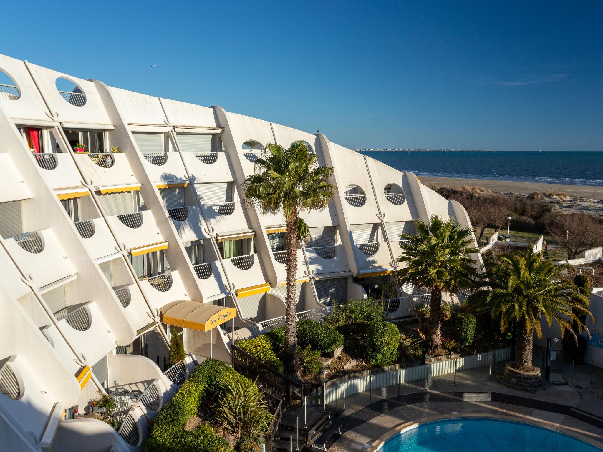 Residence "La Calypso", 4 storeys. In the district of La Motte du Couchant, 1 km from the centre, 50 m from the sea, 40 m from the beach, direct access to the beach. For shared use: swimming pool (seasonal availability: 22.Jun. - 30.Aug. pool opening hours: 15:00-20:00). Shopping centre 150 m, restaurant, bus stop 400 m, railway station "Montpellier" 25 km, sandy beach 20 m, indoor swimming pool 3 km, thermal baths "Thalasso Spa" 2.5 km. Sports harbour 900 m, golf course (18 hole) 3.5 km, sailing school 500 m, tennis 3 km, riding stable 2 km. Nearby attractions: Le Seaquarium du Grau Du Roi 10 km, Les Remparts d'Aigues Mortes 12 km, Les Saintes Maries de la Mer 40 km. Please note: no lift. Airfield close by 20 km from the property. Additional accommodations can be booked.