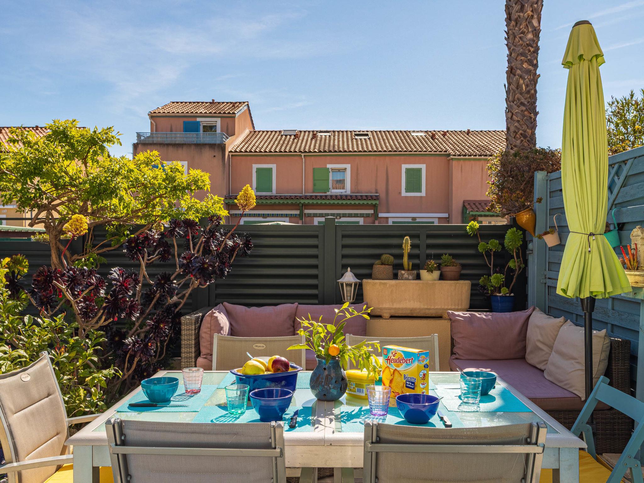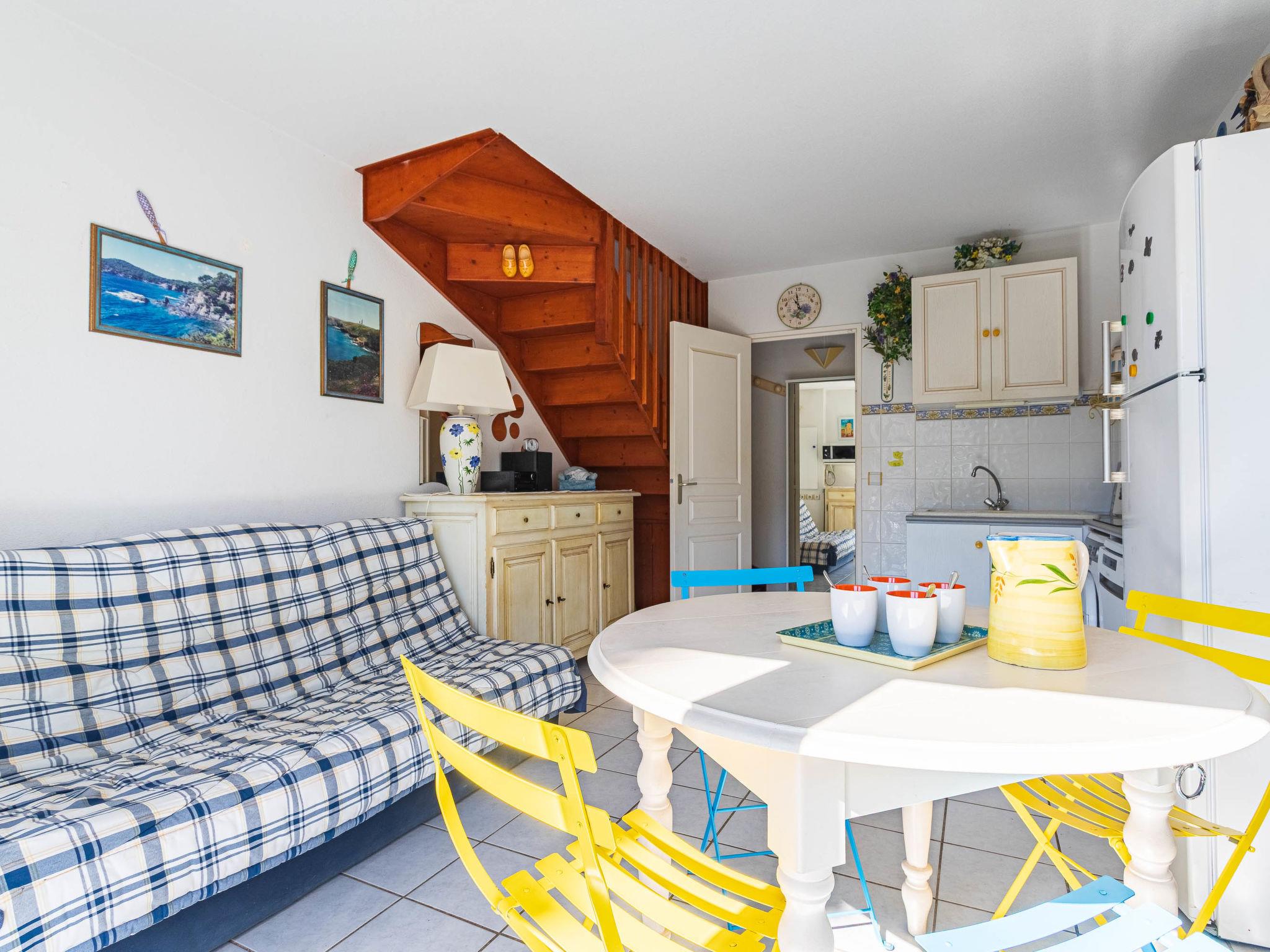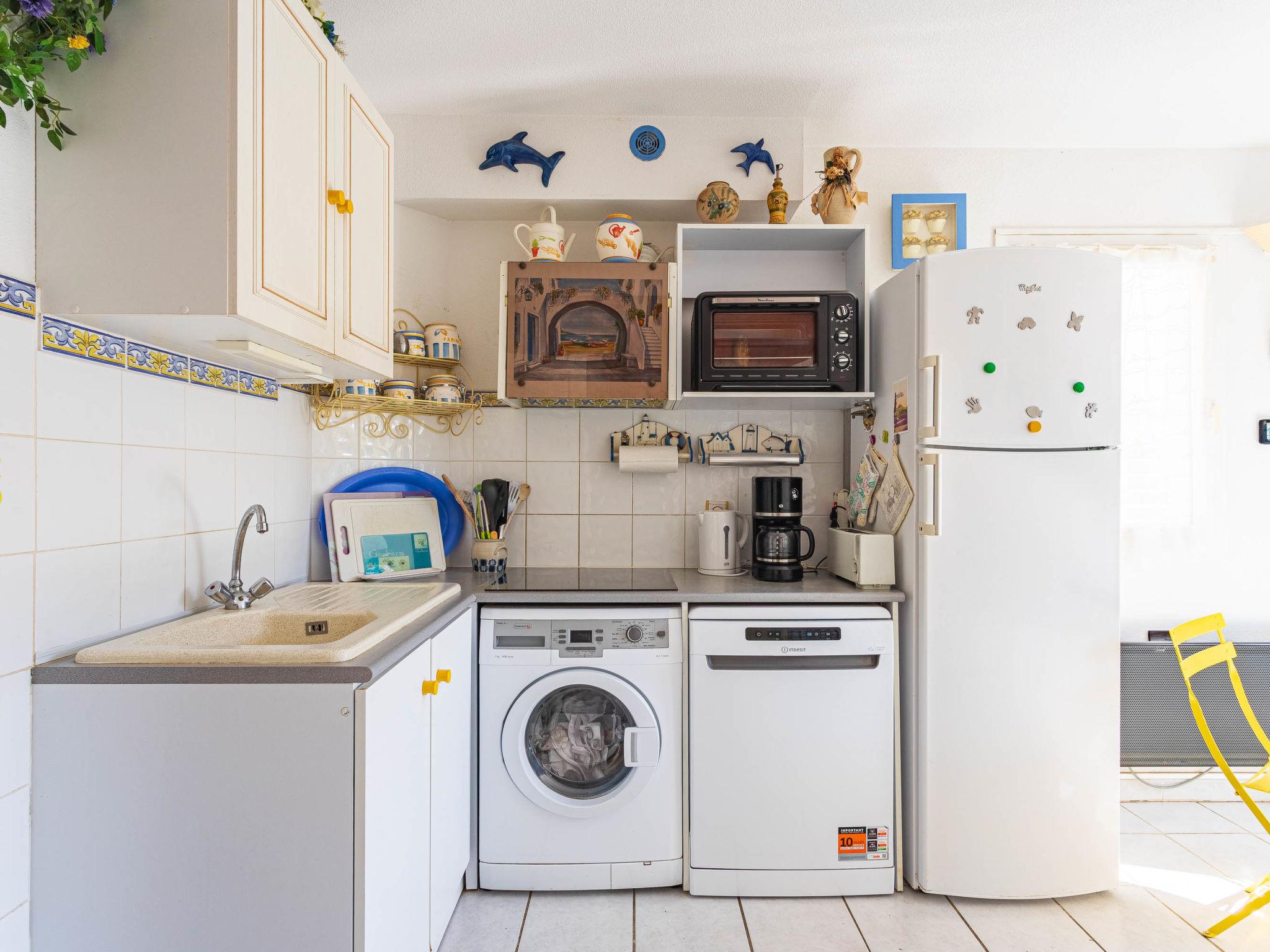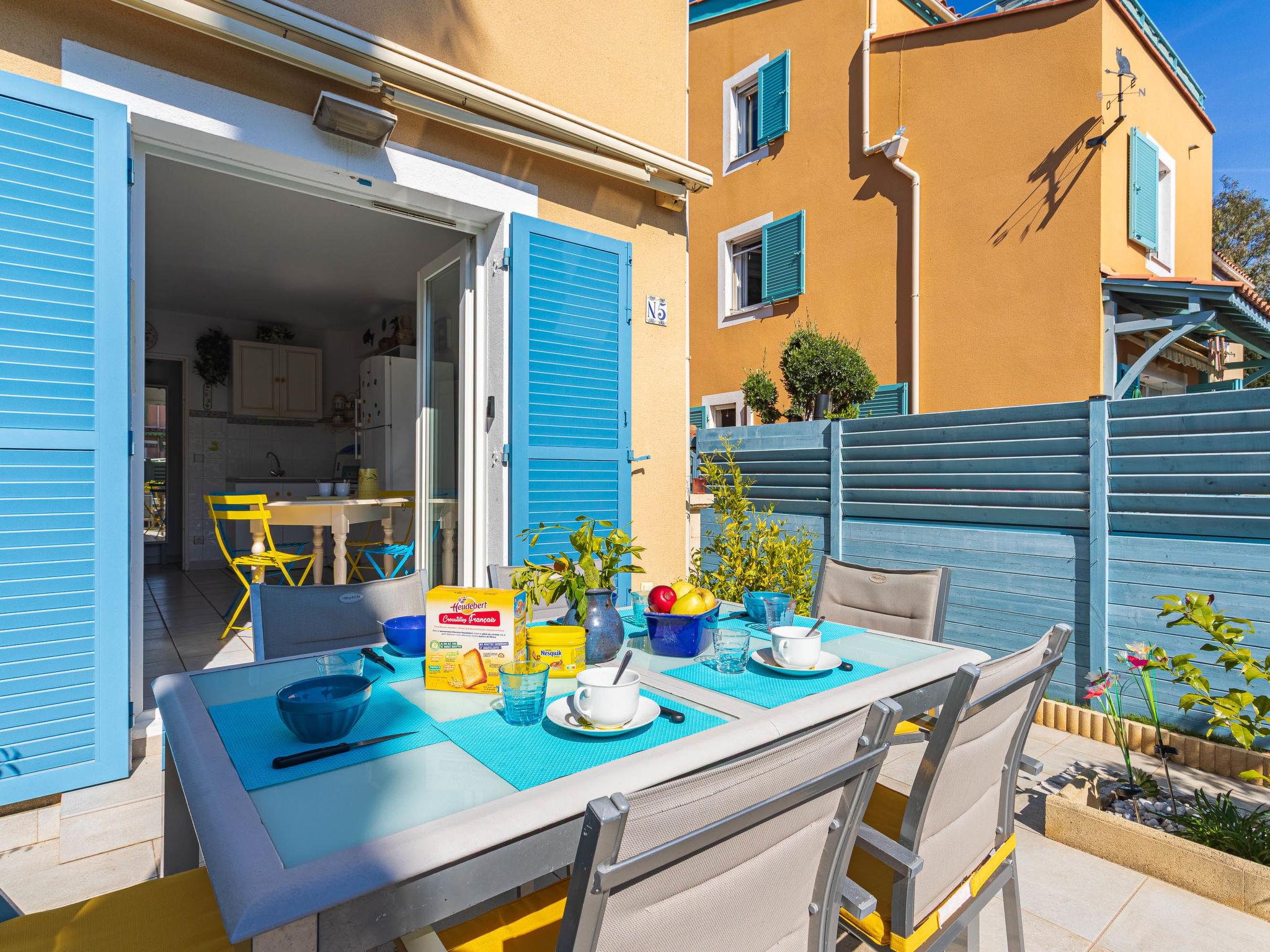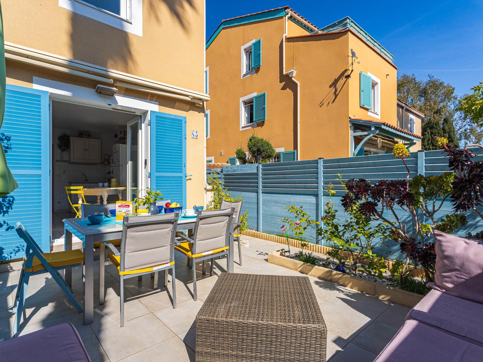 Terraced house "Les Mas d'Azur", 2 storeys. In the resort 2.8 km from the centre of de la Londe Les maures, in a sunny position in the residential district, 700 m from the sea, 700 m from the beach. Public parking on the road. Shop 2.8 km, grocery 600 m, supermarket 3 km, shopping centre 13.7 km, restaurant 800 m, bus stop "Port Miramar" 700 m, railway station "de Hyères" 12.8 km, sandy beach "Miramar" 700 m. Marina 800 m, golf course (18 hole) 11.2 km. Nearby attractions: Espace Nature la Brûlade 1.5 km, Tropical zoo 4.8 km, Jardin Olbius Riquier 12.5 km, Complexe Aquatique 12.5 km. Hiking paths: Sentier du littoral Plage L'Argentiere 5.2 km.