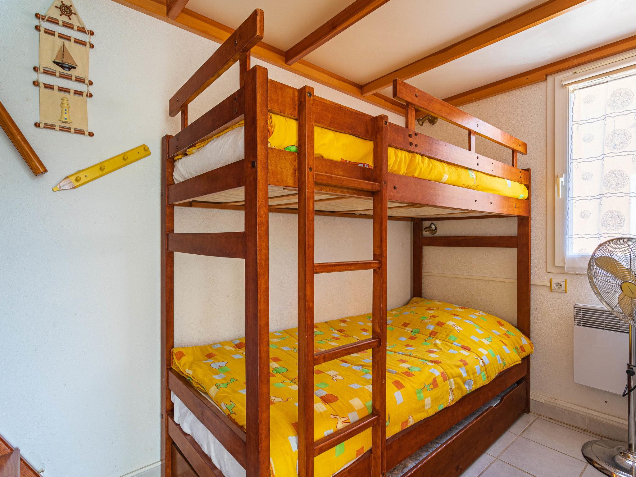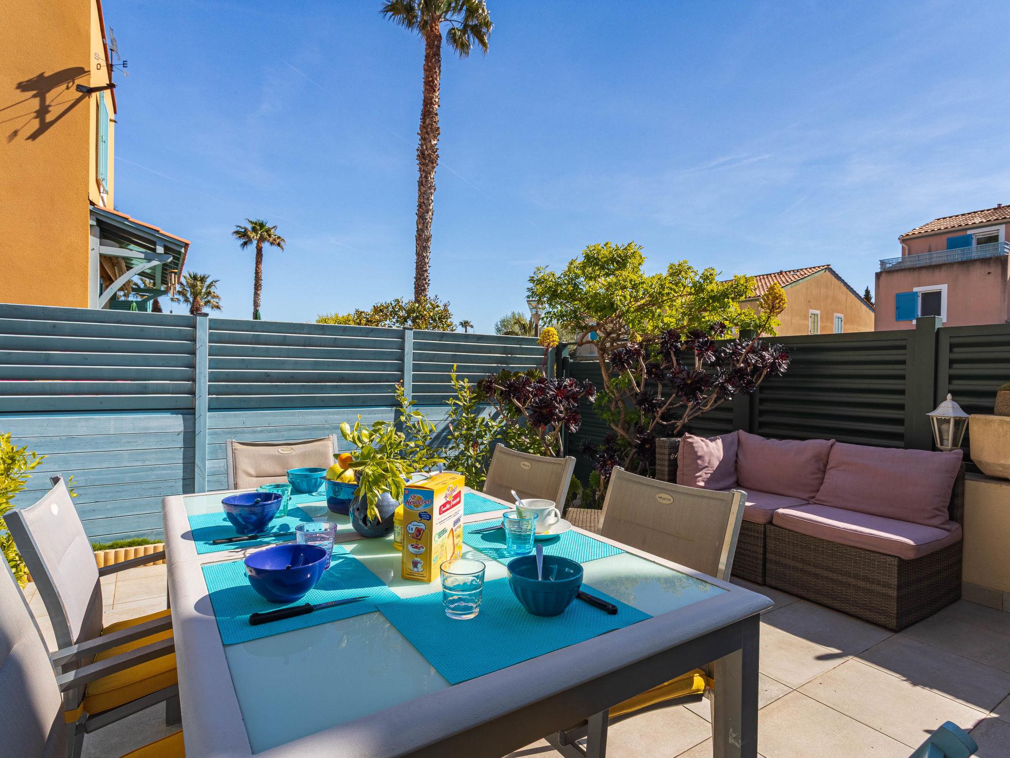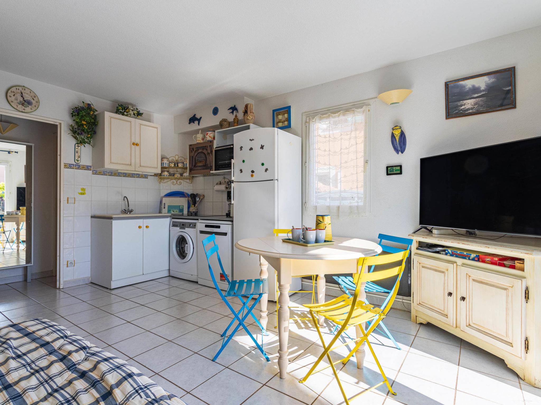 4-room terraced house 65 m2. Object suitable for. Spacious and bright, beautiful furnishings: living/dining room with dining table and TV (flat screen). Exit to the terrace. Open kitchen (mini-oven, oven, dishwasher, 3 ceramic glass hob hotplates, toaster, kettle, microwave, freezer, electric coffee machine). Sep. WC. Electric heating. Upper floor: 1 room with 1 french bed (140 cm, length 190 cm). 1 room with 1 x 2 bunk beds (90 cm, length 190 cm). (ladder), 1 room with sloping ceilings, ceiling height 200 - 90 cm with rooflight with 1 french bed (140 cm, length 190 cm). Shower/WC. Electric heating. Terrace 15 m2. Terrace furniture. Facilities: washing machine, iron. Internet (WiFi, extra). Please note: no parking. TV only FR. Smoke alarm. Offer by a private individual according to Art. 155, IV of CGI. 83071001160F3