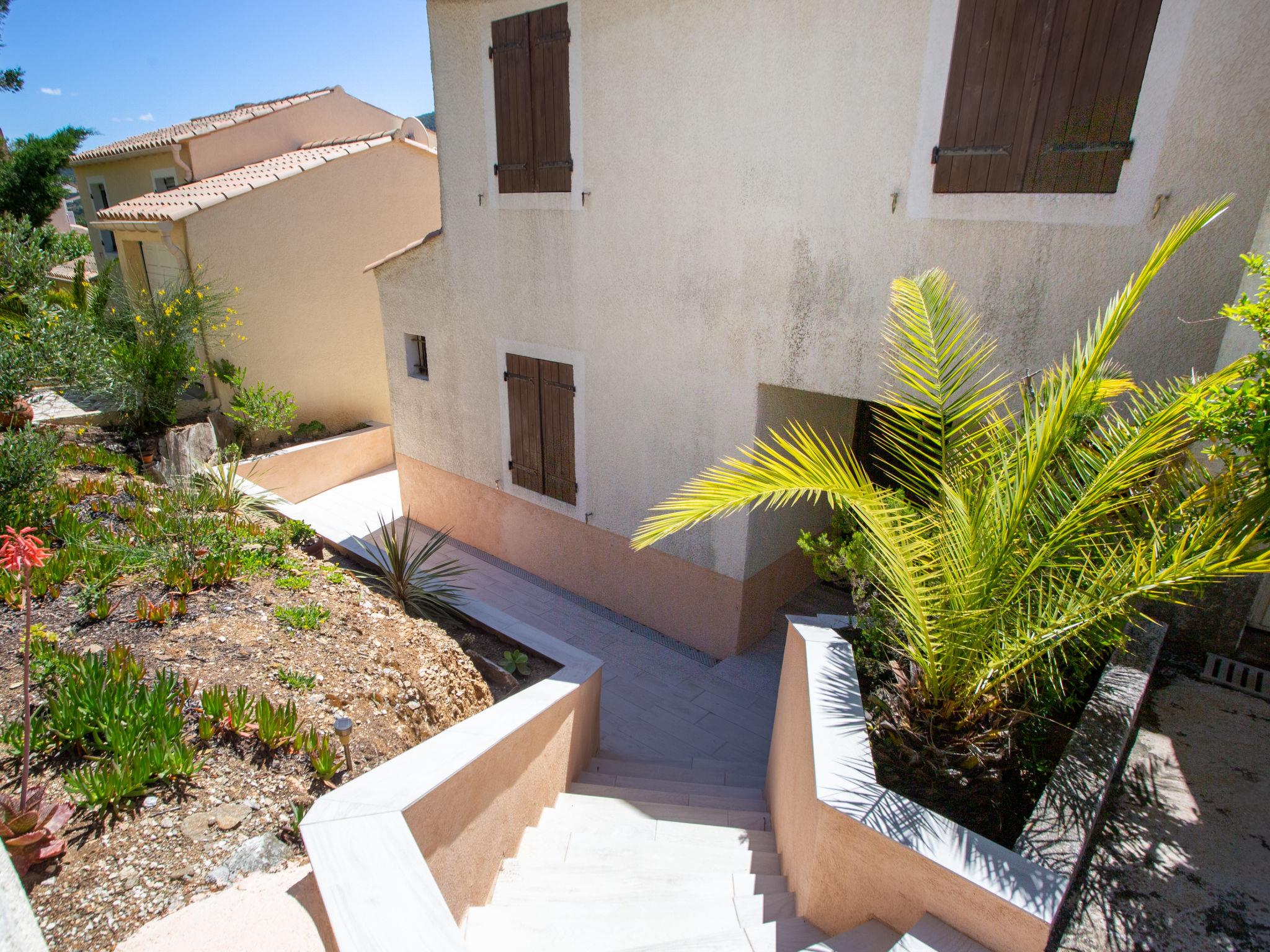 La Londe Les Maures: Accommodation not suitable for people with reduced mobility. Residence "Le Belvédère". 84 houses in the residence. In the district of Valcros, outside the resort, 6 km from the centre, on top of a hill, in the residential district, 9.8 km from the sea, 9.8 km from the beach. For shared use: well-kept garden 100 m2, swimming pool fenced (250 m2, seasonal availability: 18.Apr. - 01.Oct.). Children's pool, outdoor shower. Shop 6 km, grocery 6 km, supermarket 6 km, shopping centre 18 km, restaurant 6 km, bus stop "La Cheylanne" 5.4 km, sandy beach "l'Argentière" 9.8 km. Golf course (18 hole) 3 km. Nearby attractions: Jardin Zoologique Tropical 4.8 km, Dolmen de Gaoutabry 6 km. Please note: car recommended. Residence with electric gates. The keys‘ handover takes place by the agency INTERHOME in Hyères sur le Port.