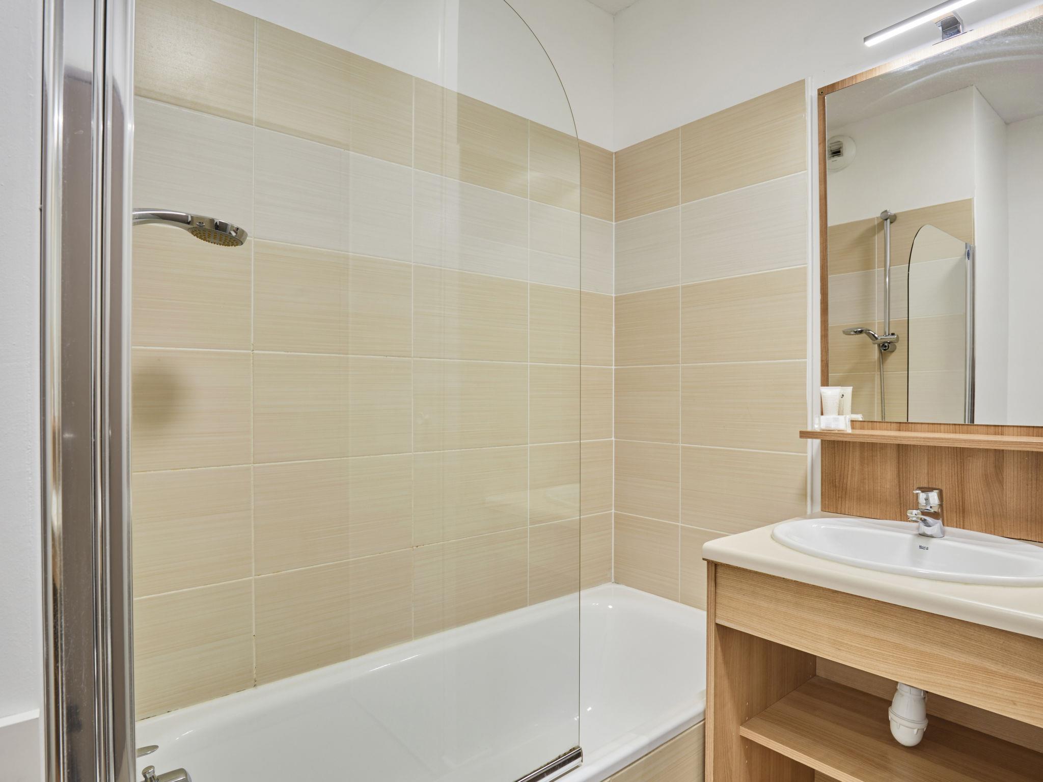 "Odalys Référence Les Océanides", 2-room apartment 34 m2. Bright, modern furnishings: living/sleeping room with 1 double sofabed and dining table. 1 room with 2 sleeping facilities and air conditioning. Kitchenette (dishwasher, 4 ceramic glass hob hotplates, kettle, microwave, freezer, electric coffee machine). Bath/WC or shower/WC. Electric heating. Balcony or terrace. Balcony furniture. Facilities: children's high chair, baby cot. Internet (WiFi, free). Parking. Please note: non-smokers only. Maximum 1 pet/ dog allowed. Smoke alarm.